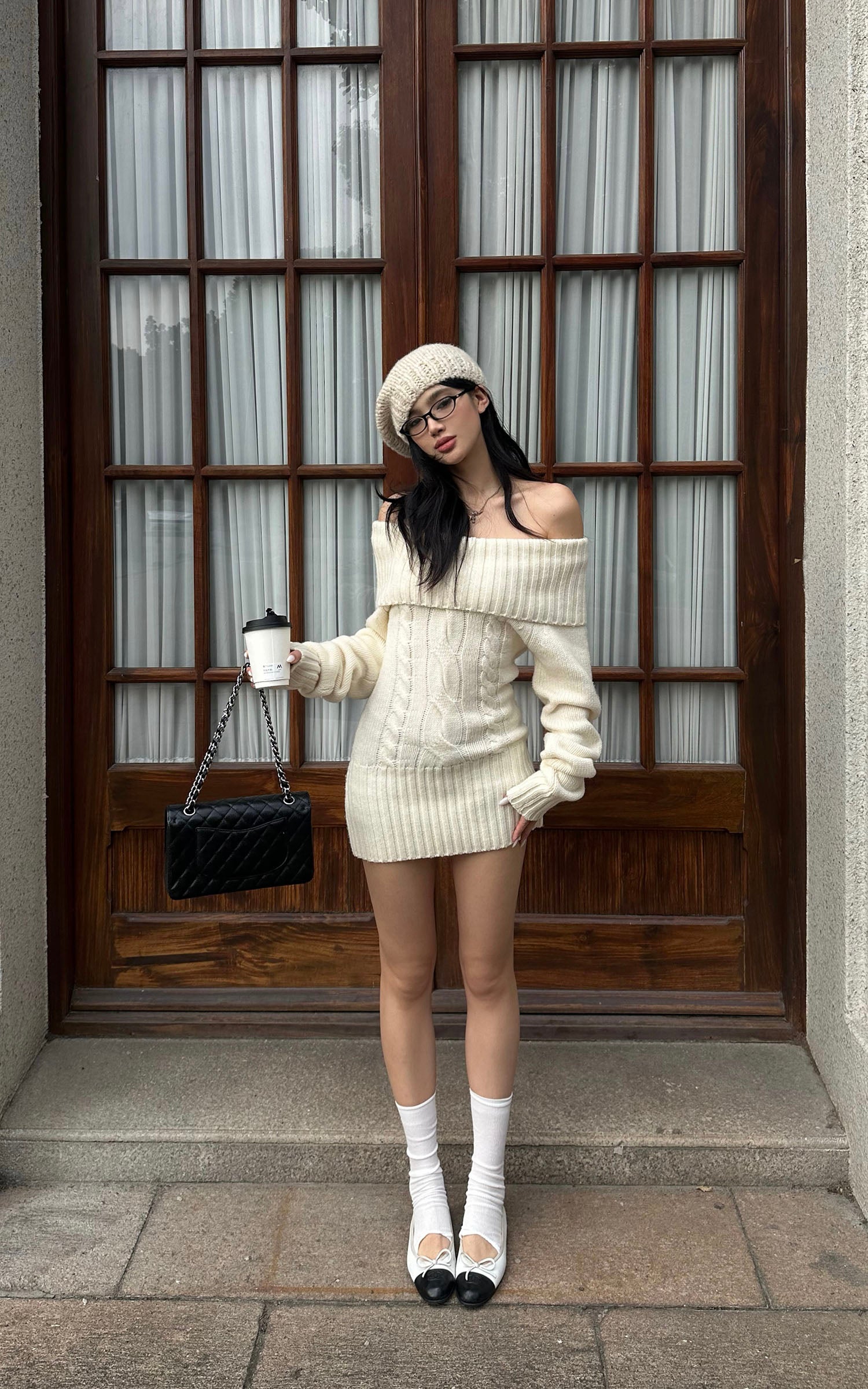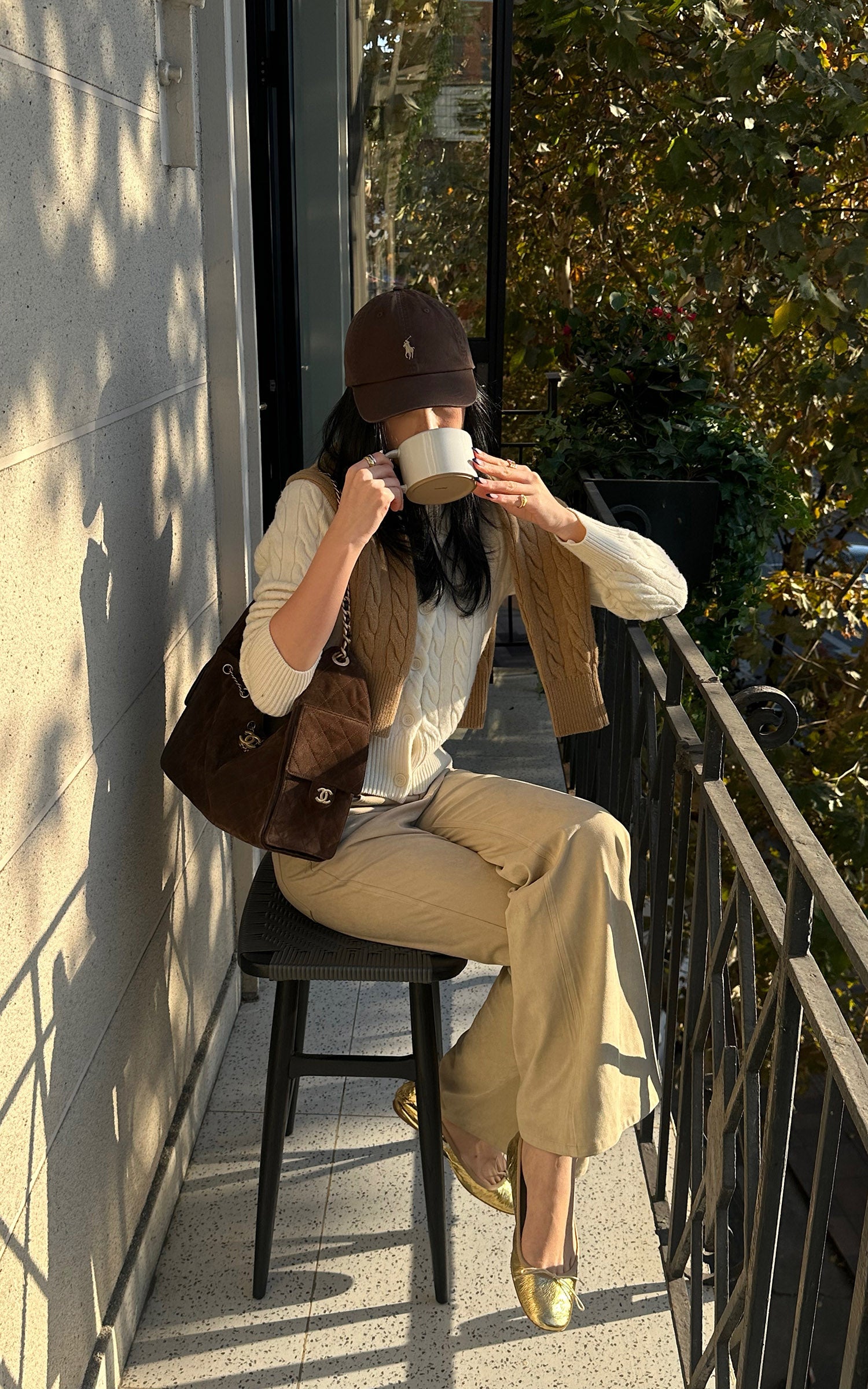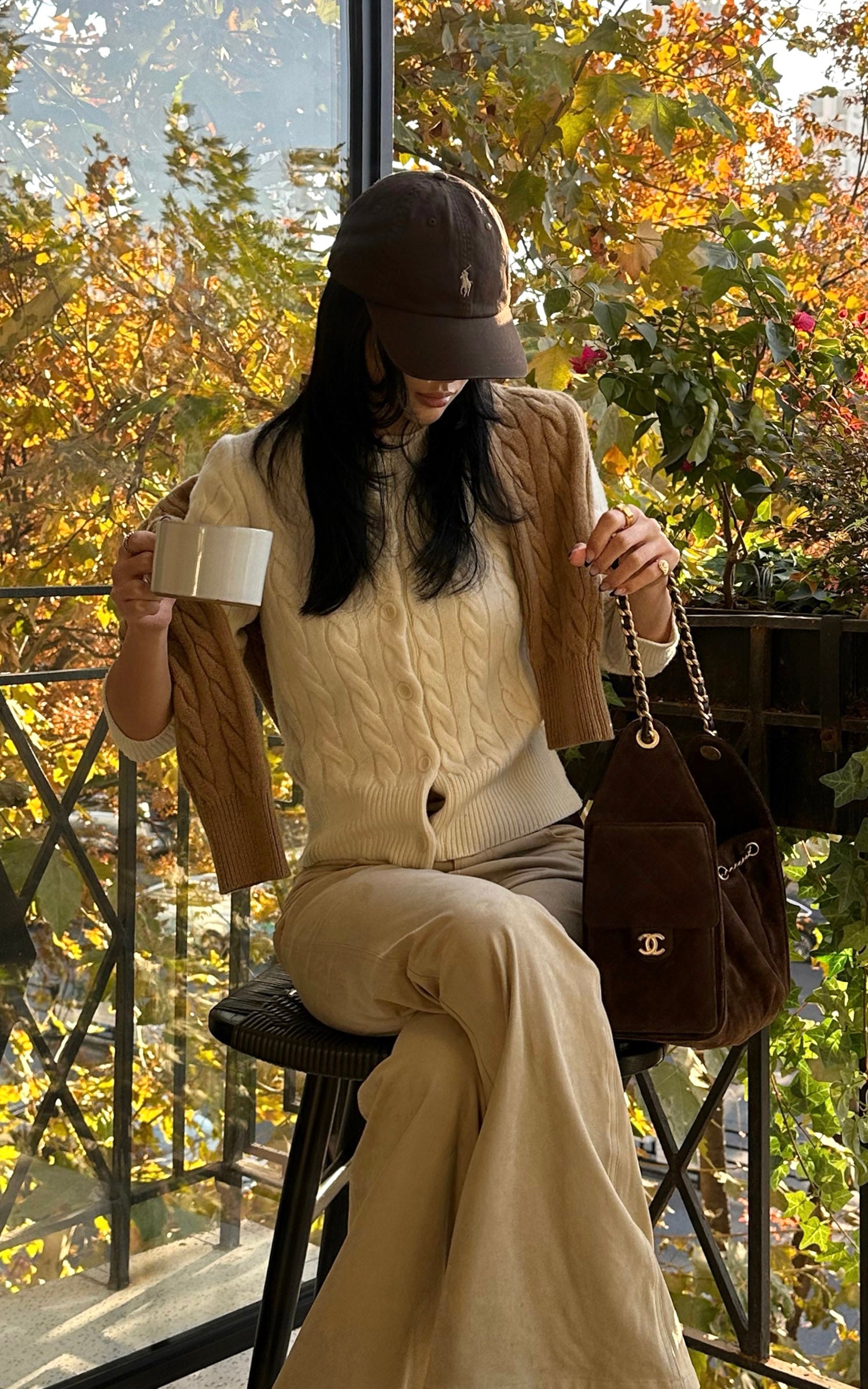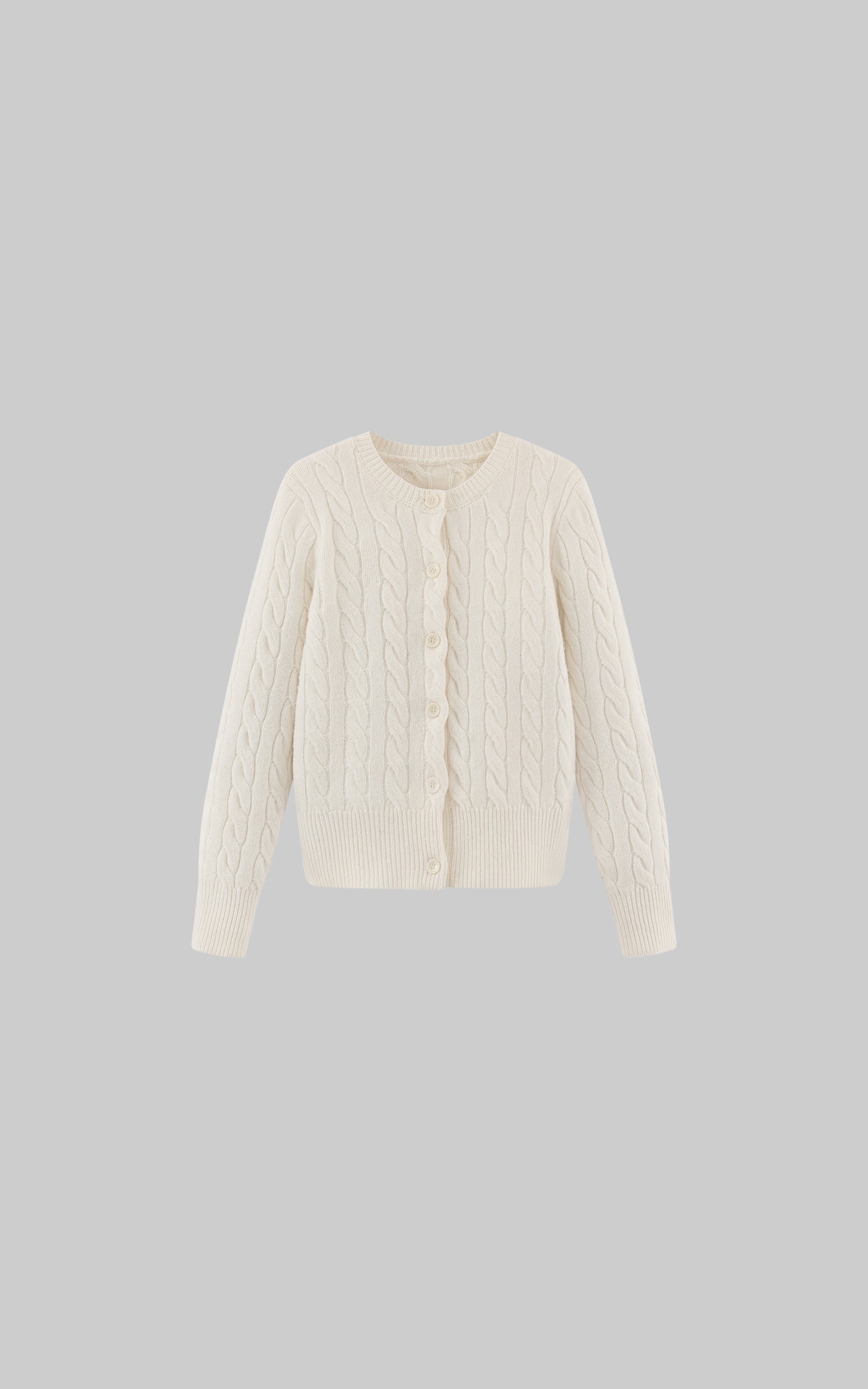 ROVENTE ケーブルニットカーディガン、ベスト、ショートパンツの3点セット