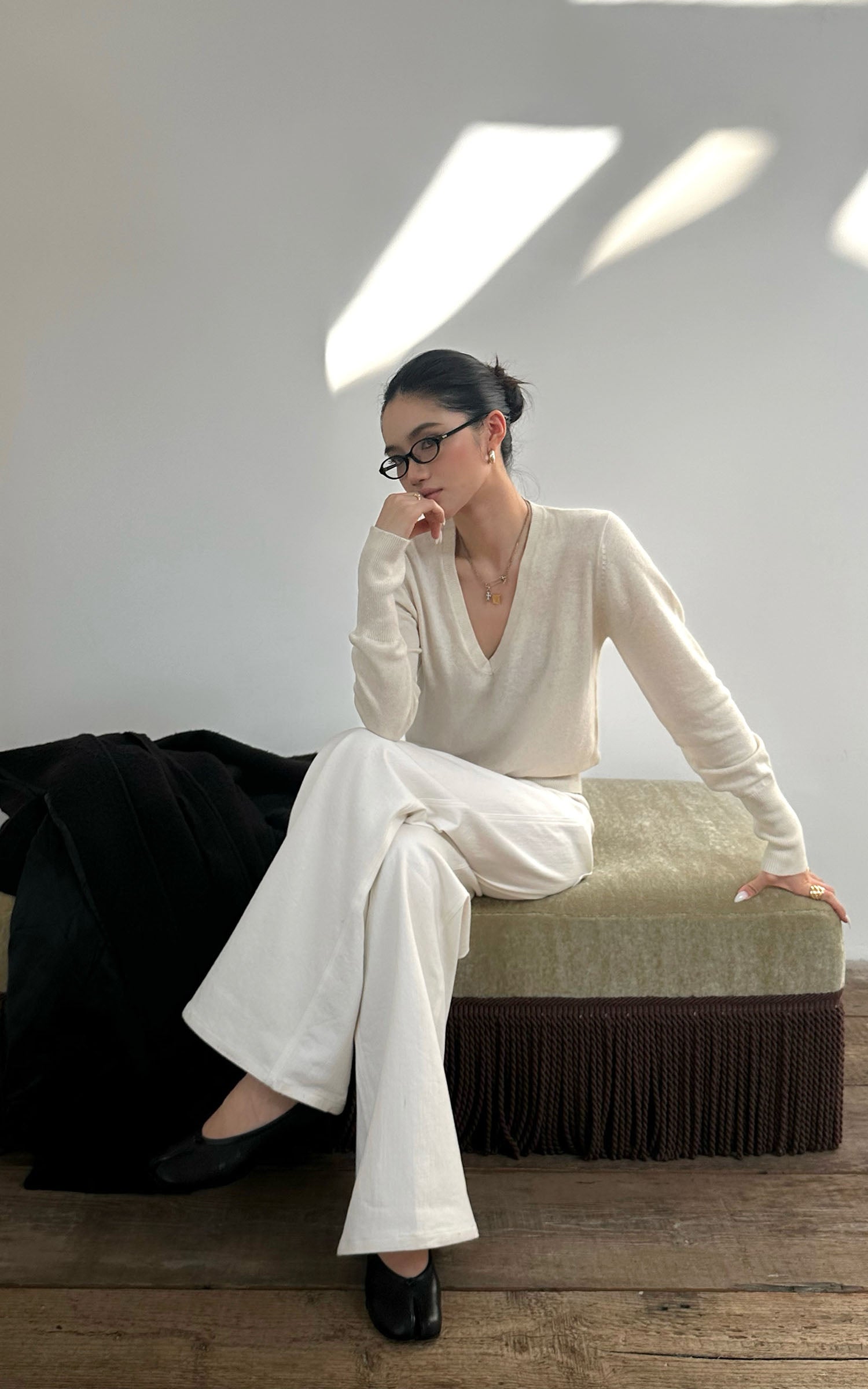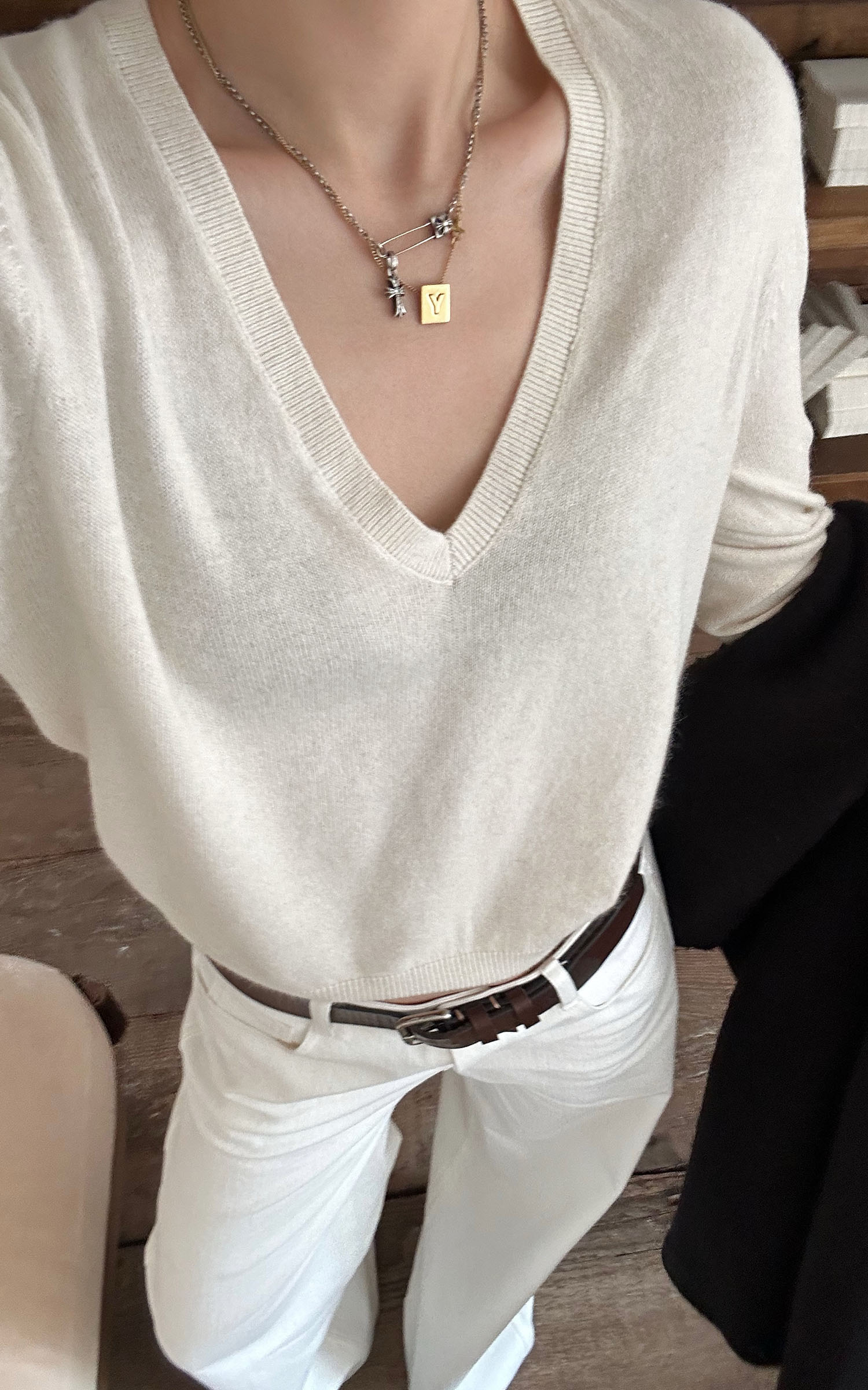 ROVENTE ディープVネックセーターとタートルネックタンクのニットセット