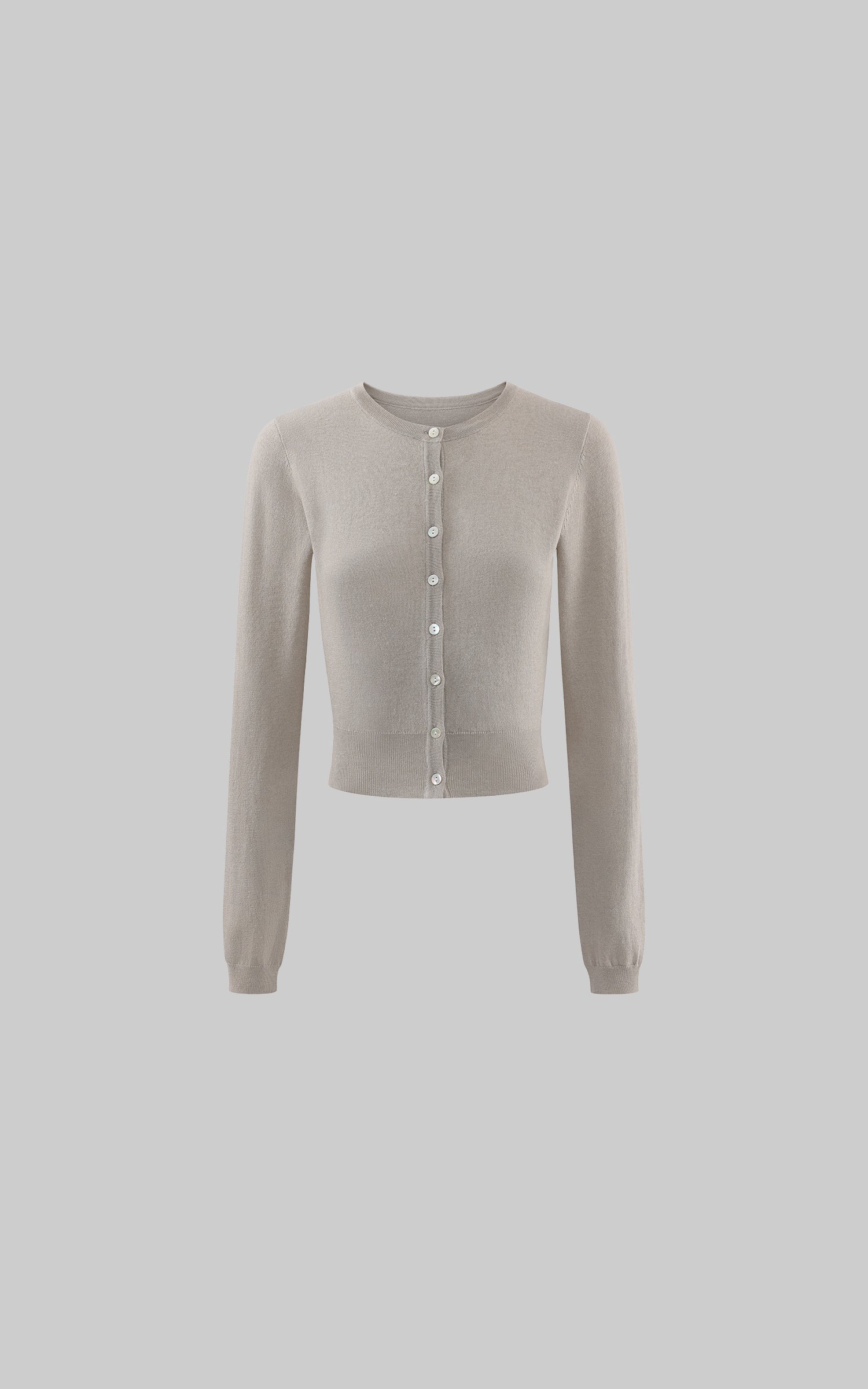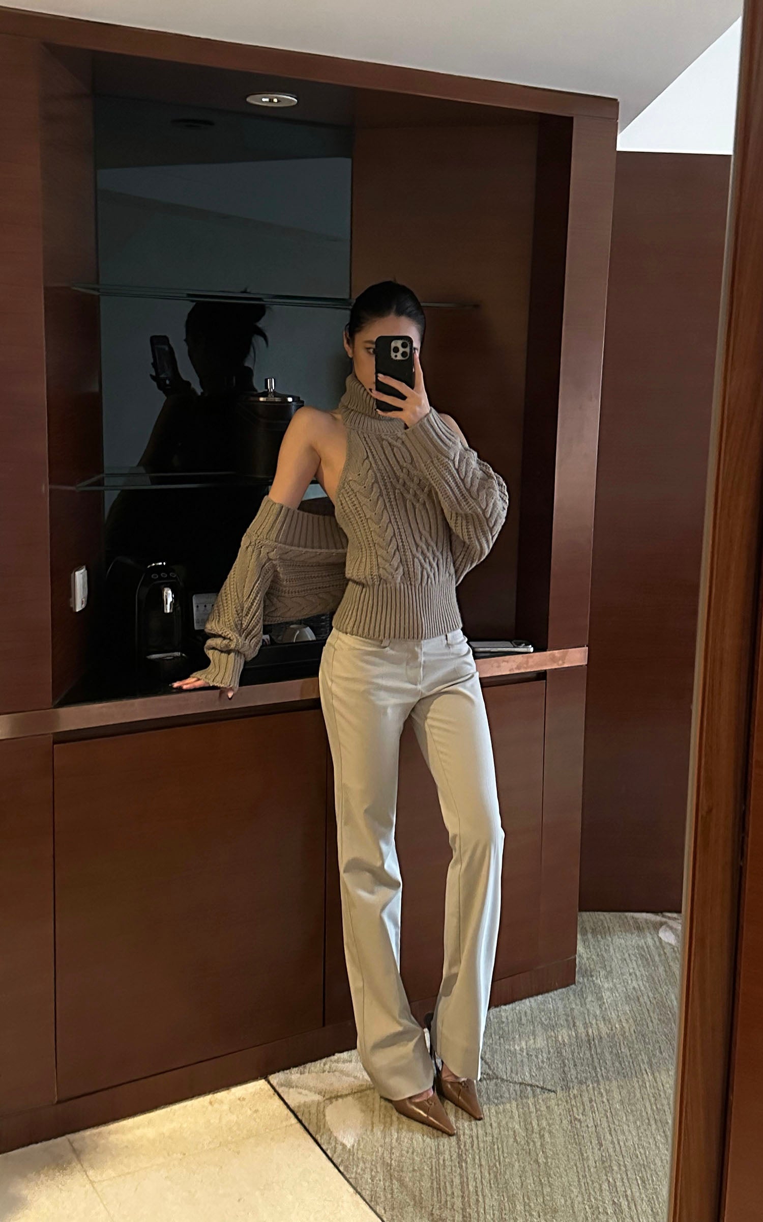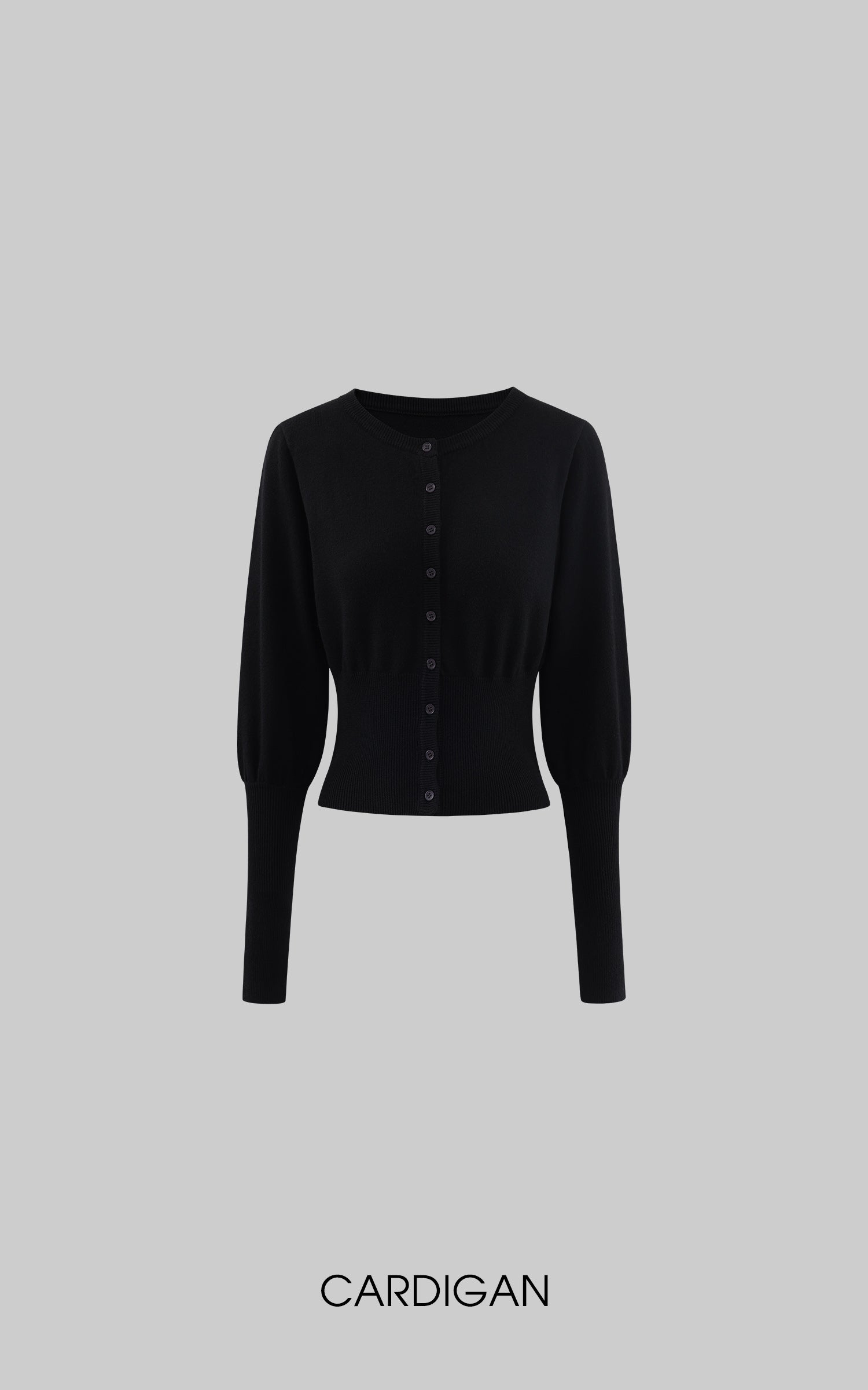 ROVENTE アシンメトリックハイネックリブニットカーディガン