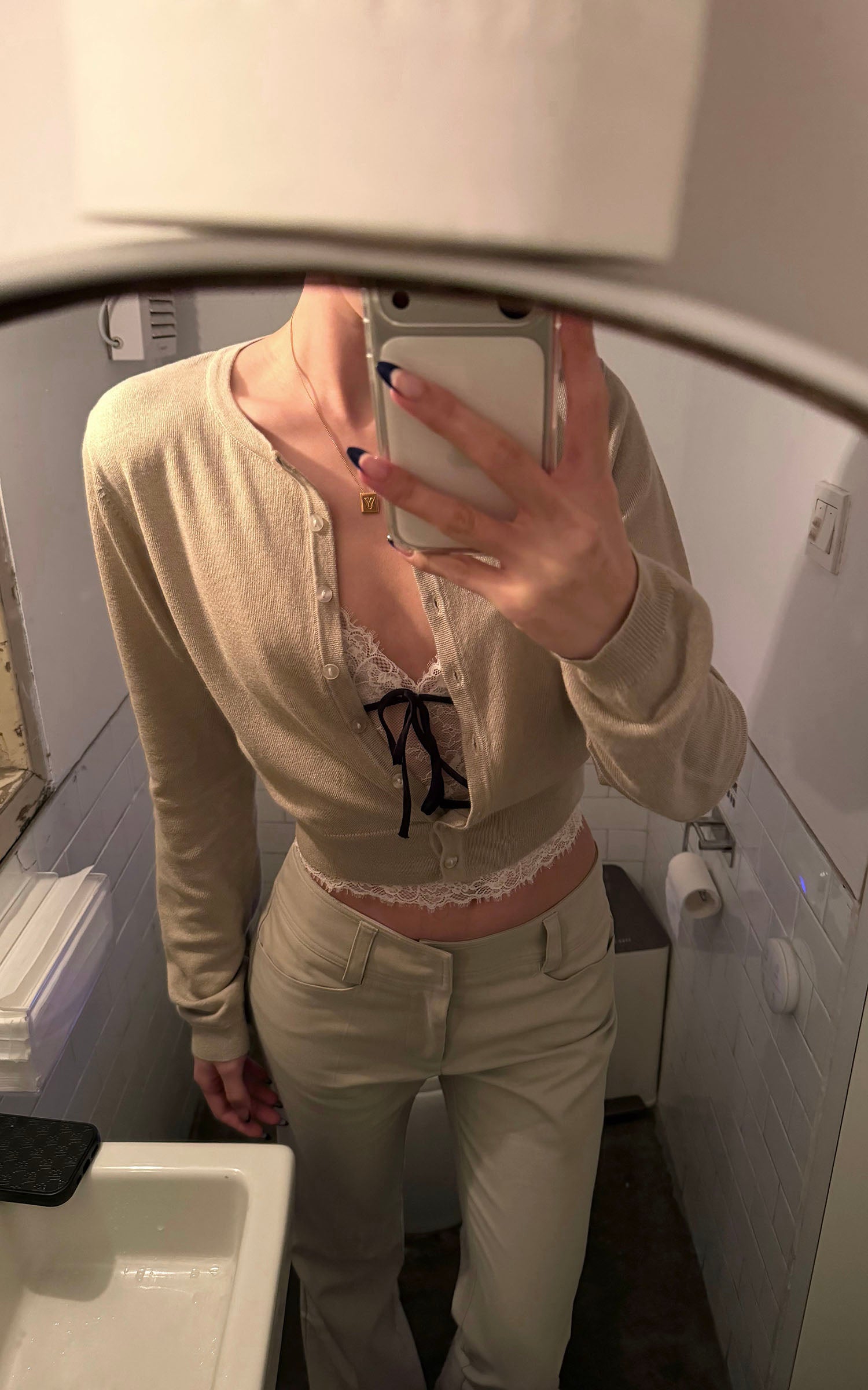 Rase le sol リブ編みロングスリーブトップ、構造的なリボンとフリルヘムショートパンツセット