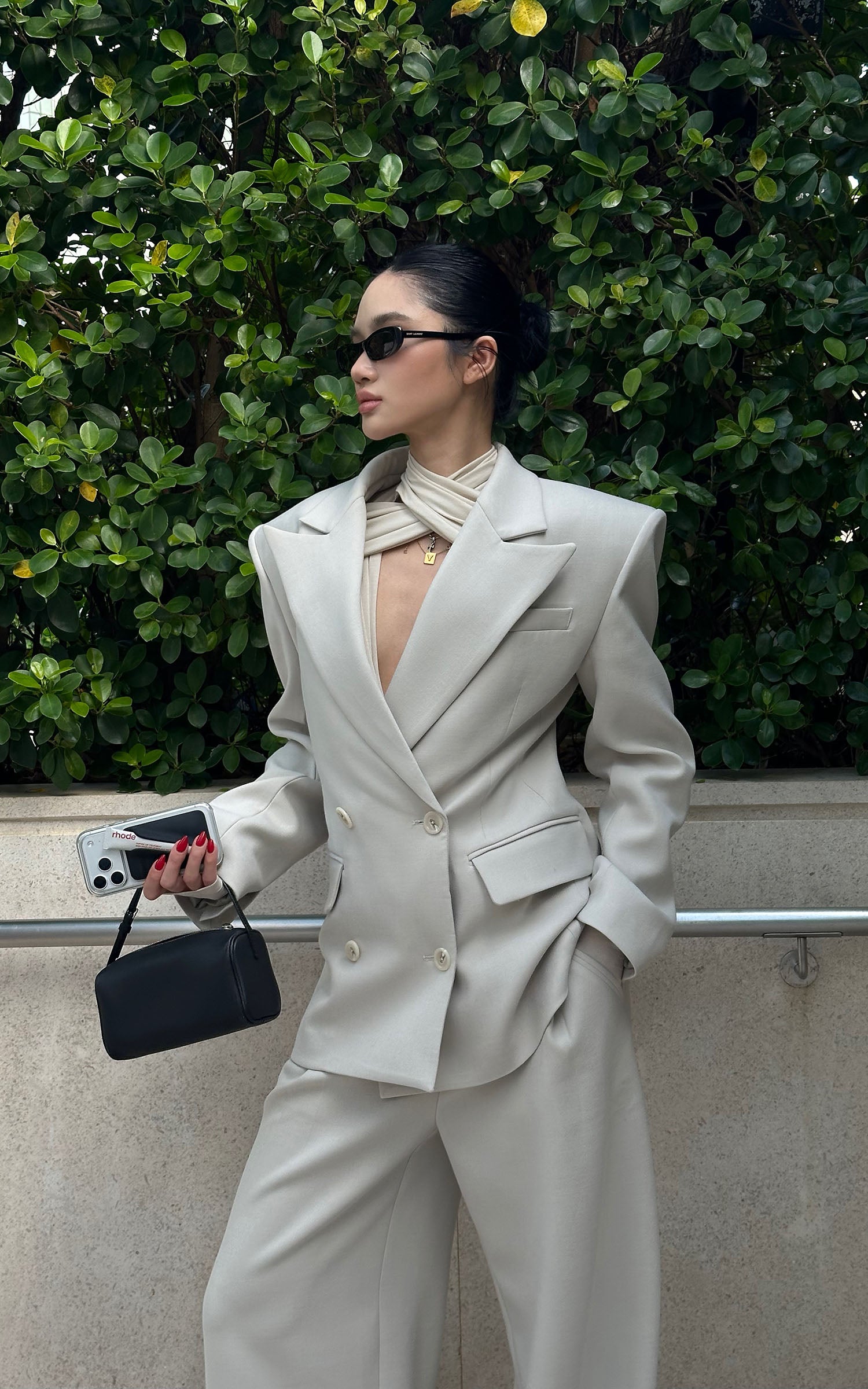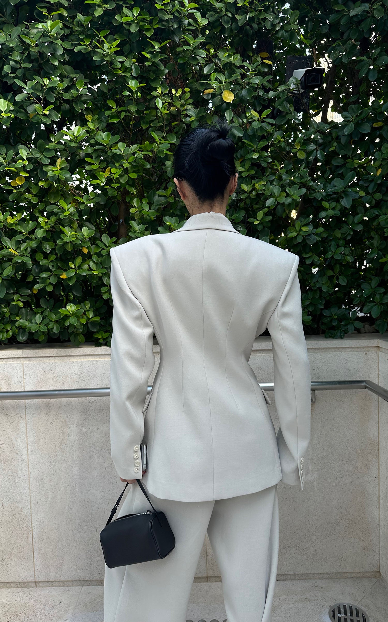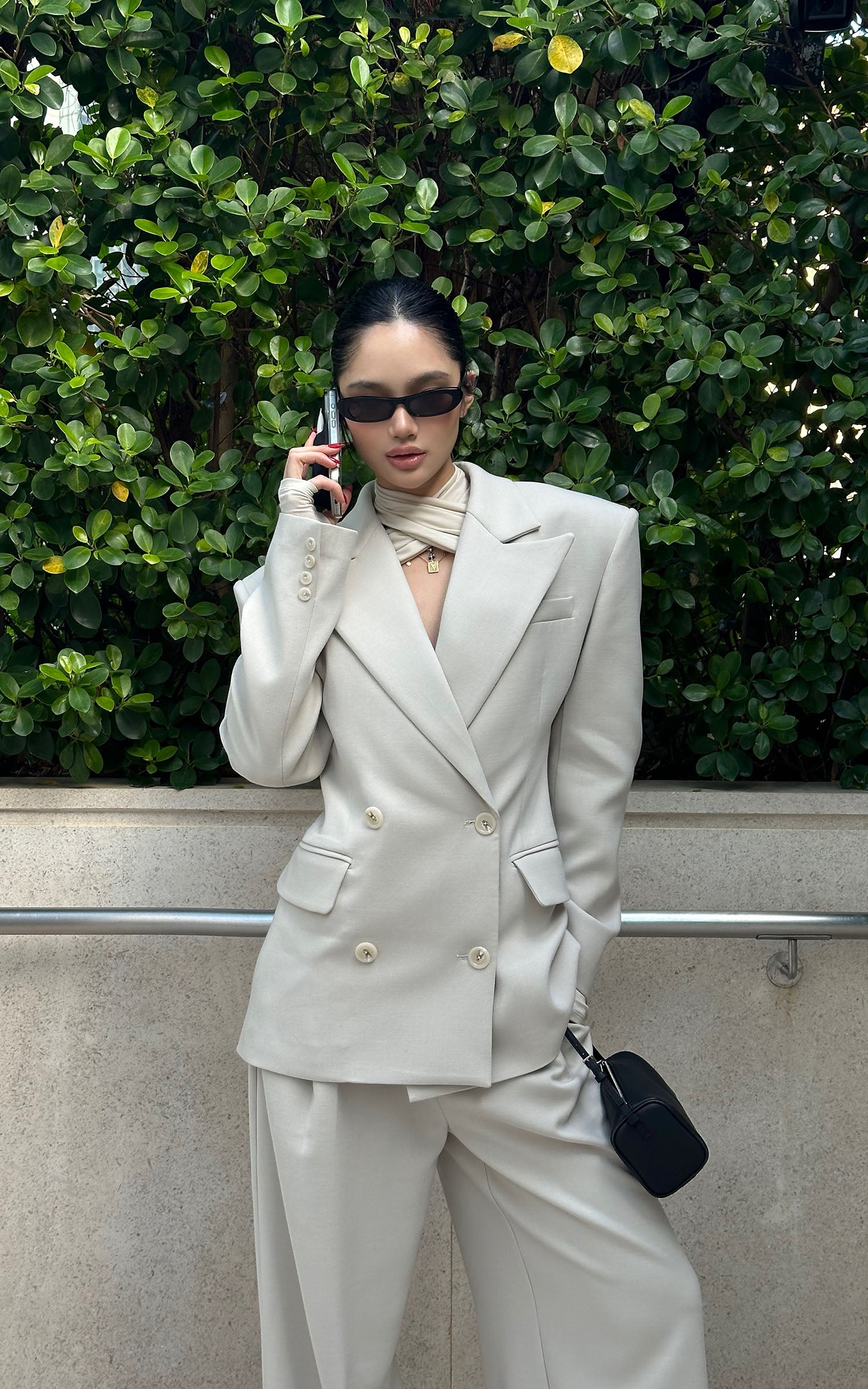 ROVENTE ストラクチャードダブルブレストブレザーとワイドレッグテーラードパンツセット