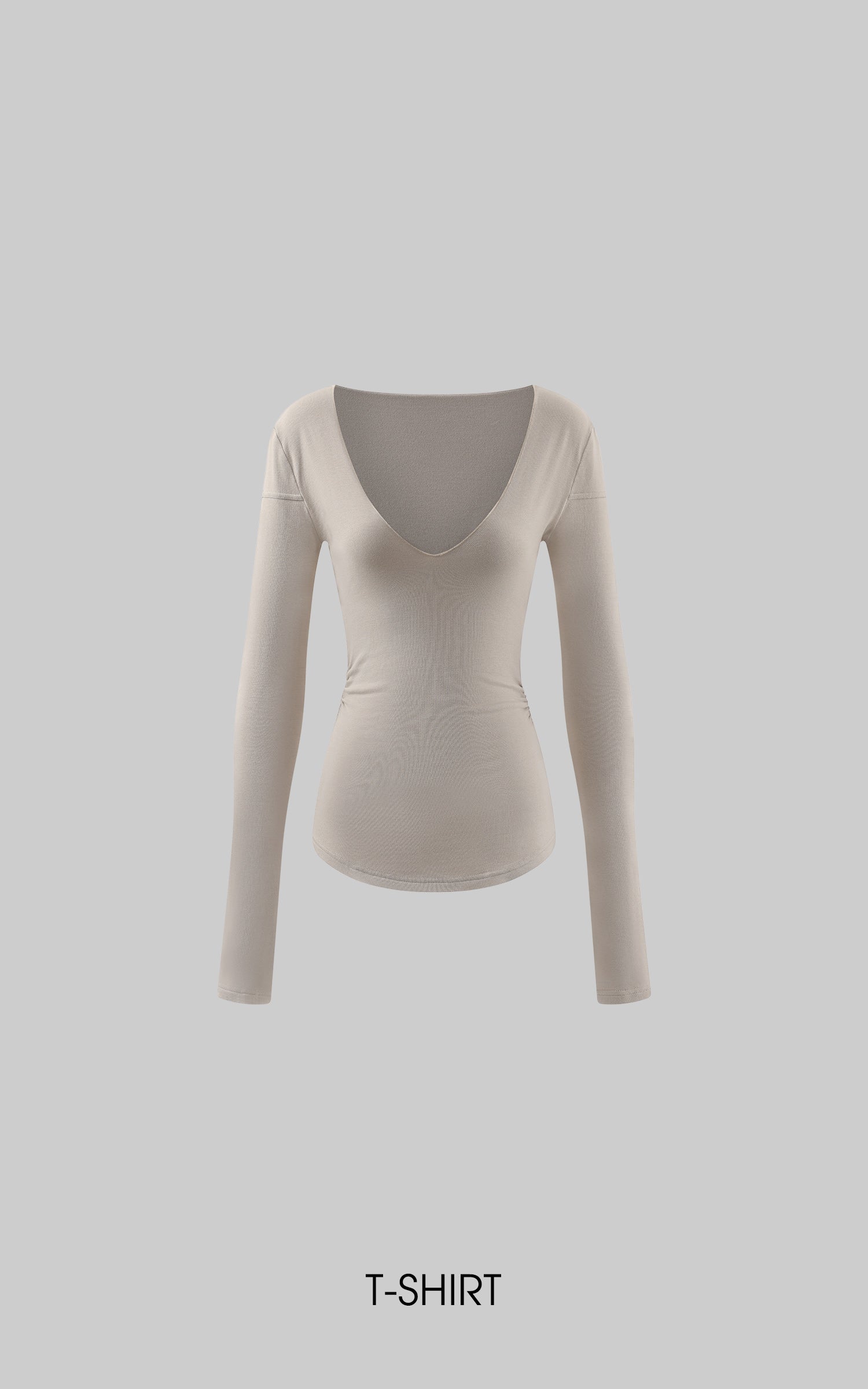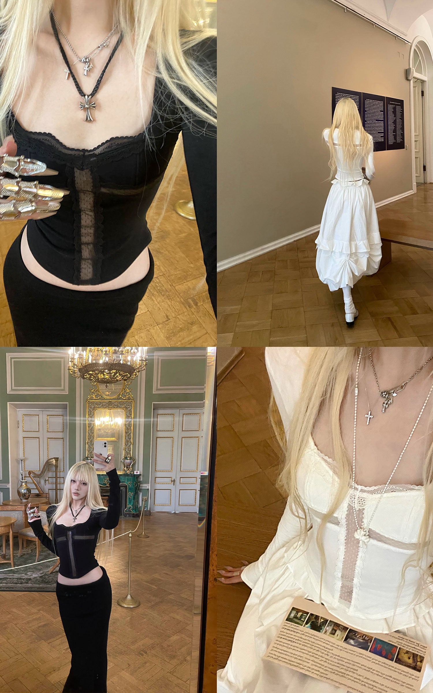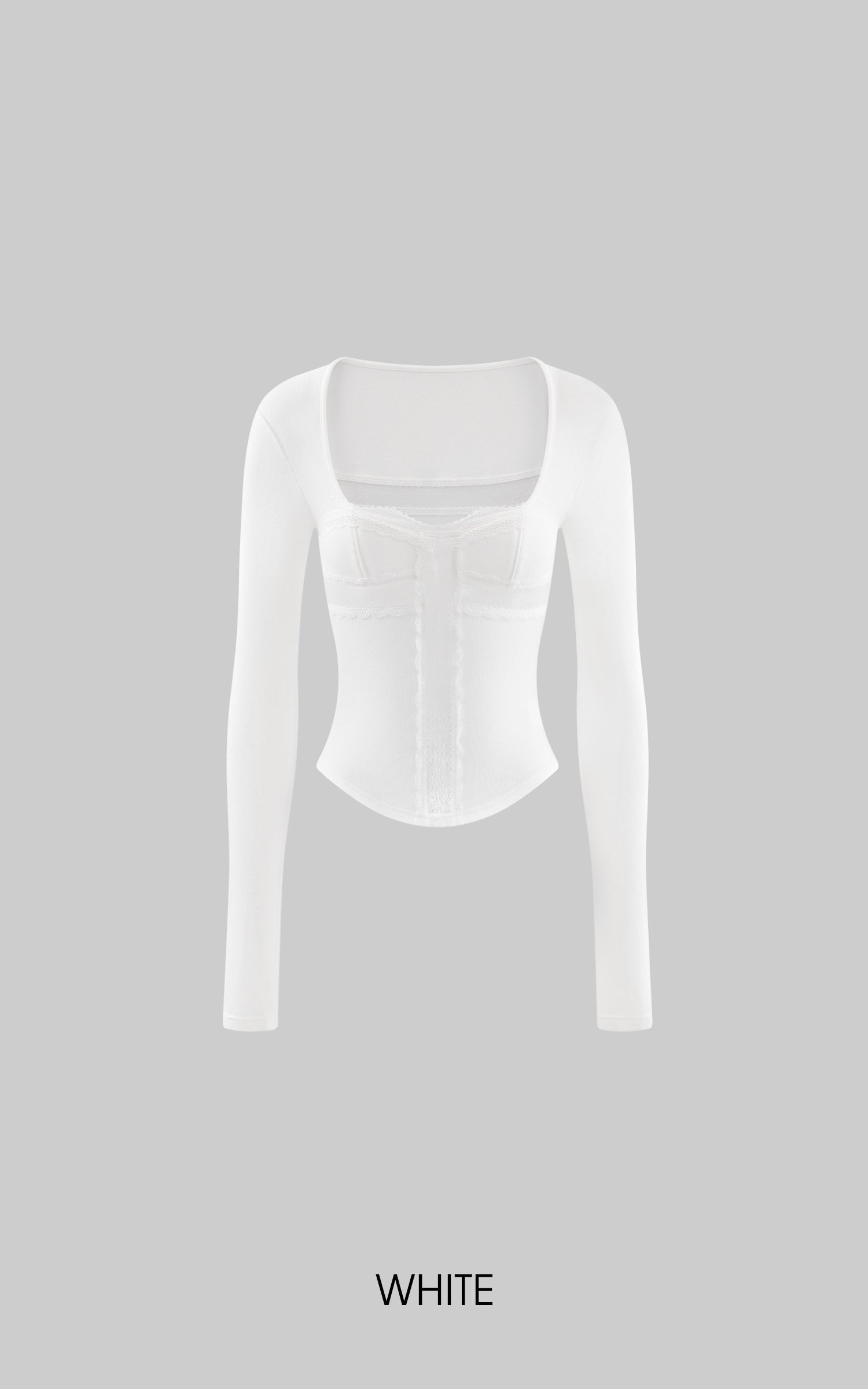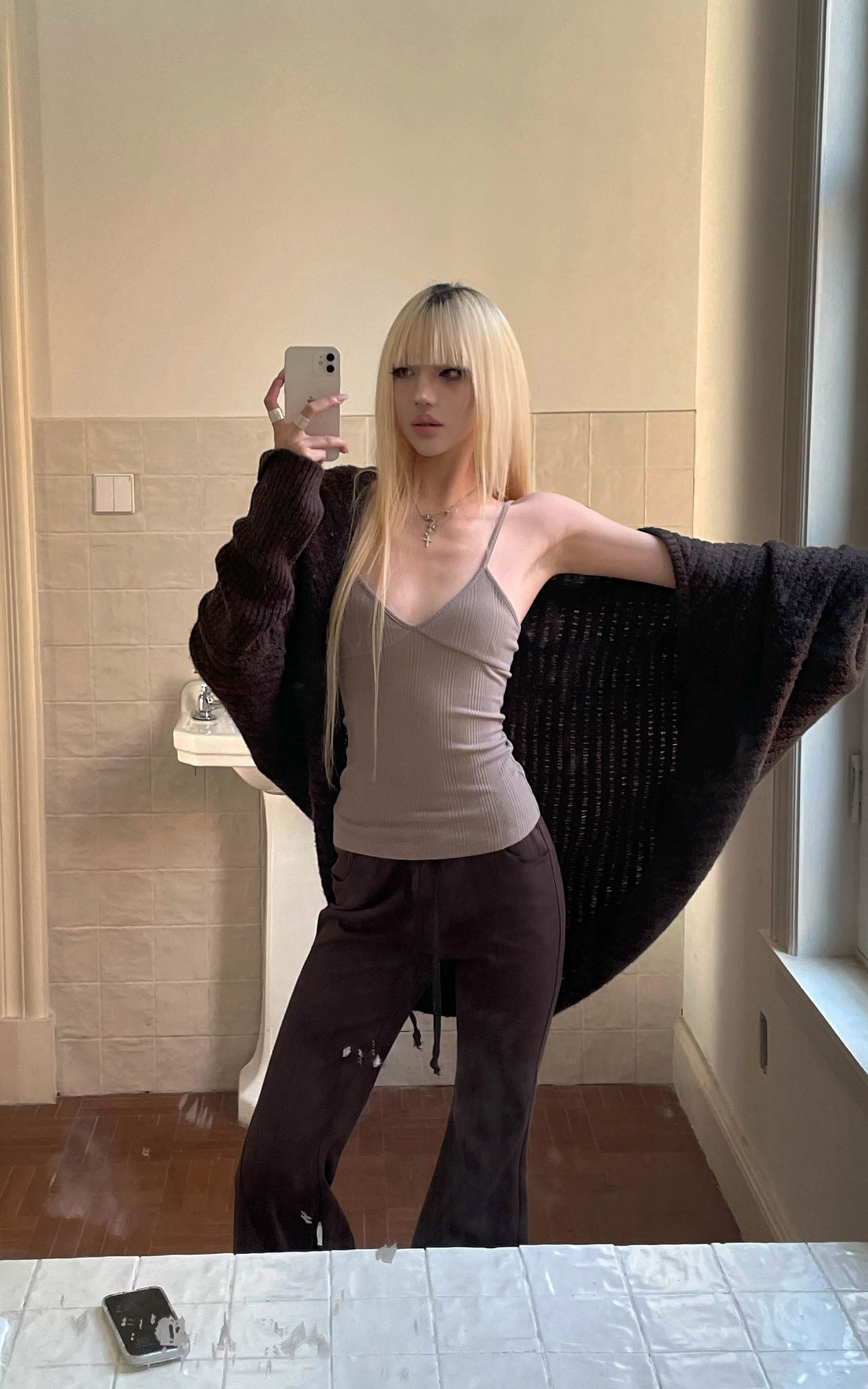 Rase le sol レーストリム付きリブ深Vネック長袖Tシャツとキャミソールセット