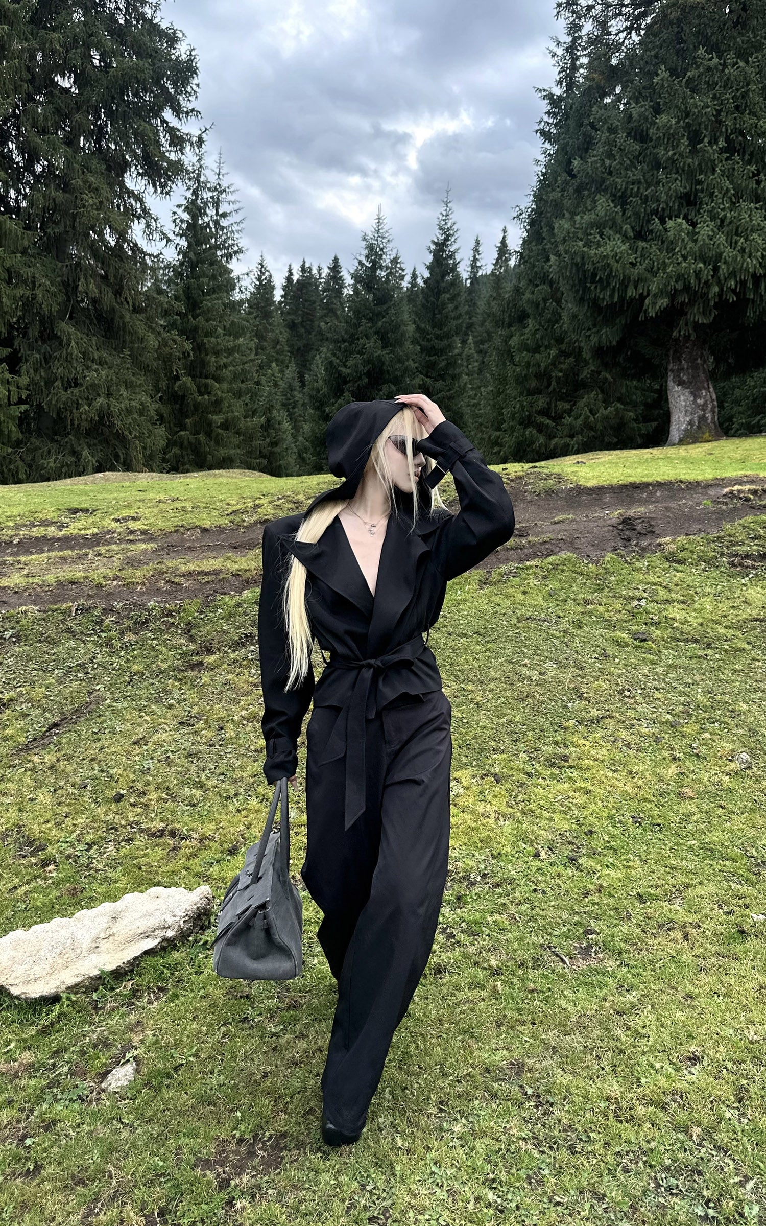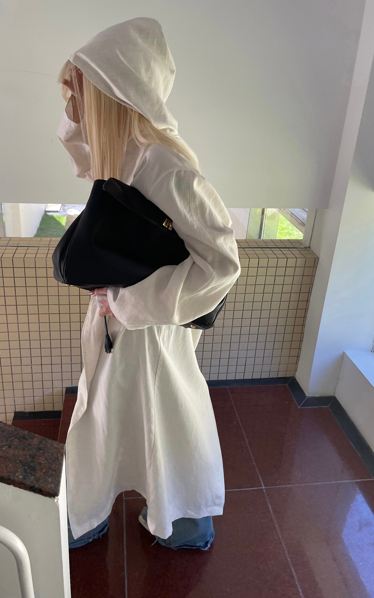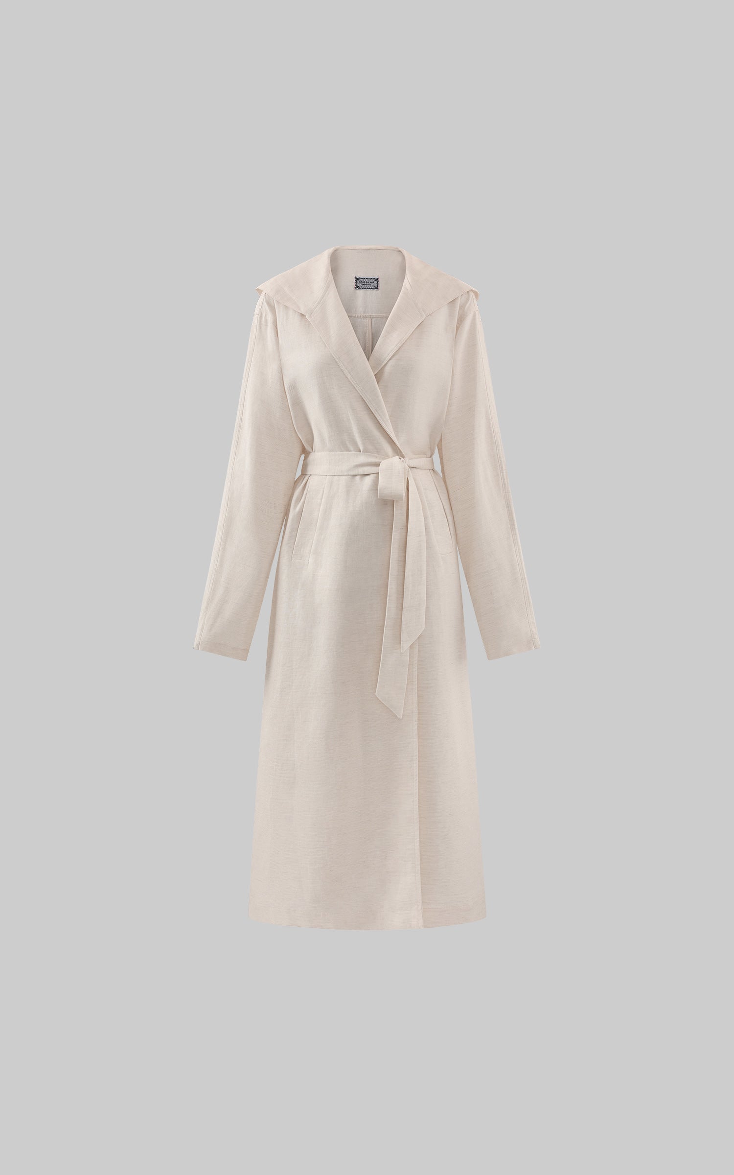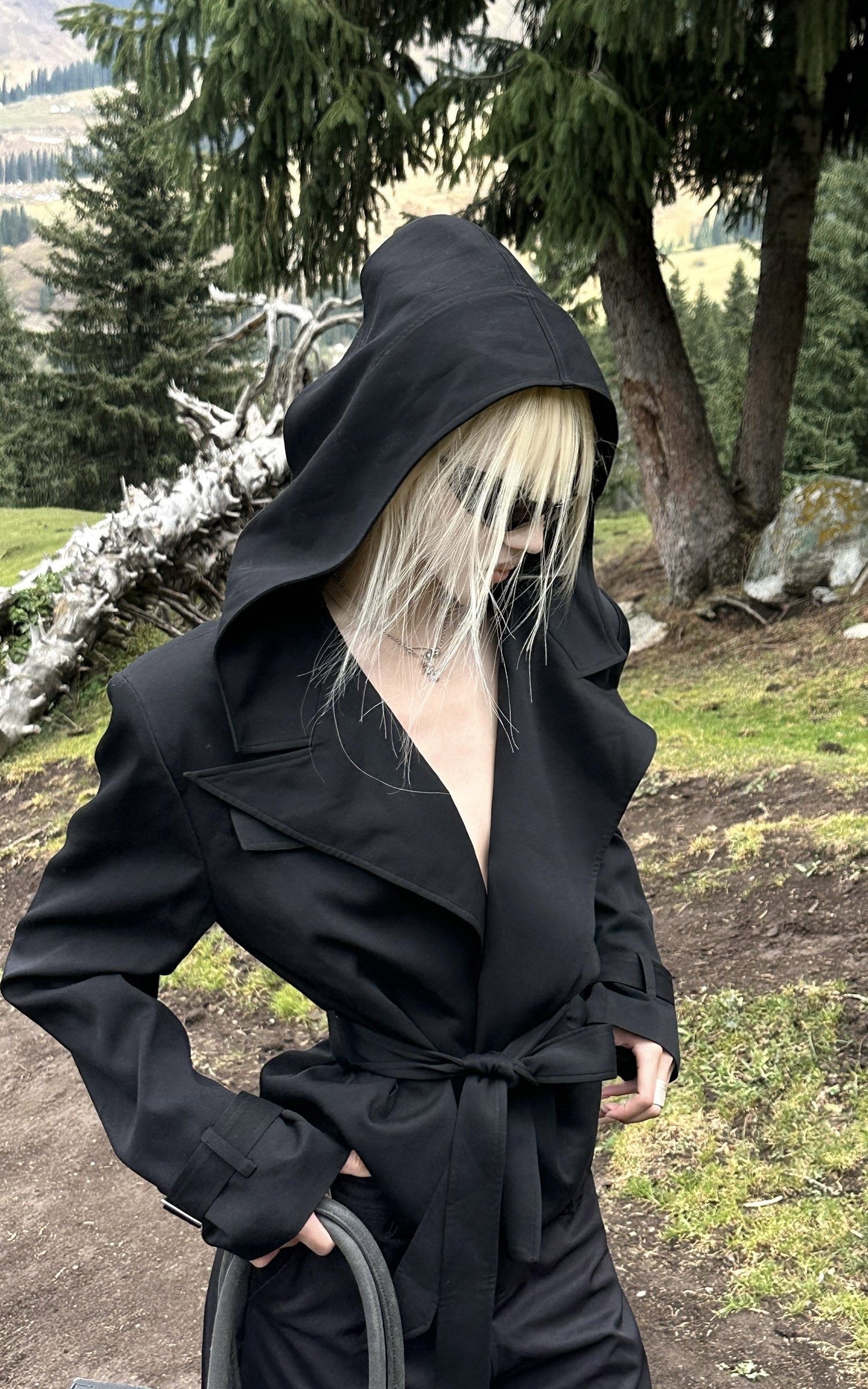 Rase le sol 調整可能なウエストベルト付きフード付きロングコート