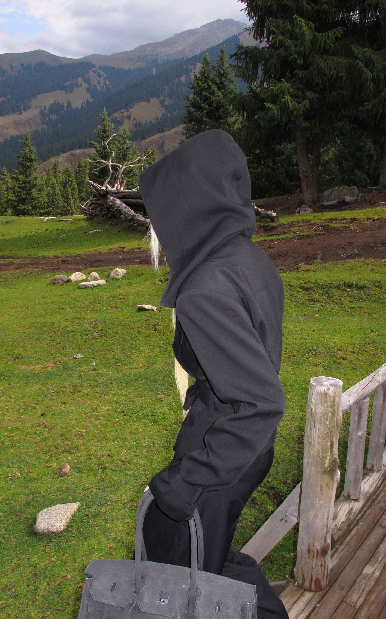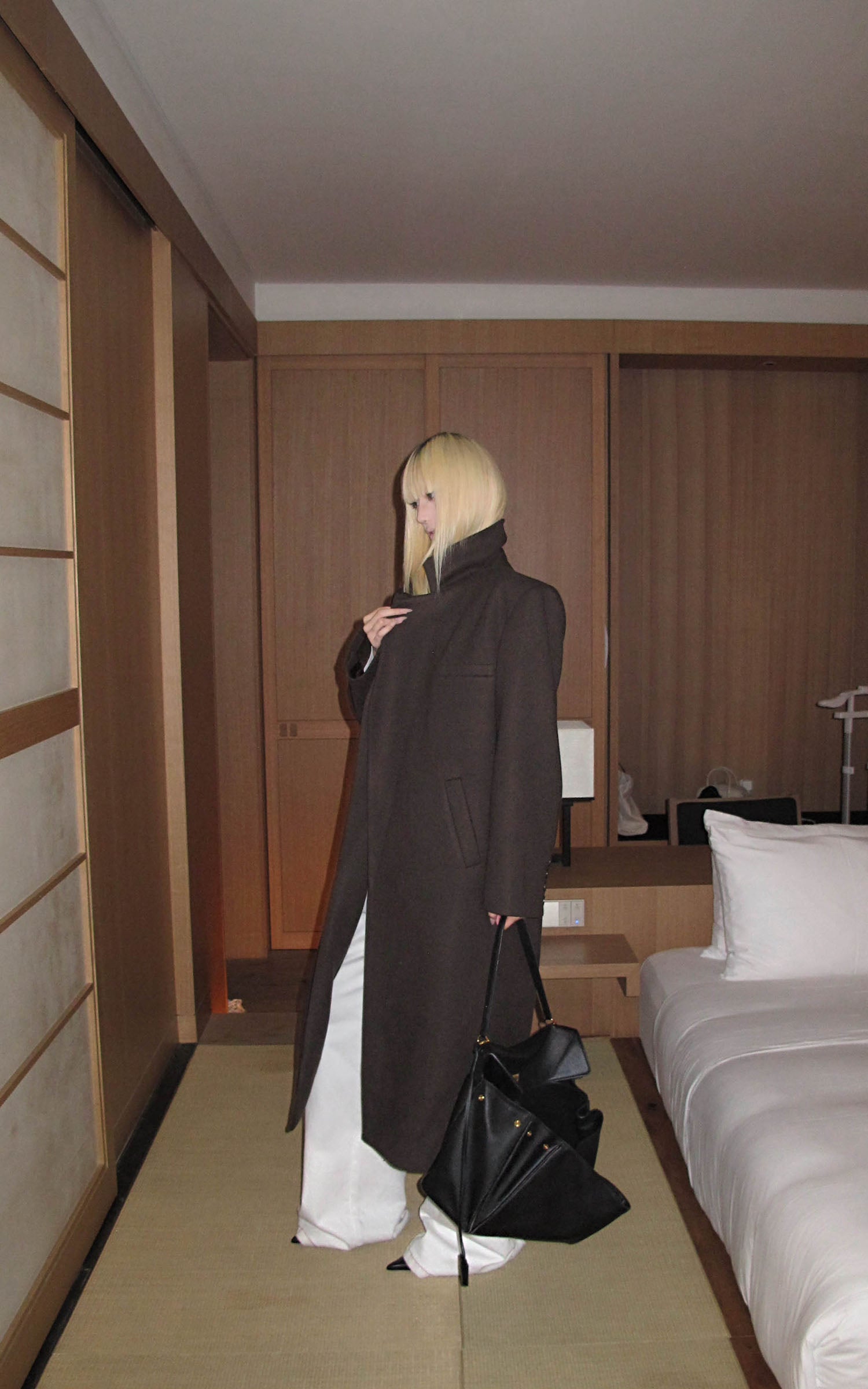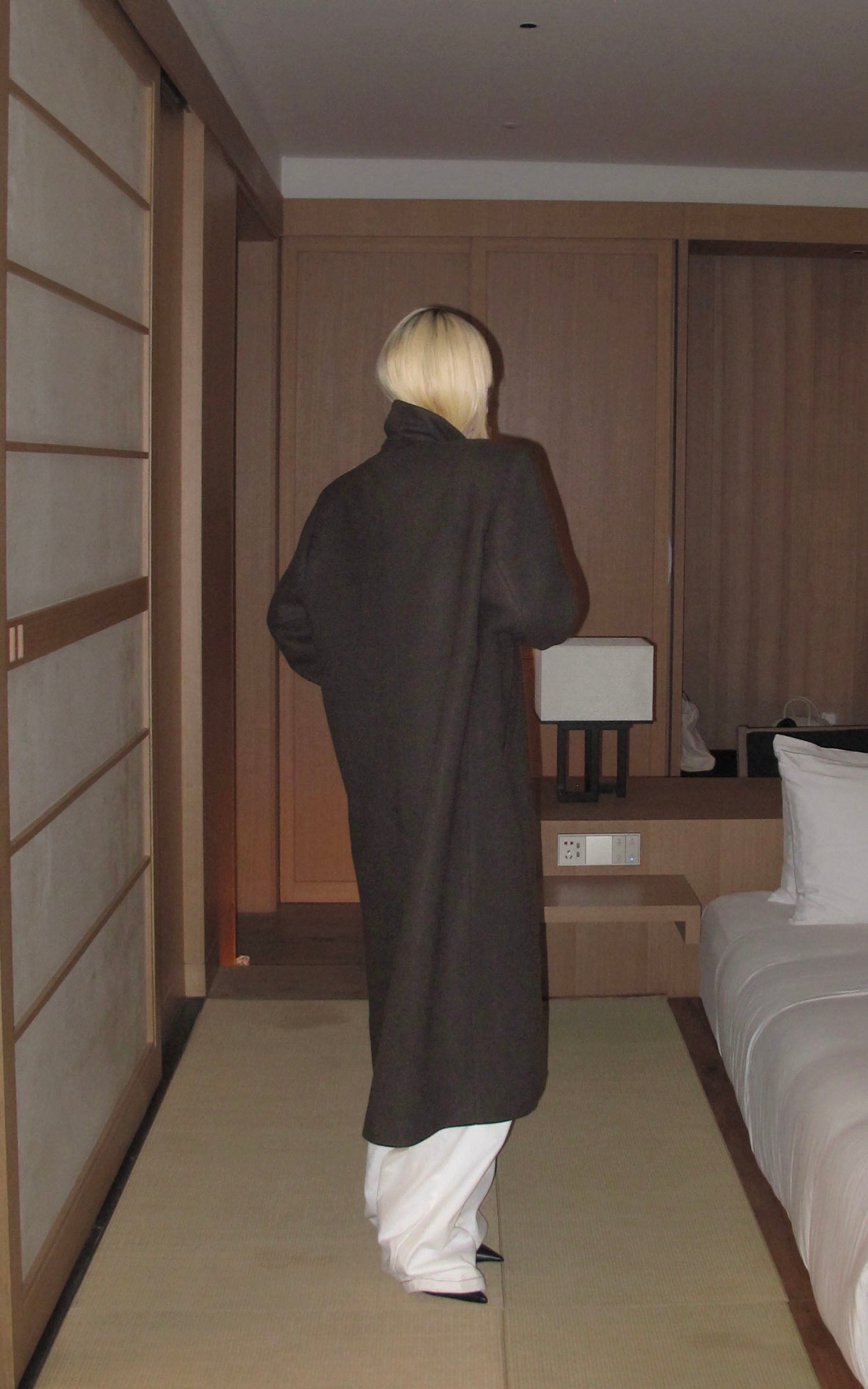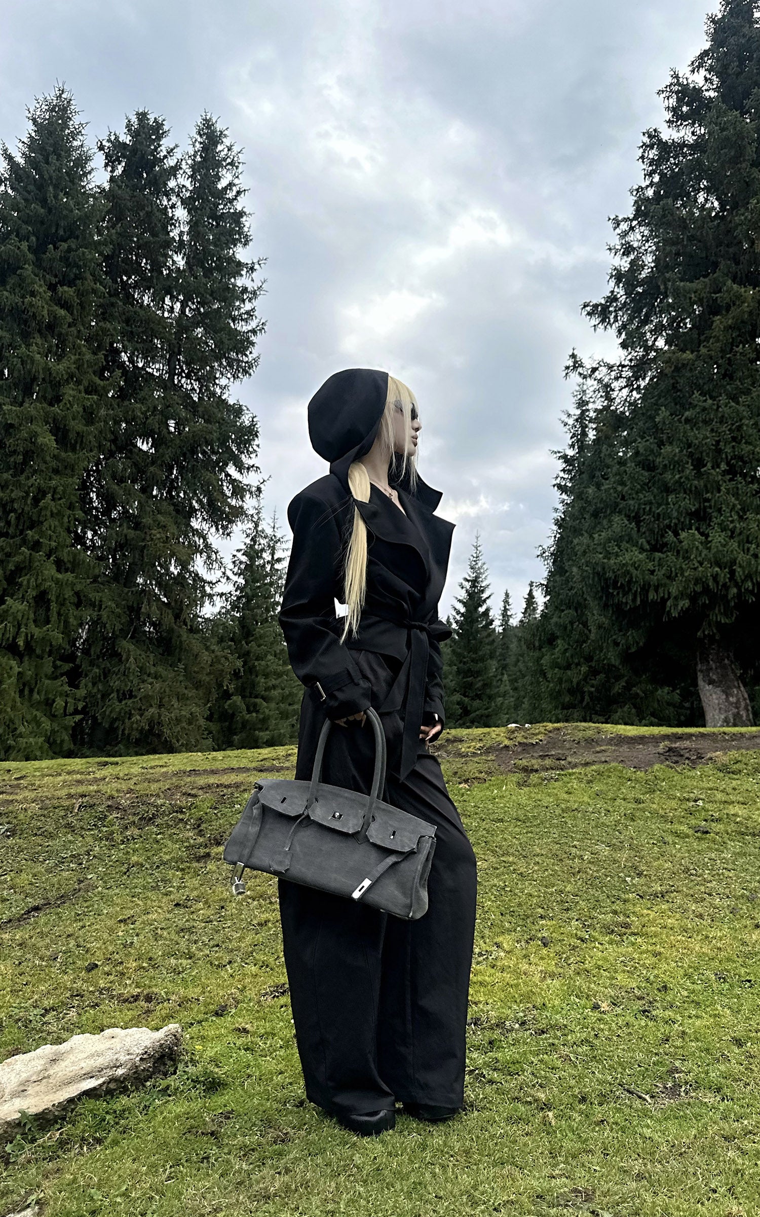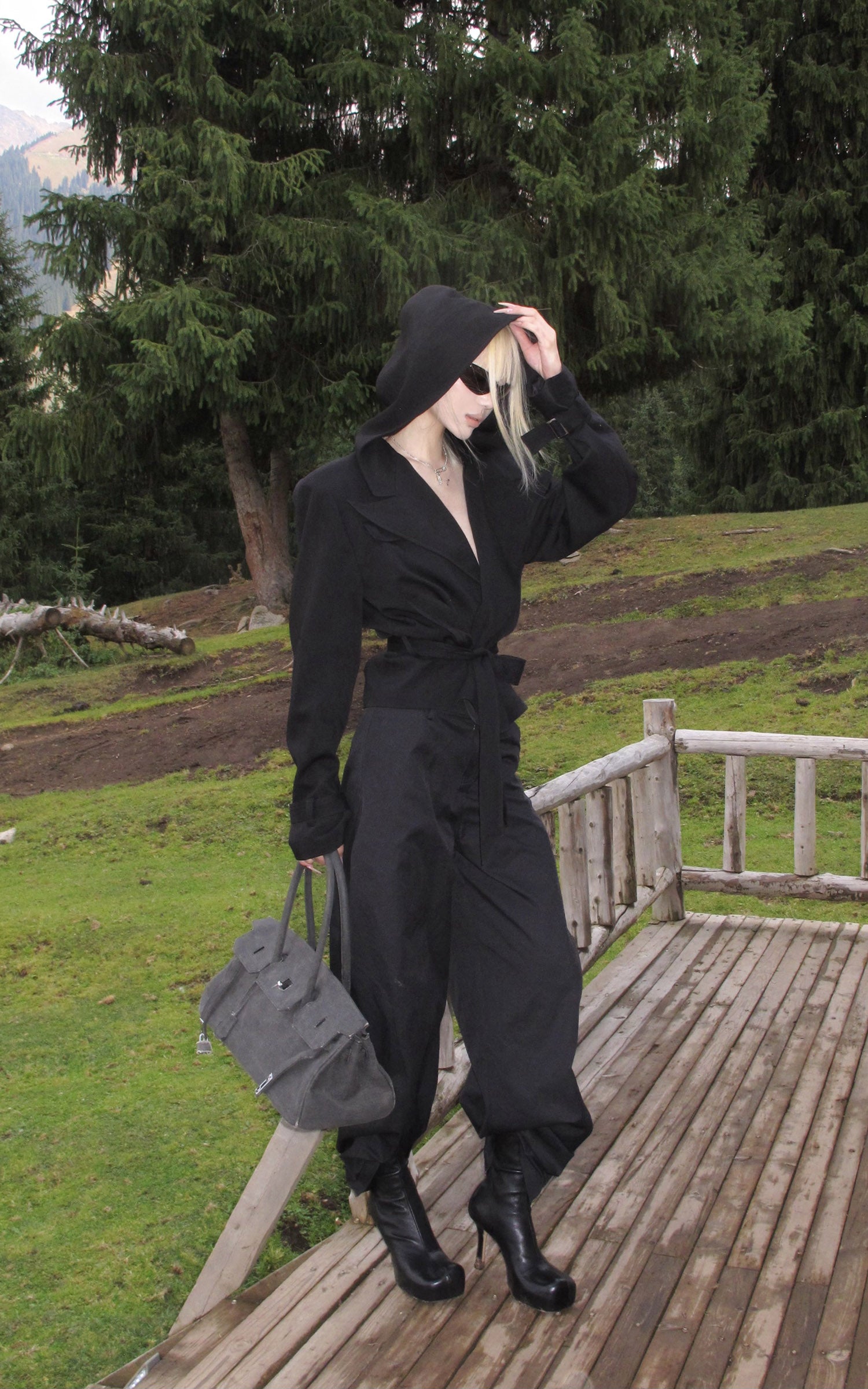 Rase le sol 調整可能なウエストベルト付きフード付きロングコート