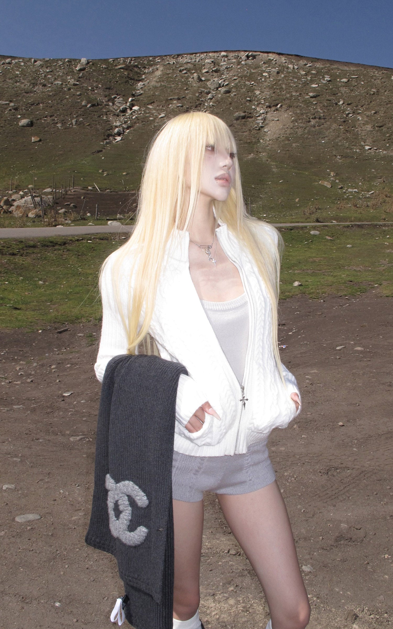 Rase le sol ハイネック ケーブルニットカーディガン(立体フィット&クロスジッパー付き)