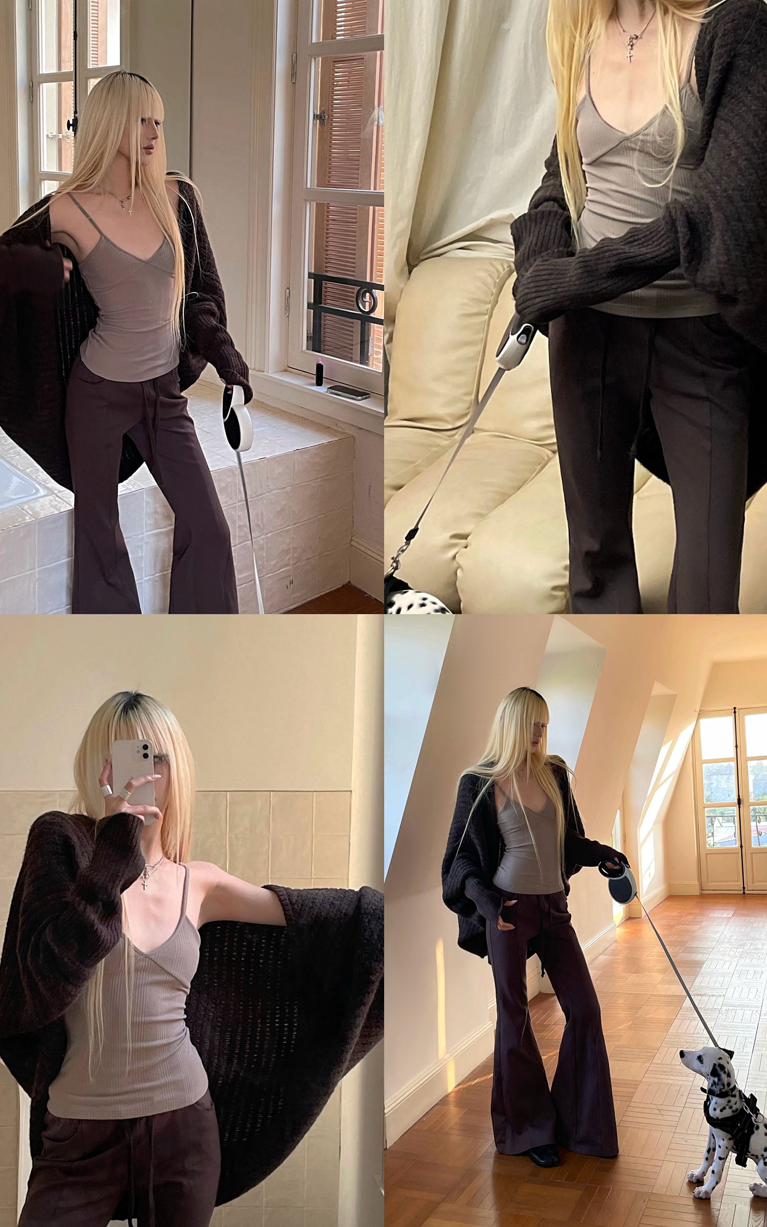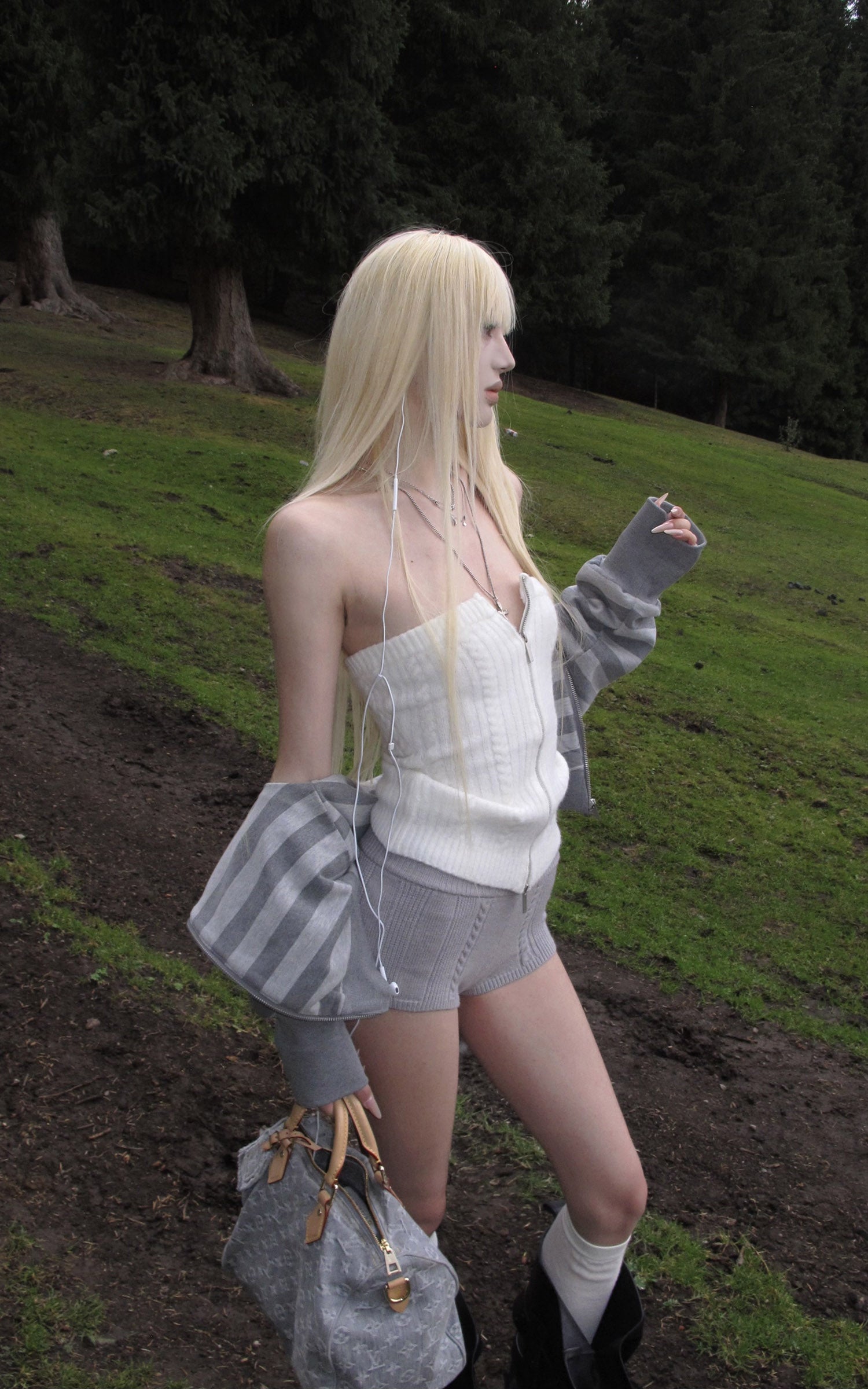 Rase le sol ウール混ジップフロントストラップレスニットトップ