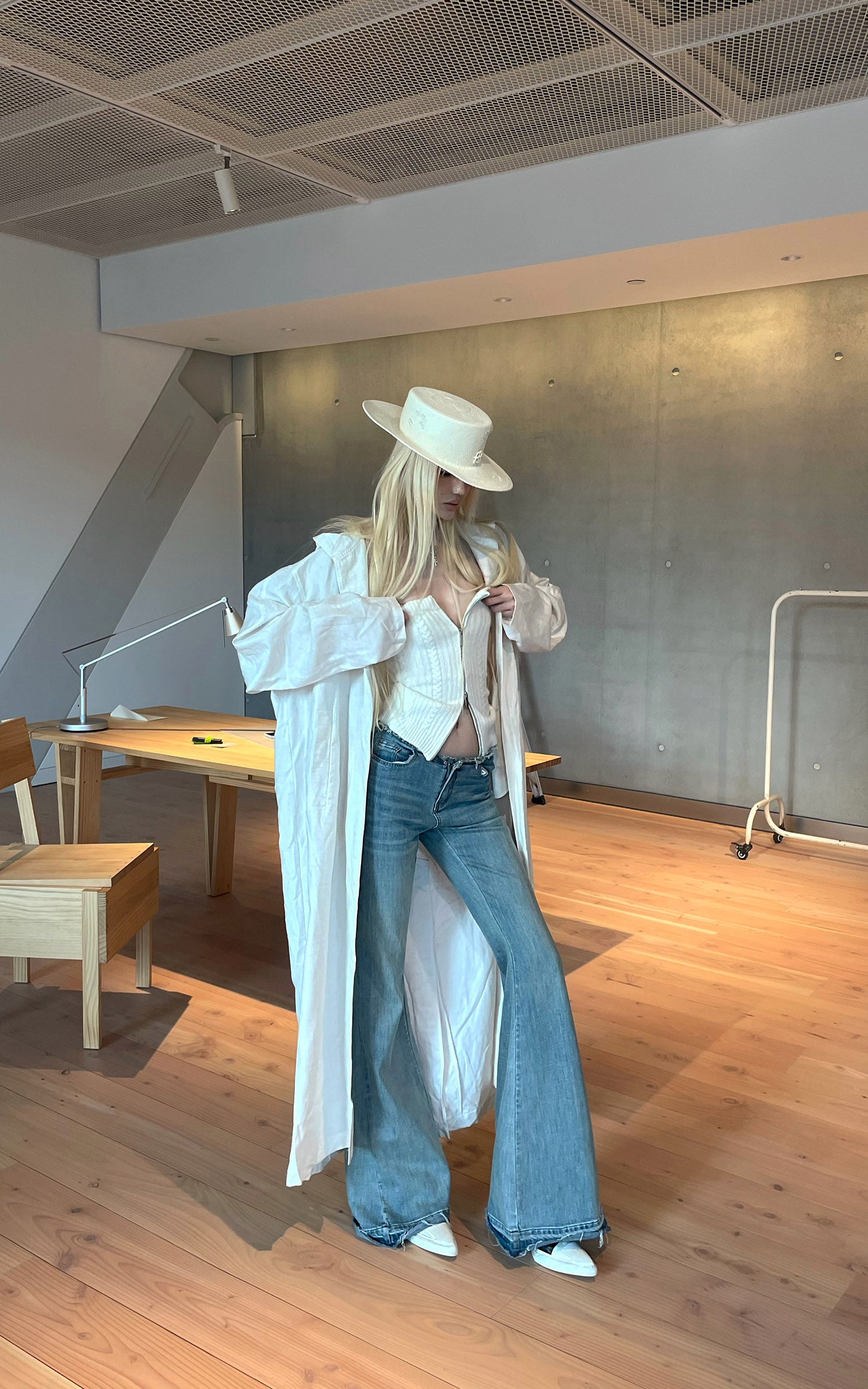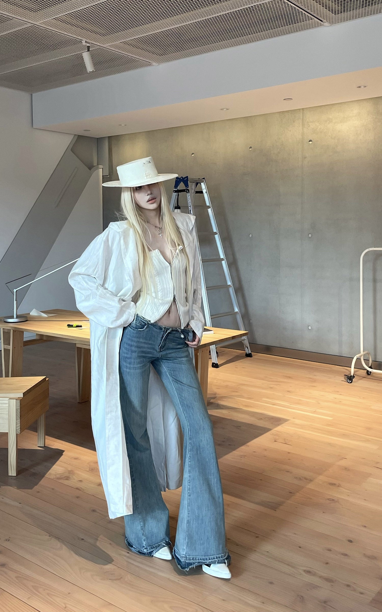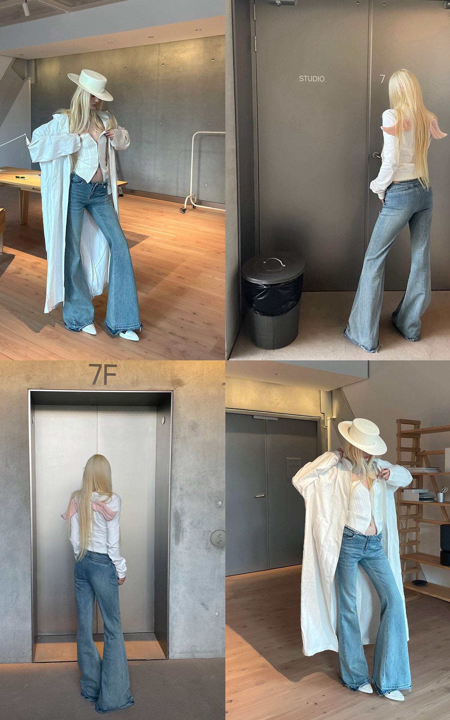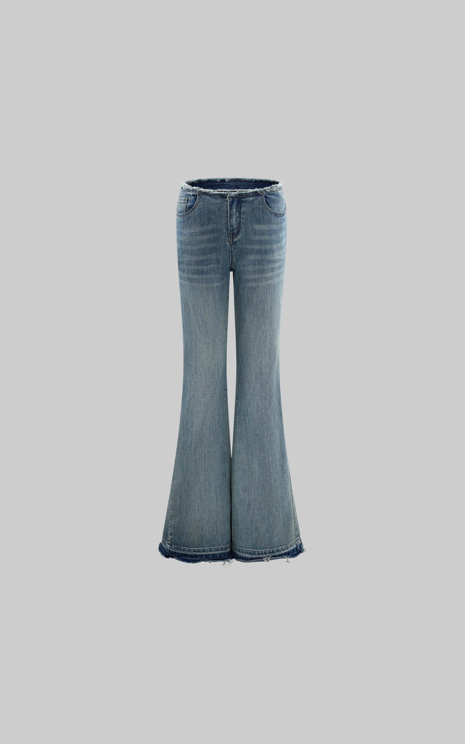 Rase le sol デコンストラクテッド生デニムフレアトラウザーズ