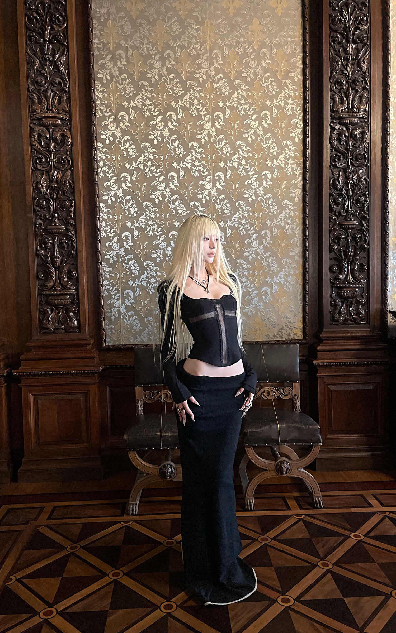 Rase le sol ジップカラー スウェットジャケットとパネルマキシスカートセット