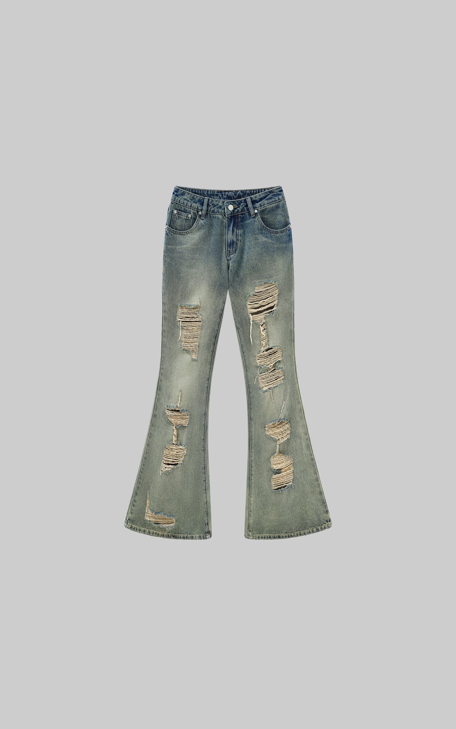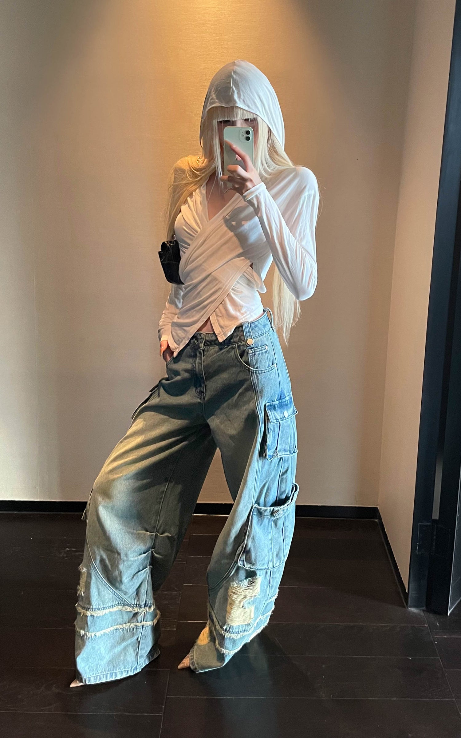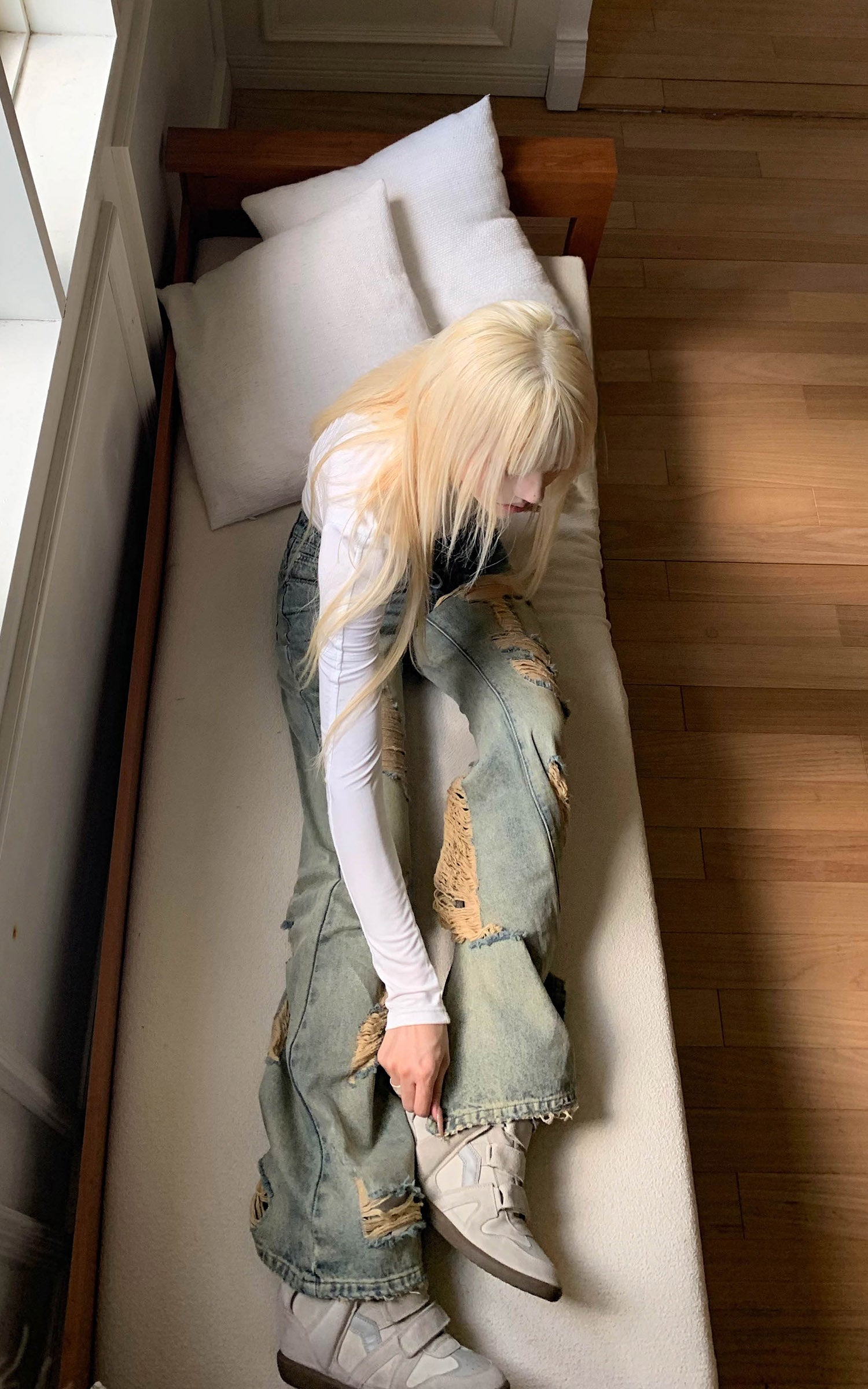 Rase le sol デコンストラクト加工ワイドレッグデニムパンツ