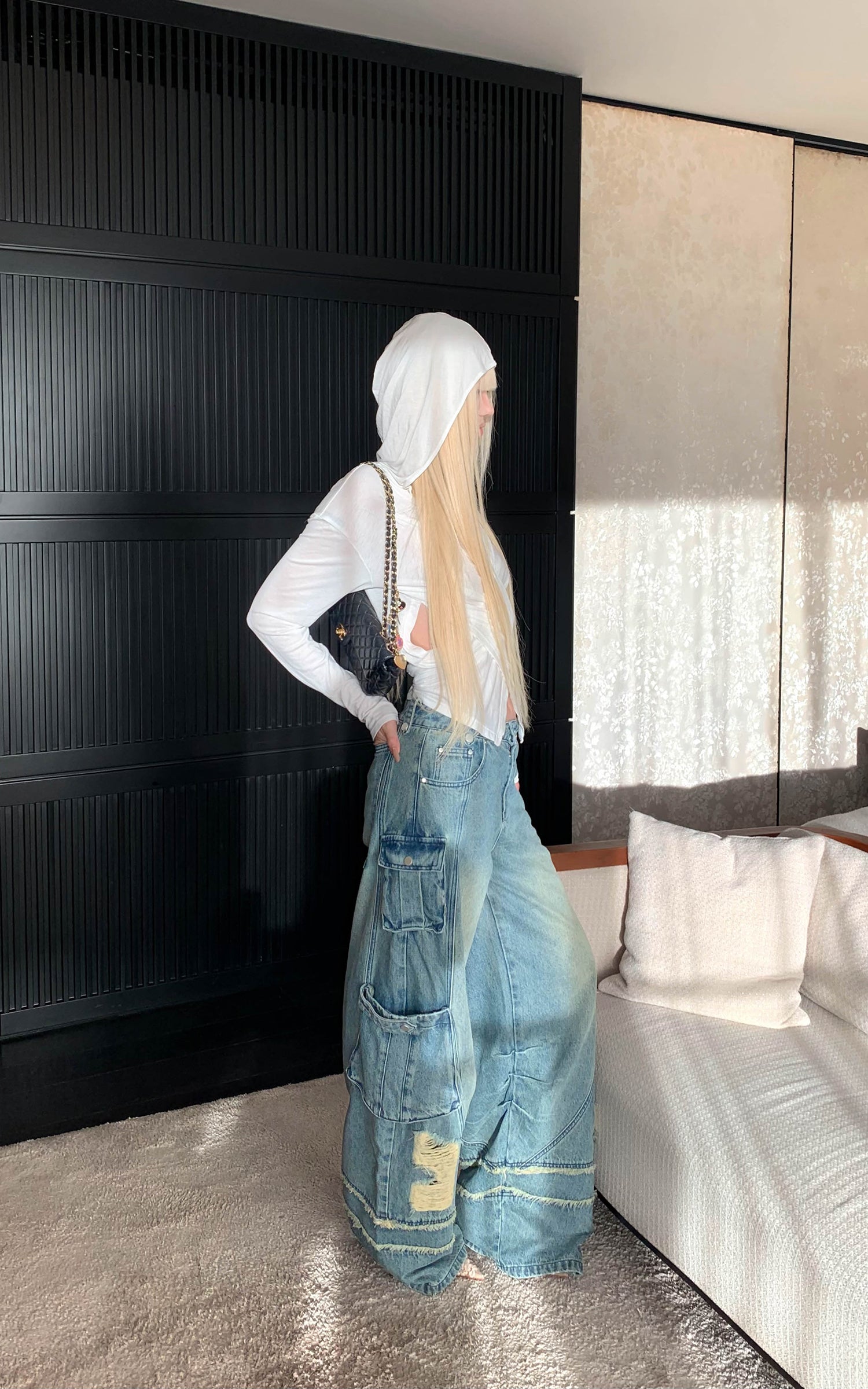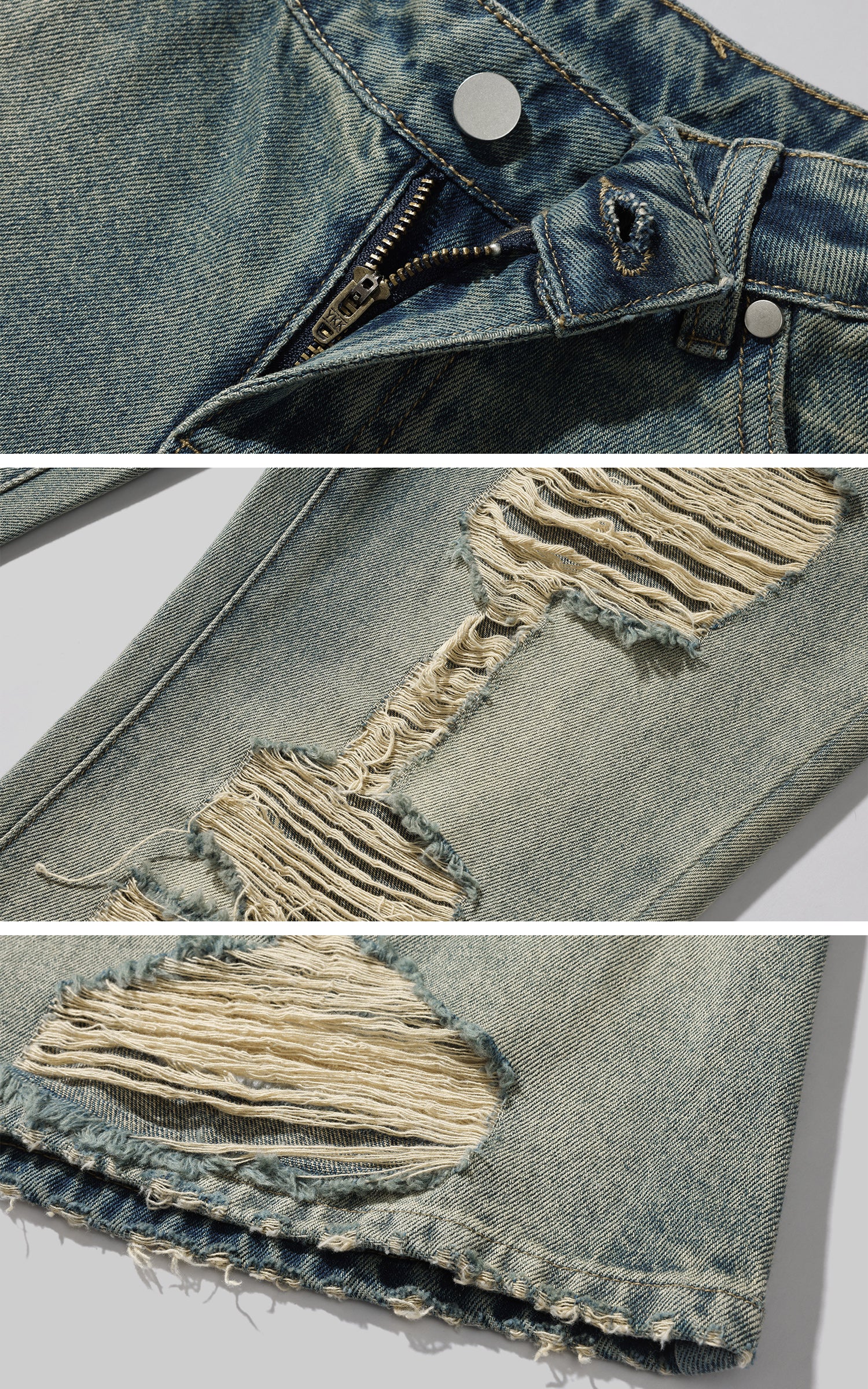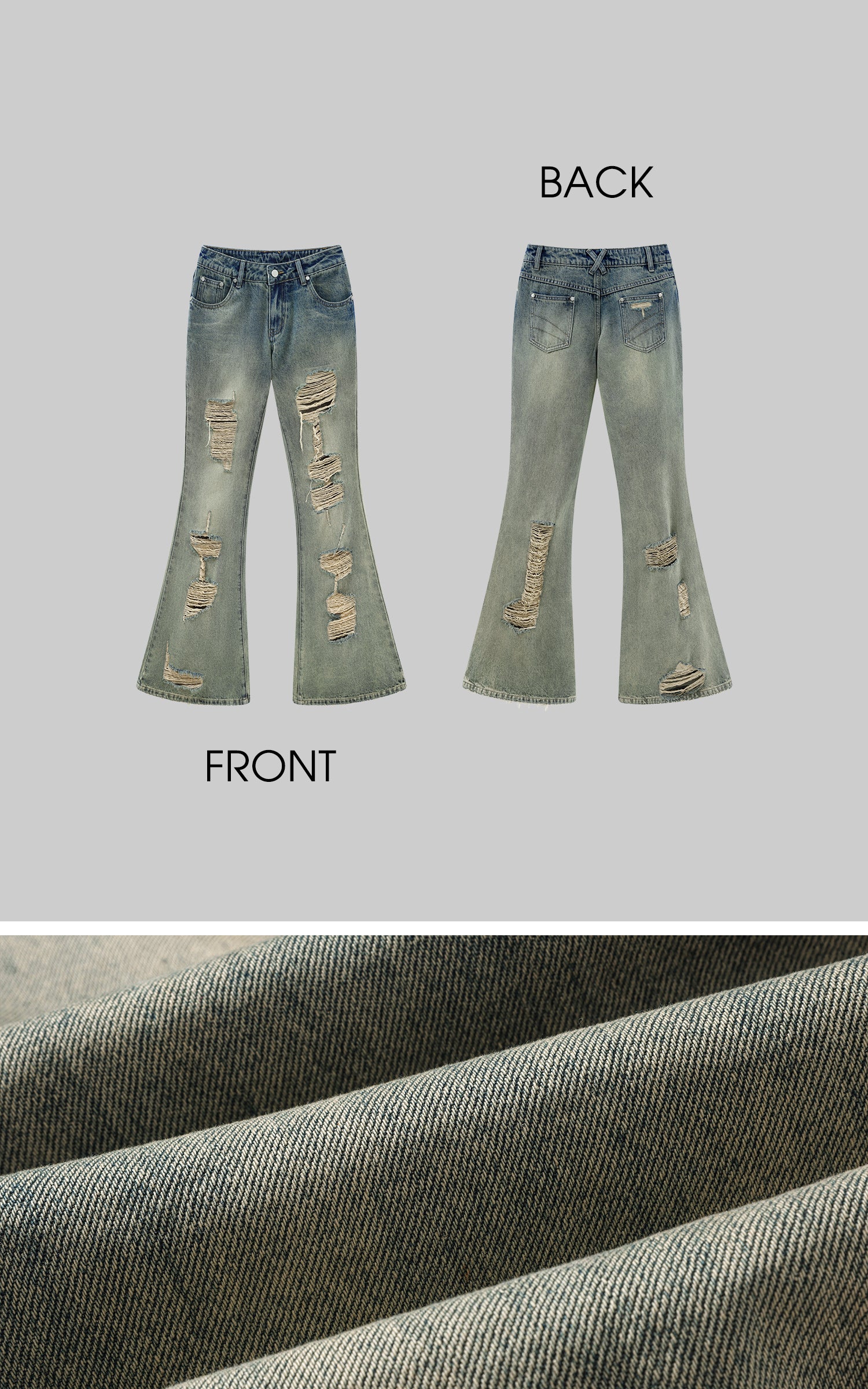 Rase le sol デコンストラクト加工ワイドレッグデニムパンツ
