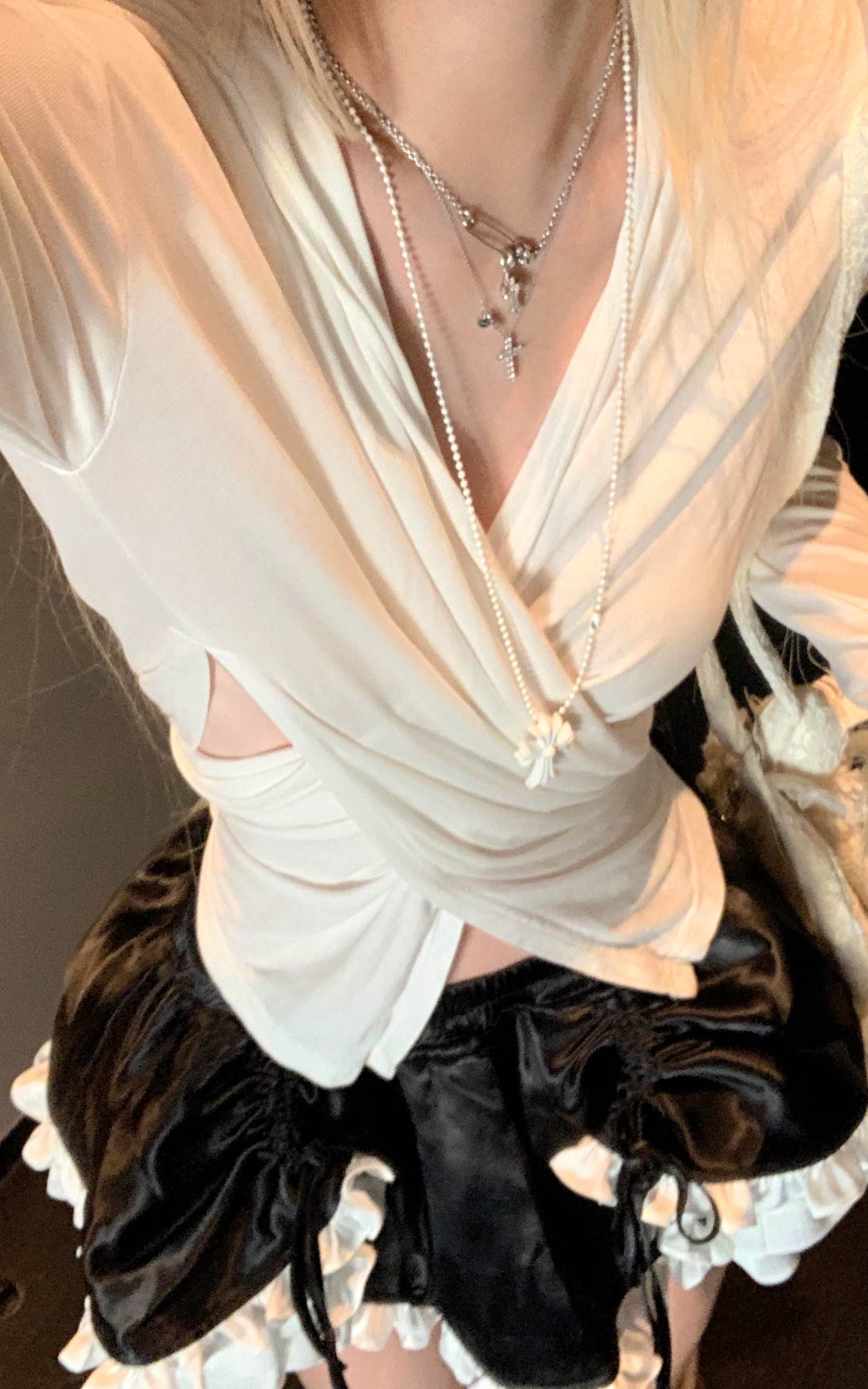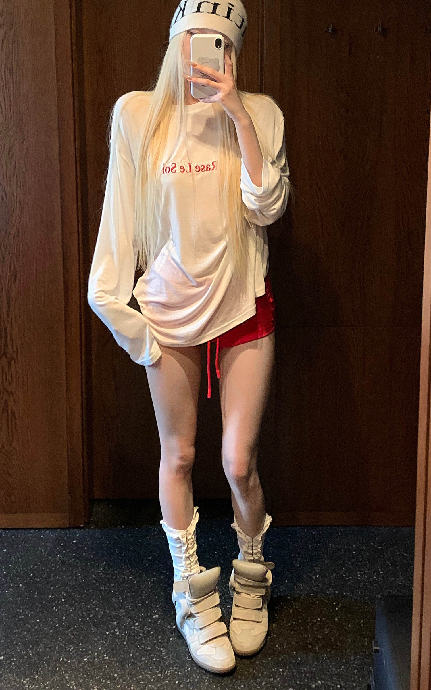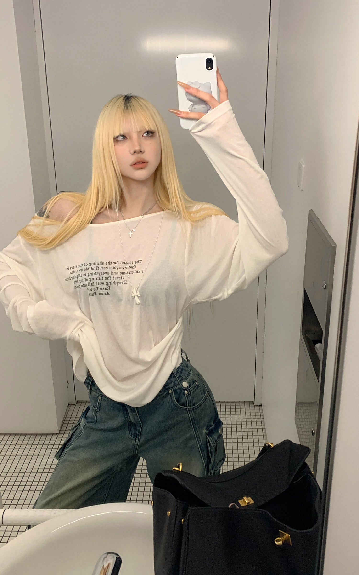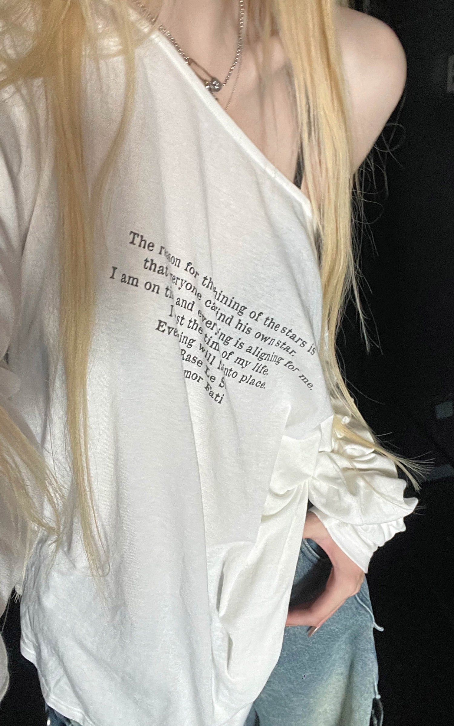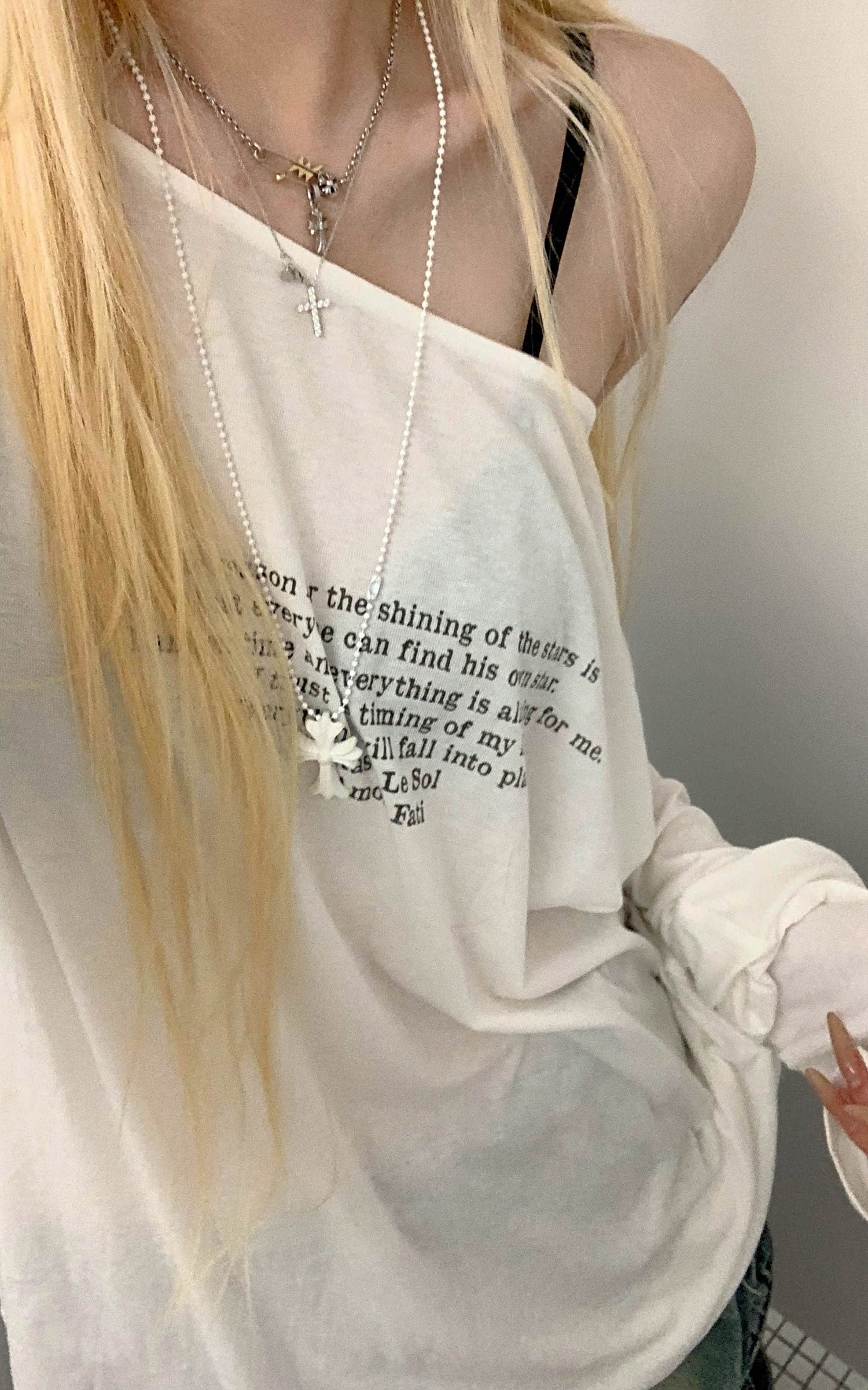 Rase le sol クォートプリント入りセミシアー長袖Tシャツ+ミニマル三角ブラセット