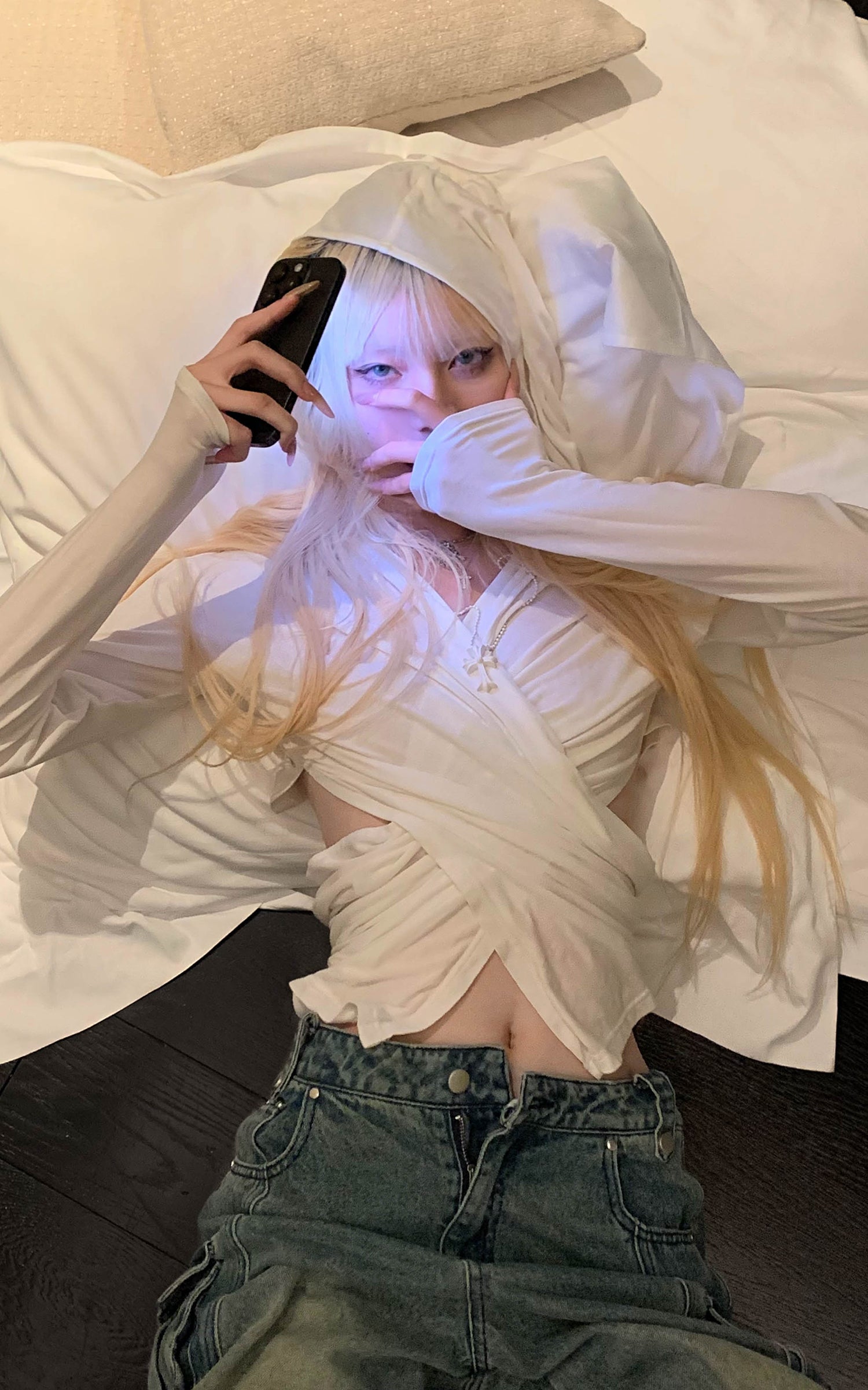 Rase le sol グレー ニット シアー 長袖トップス&ミニマリストブラ レイヤードセット