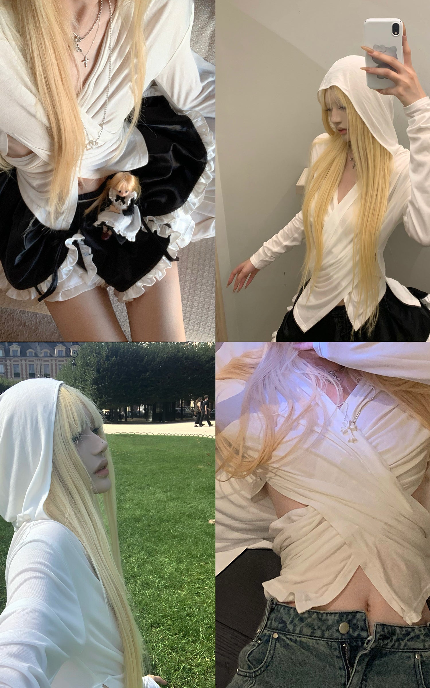 Rase le sol ウィングフーディー ブラック フィット コットン 長袖トップ