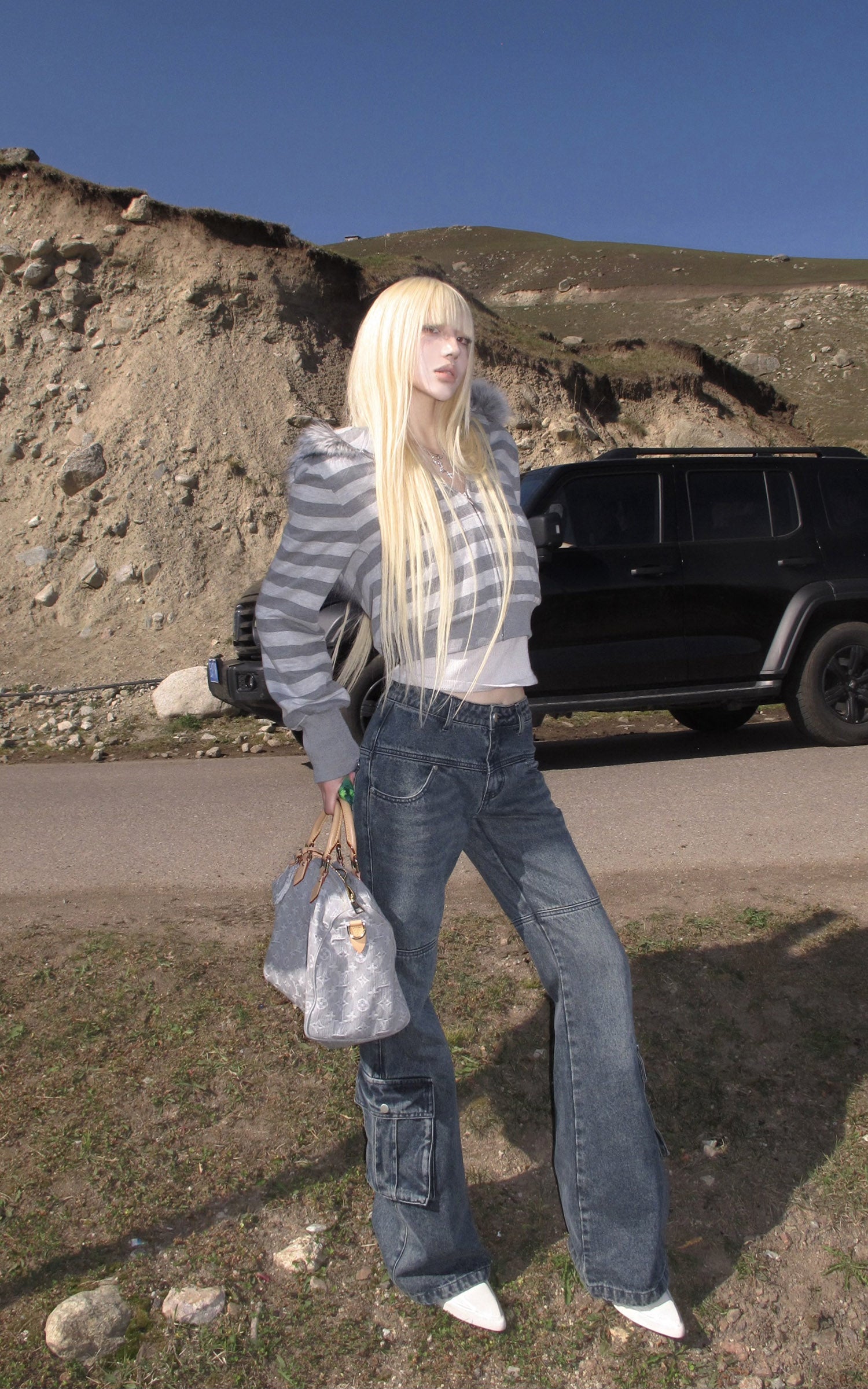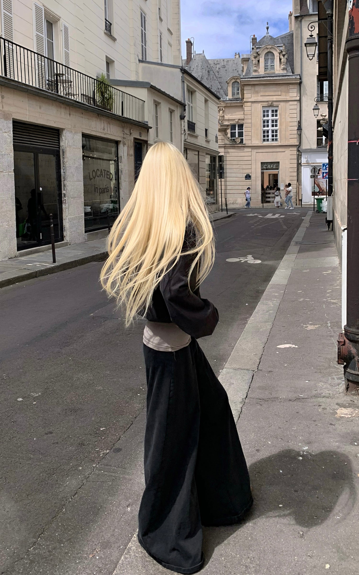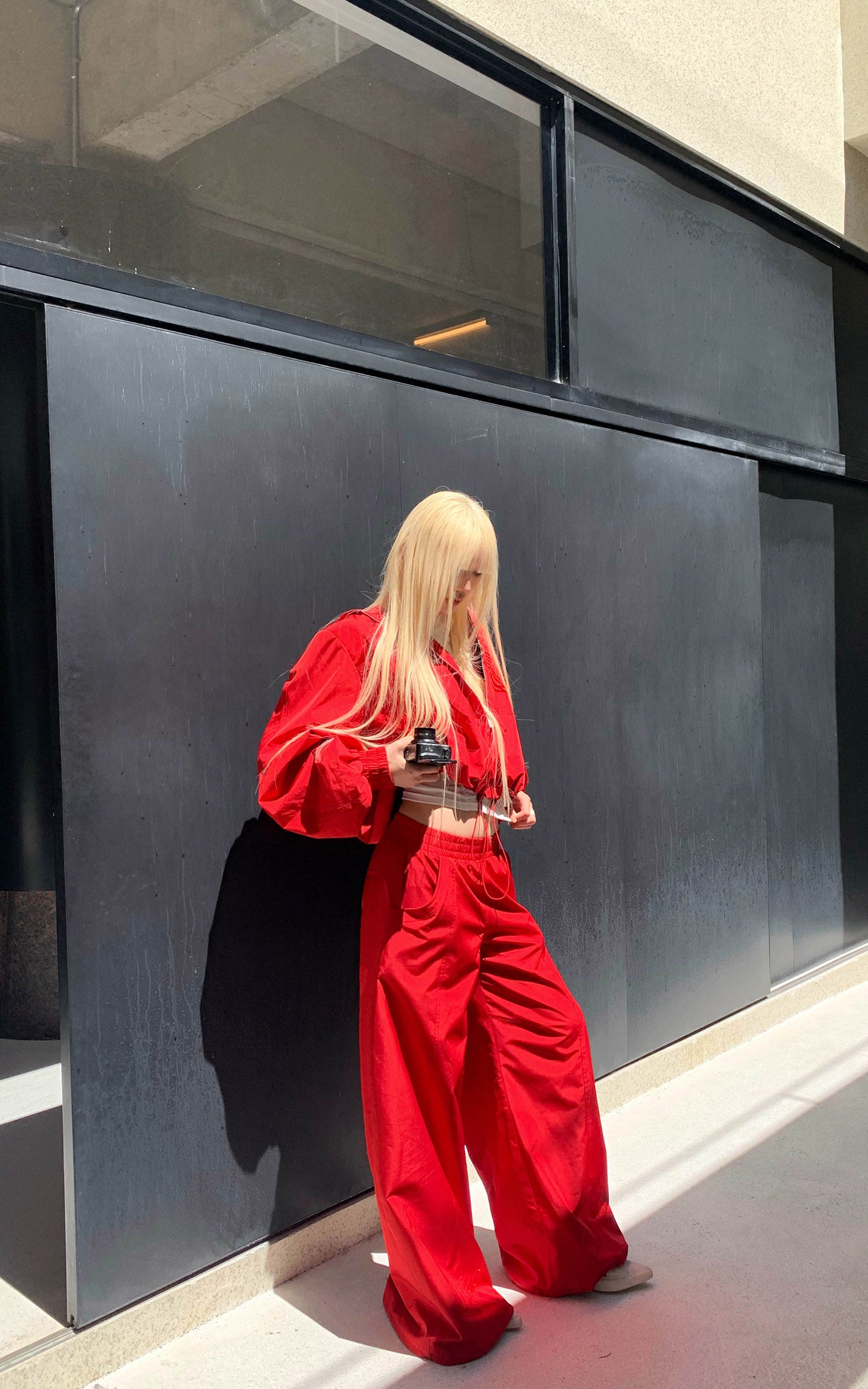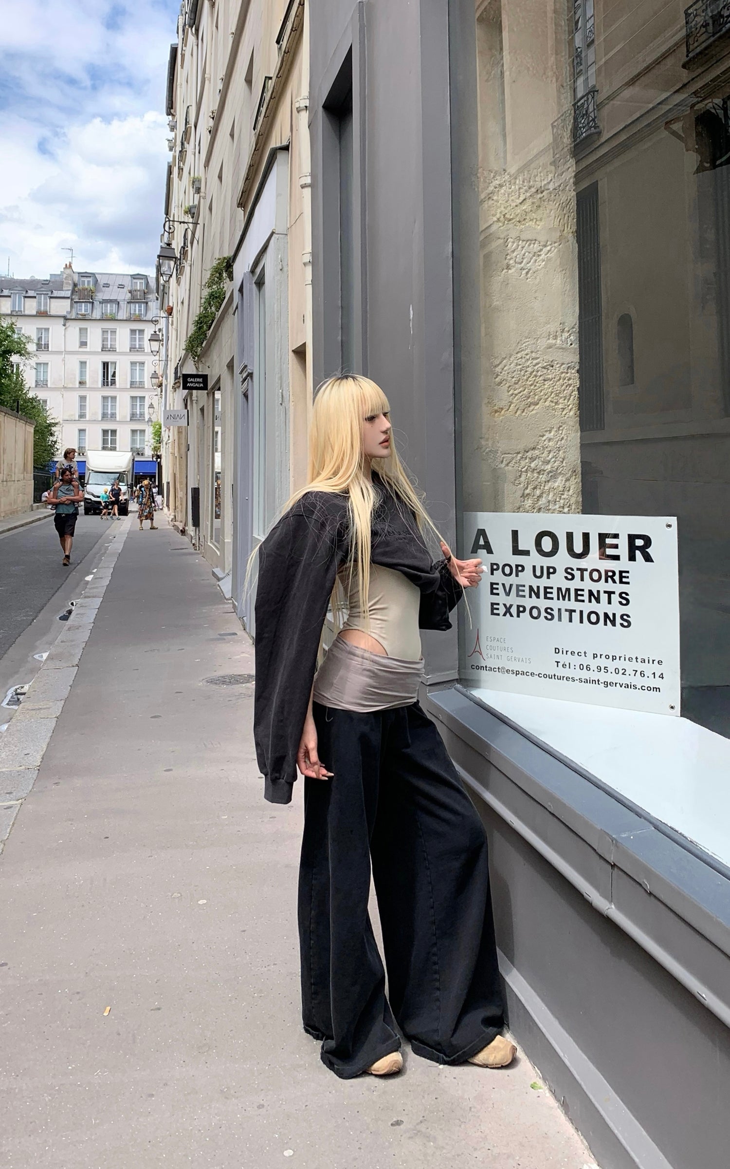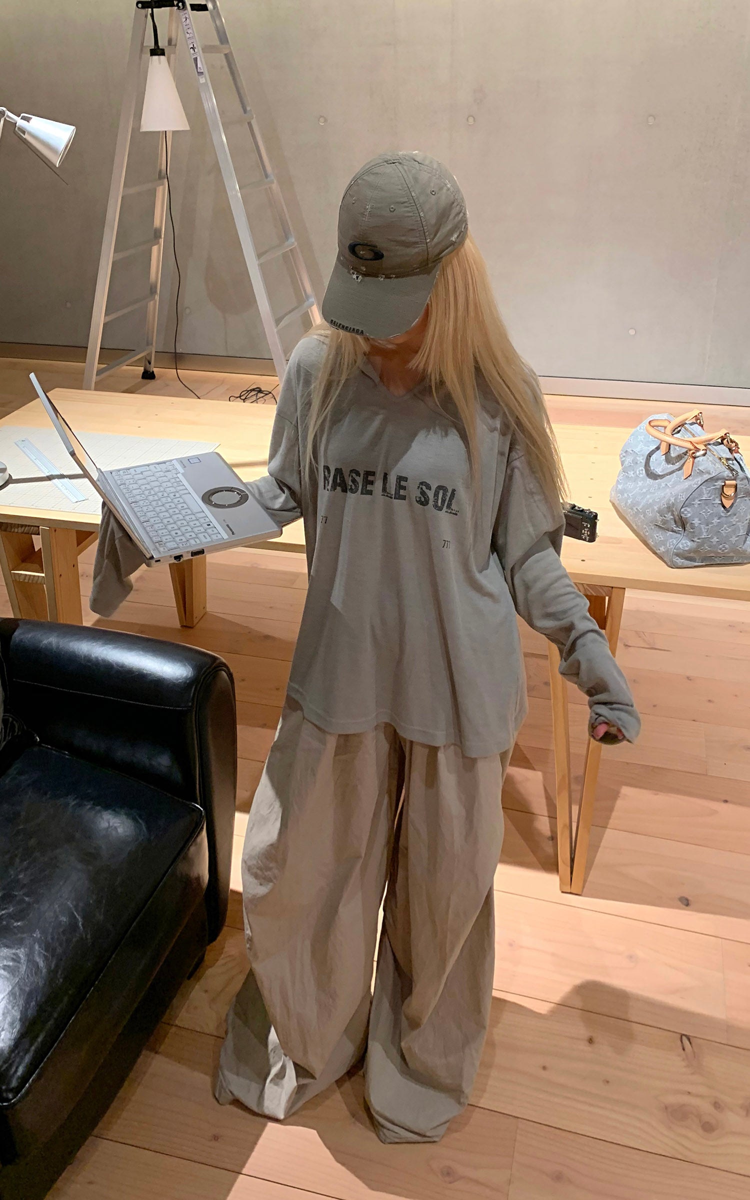 Rase le sol オーバーサイズフード付きジャケット&ワイドレッグパンツセット