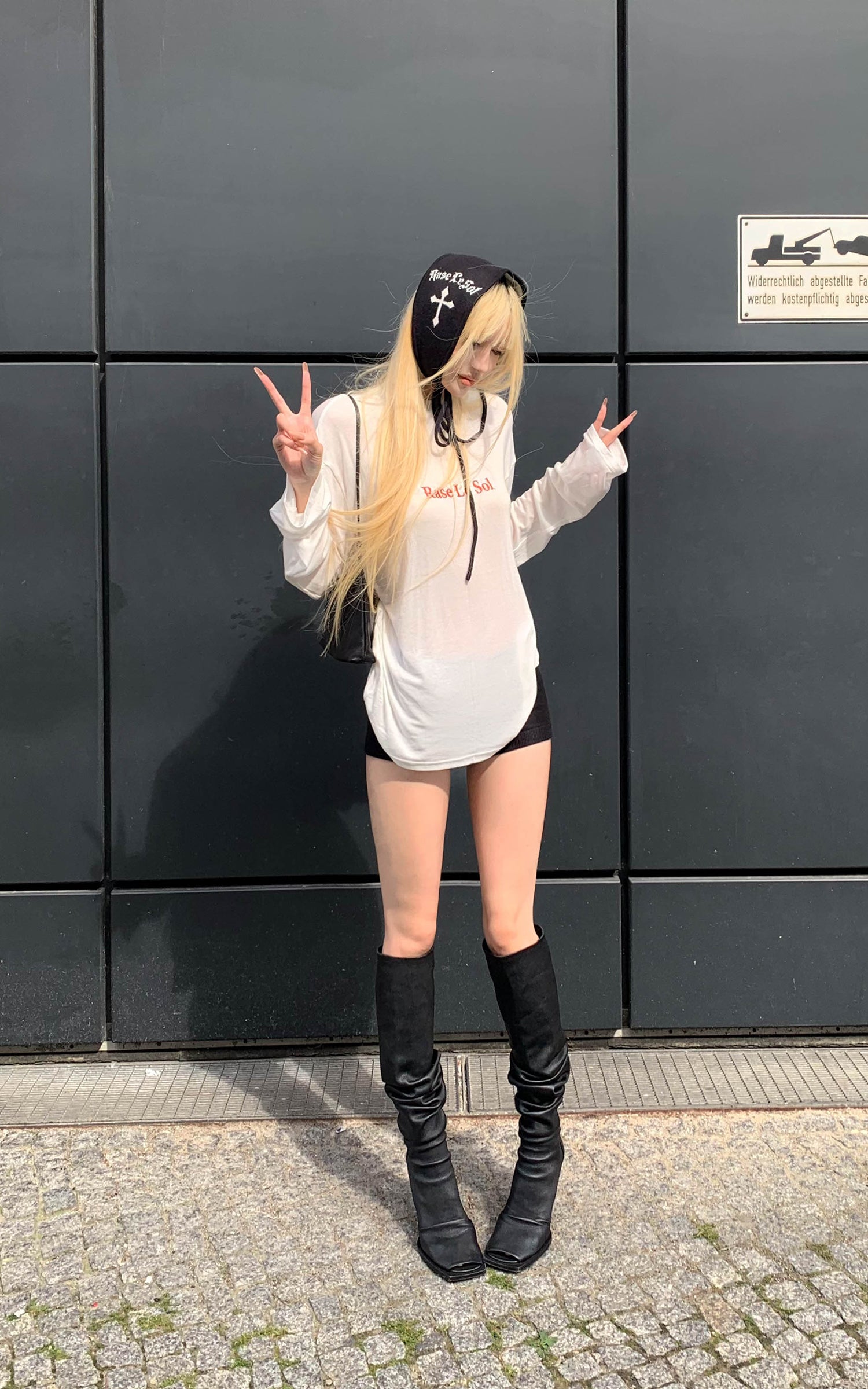 Rase le sol エンボス加工クロスフィット長袖Tシャツ