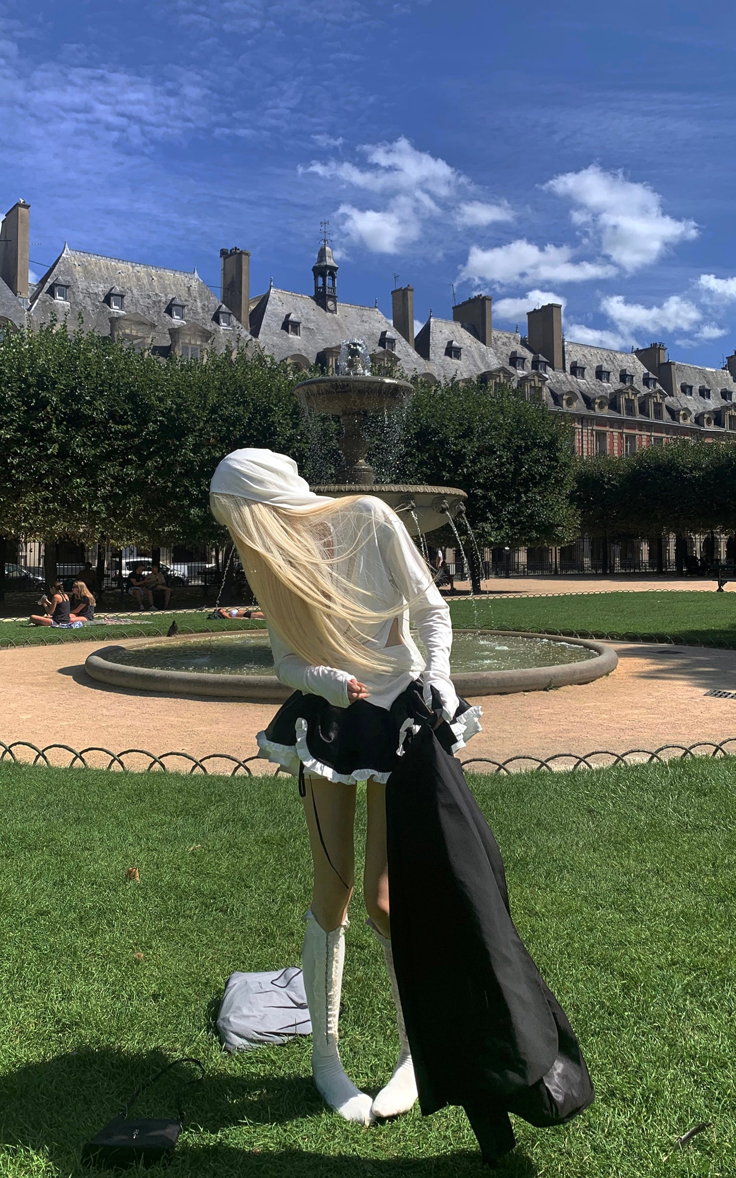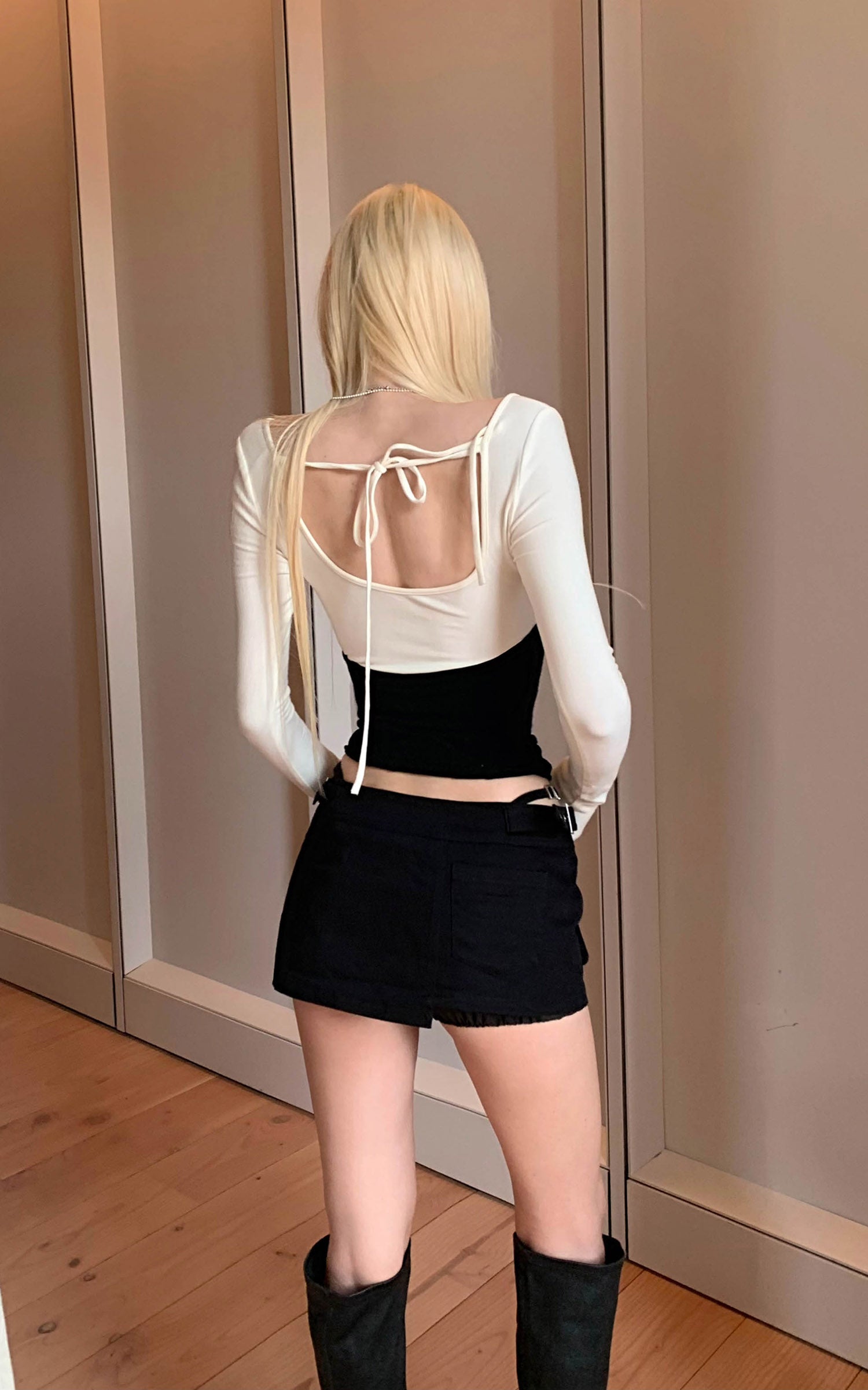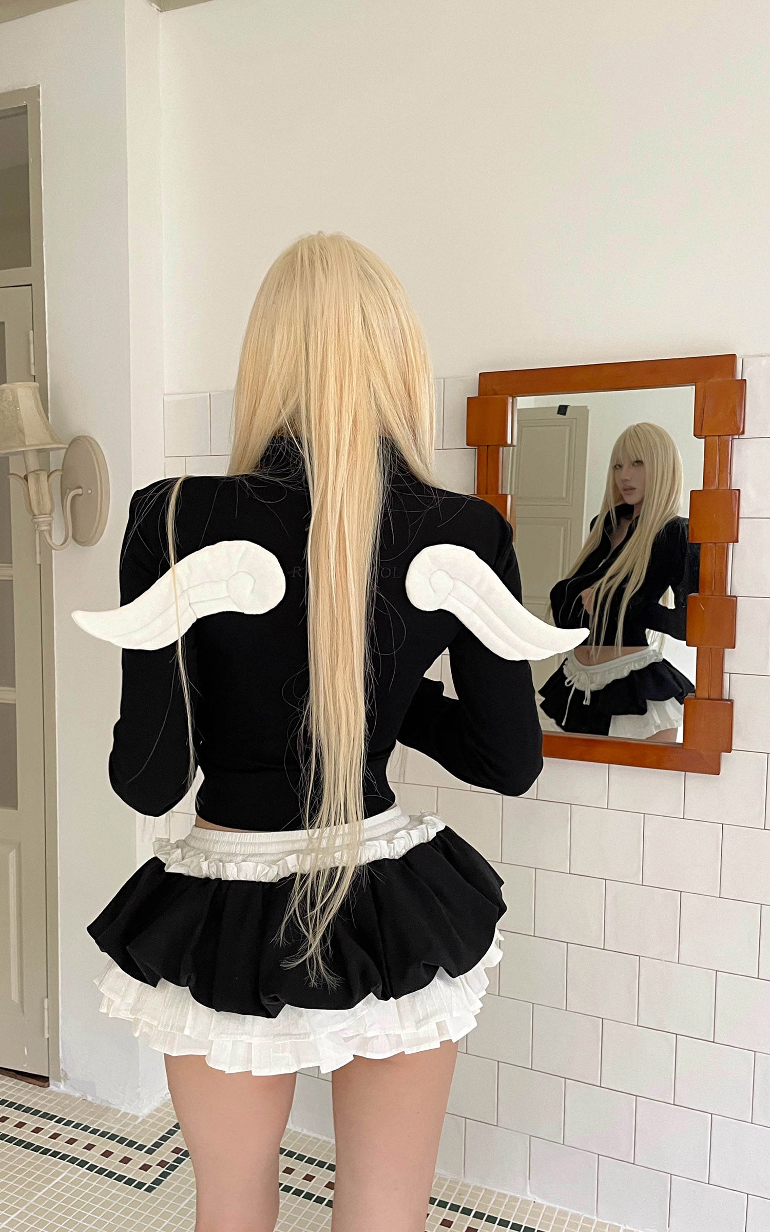 Rase le sol ブラック & ホワイトレイヤードミニスカート