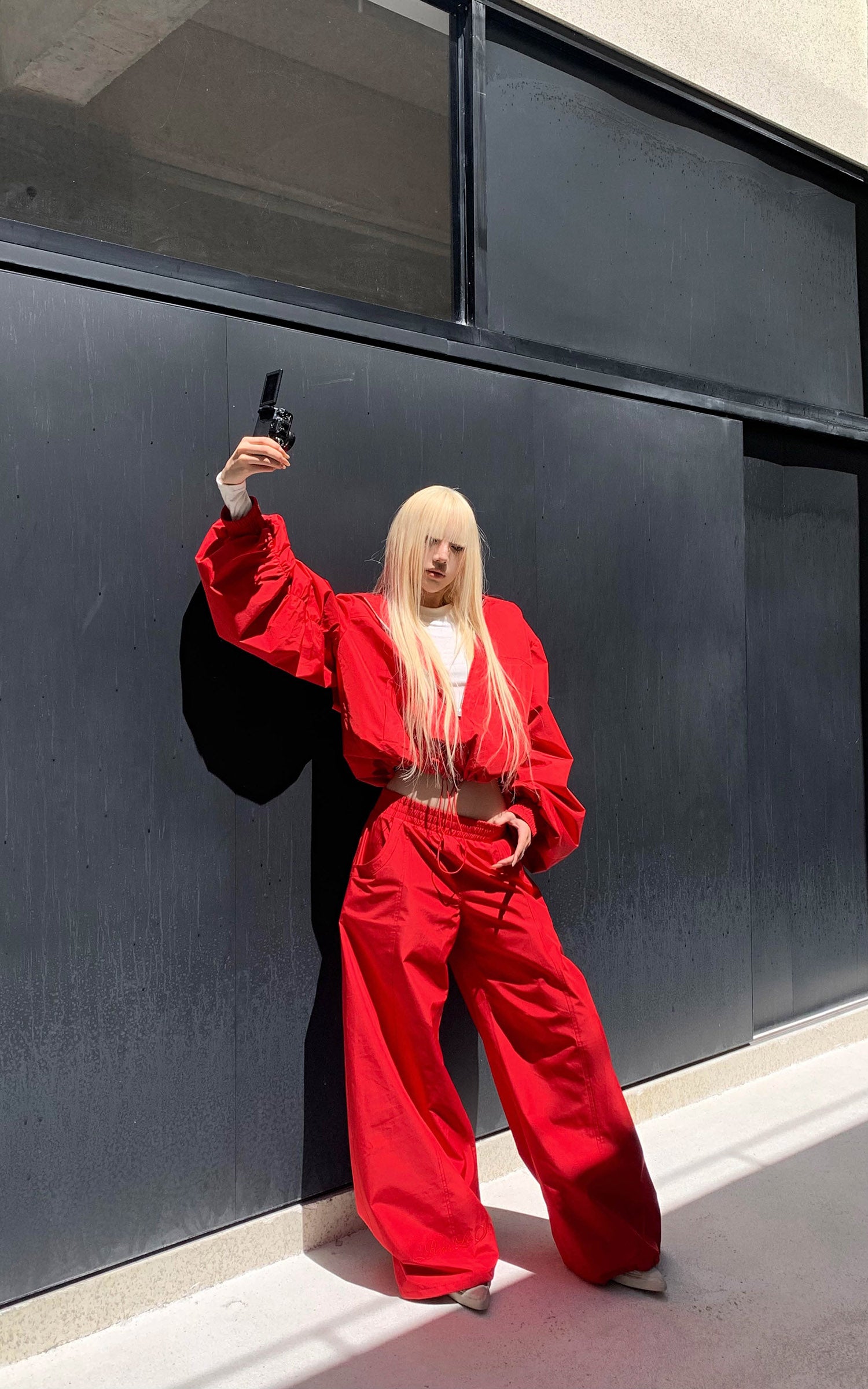 Rase le sol レッド刺繍ジップパーカー & ショーツセット