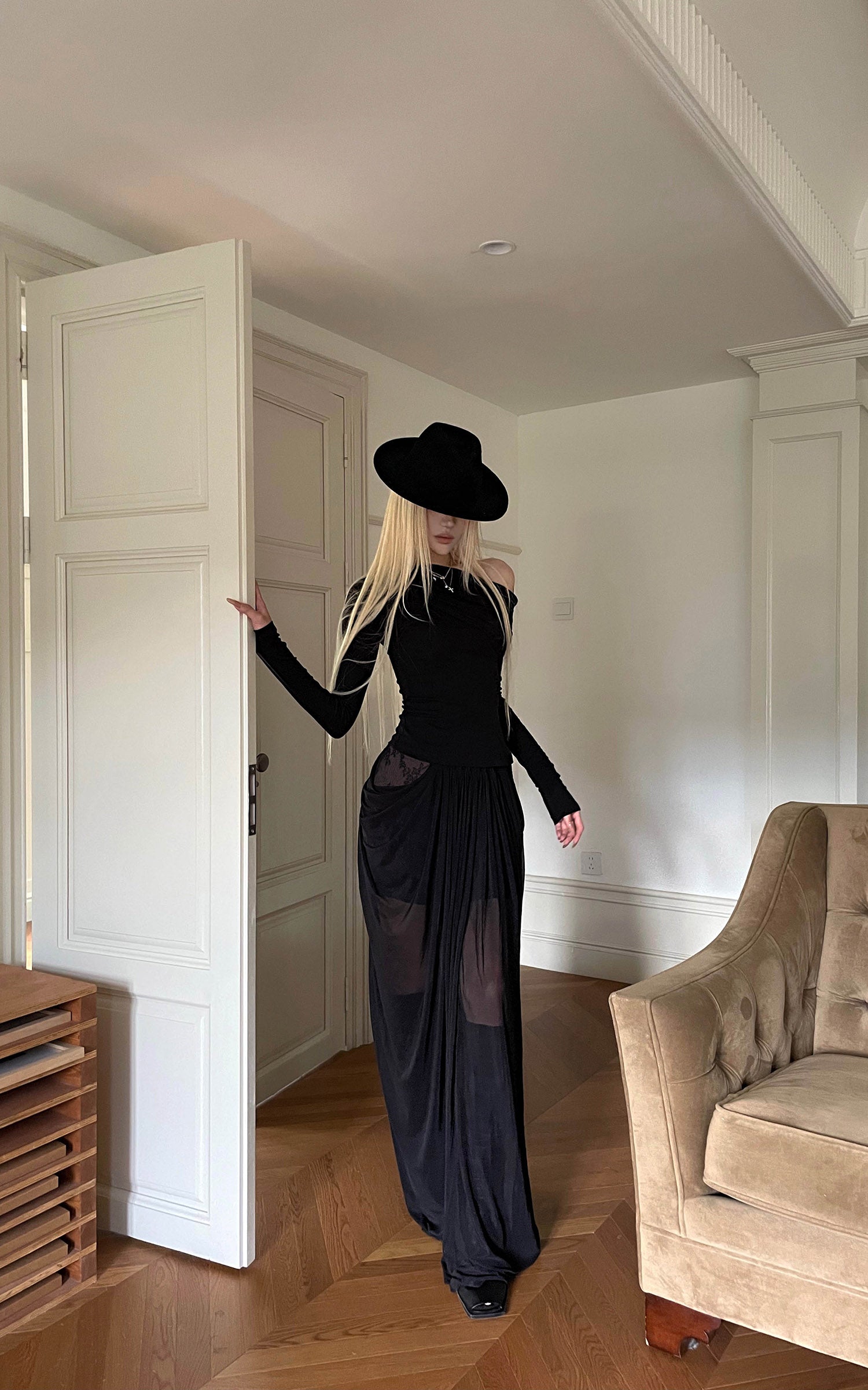 Rase le sol レースパネル付きドレープシアーメッシュスカート