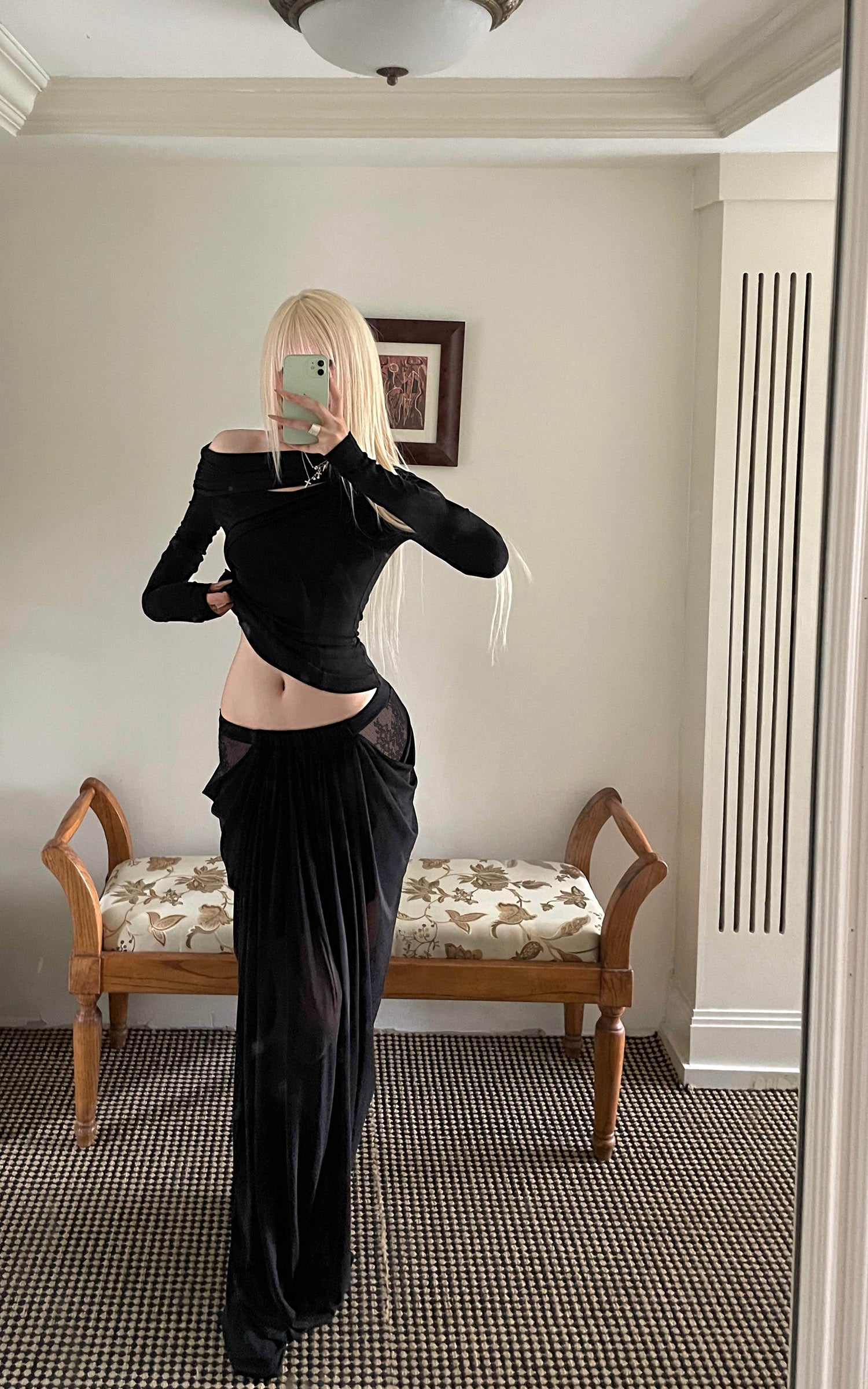 Rase le sol アシンメトリー ドレープ ワンショルダー 長袖トップス