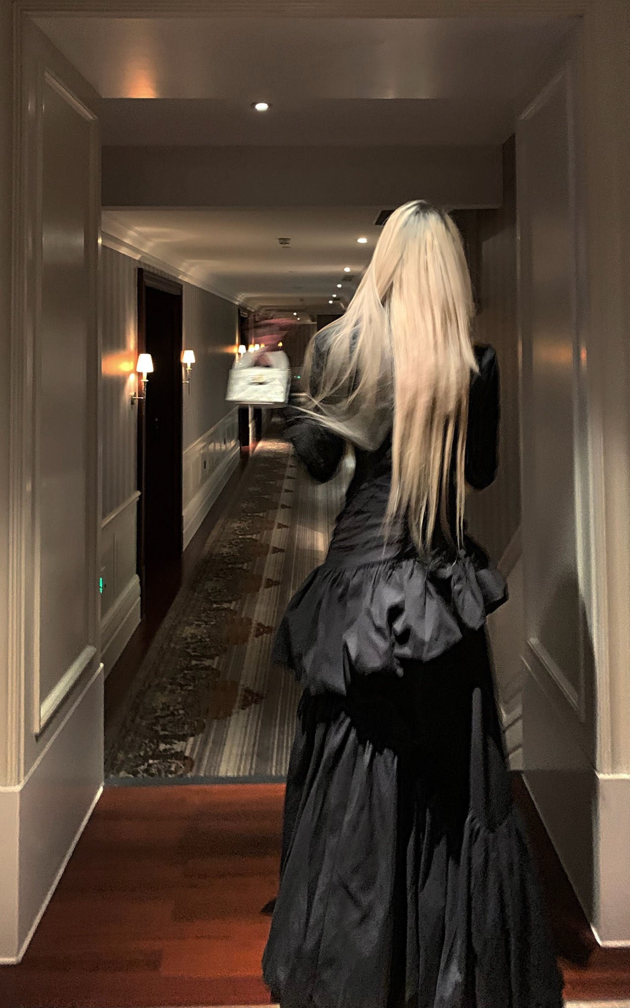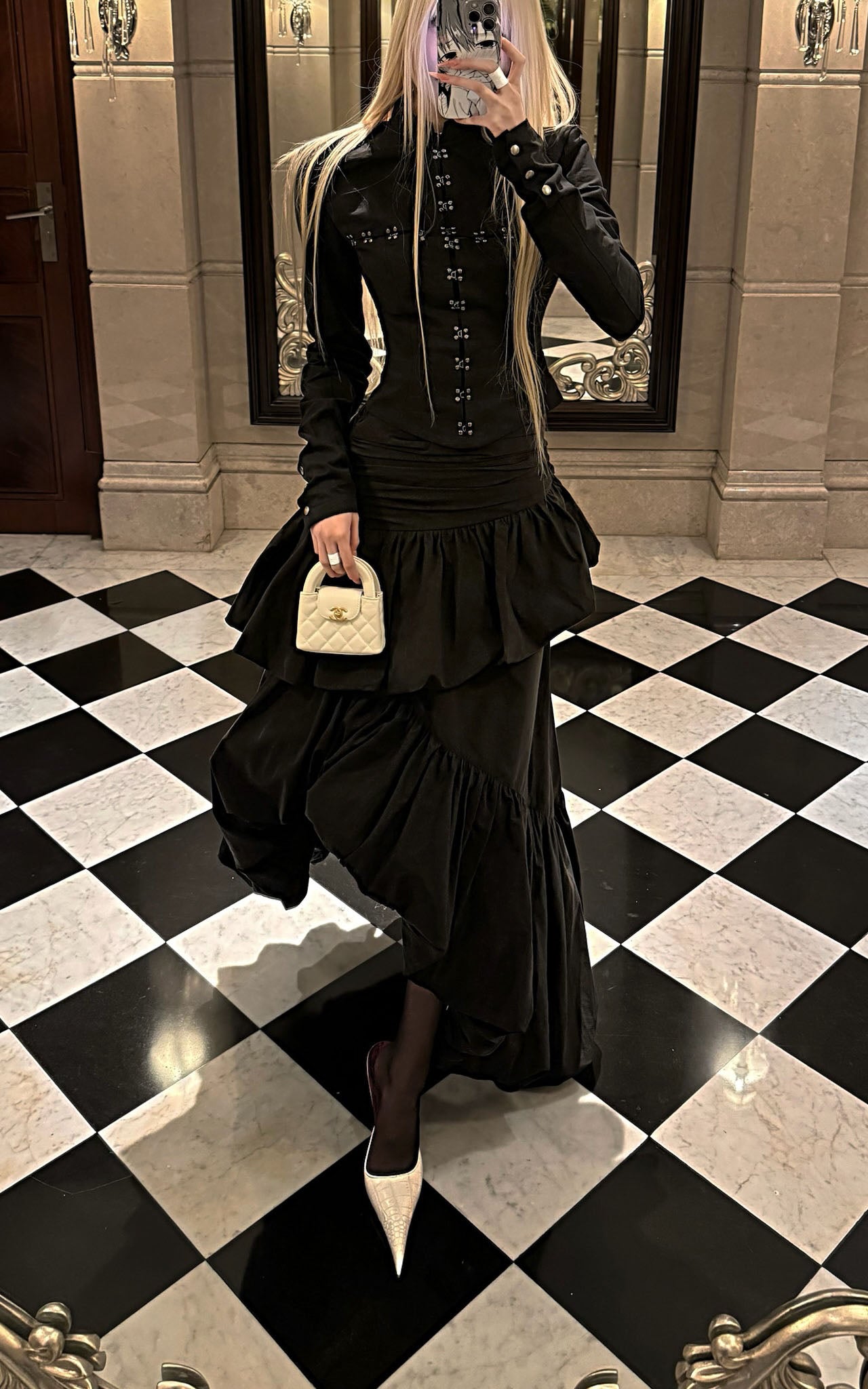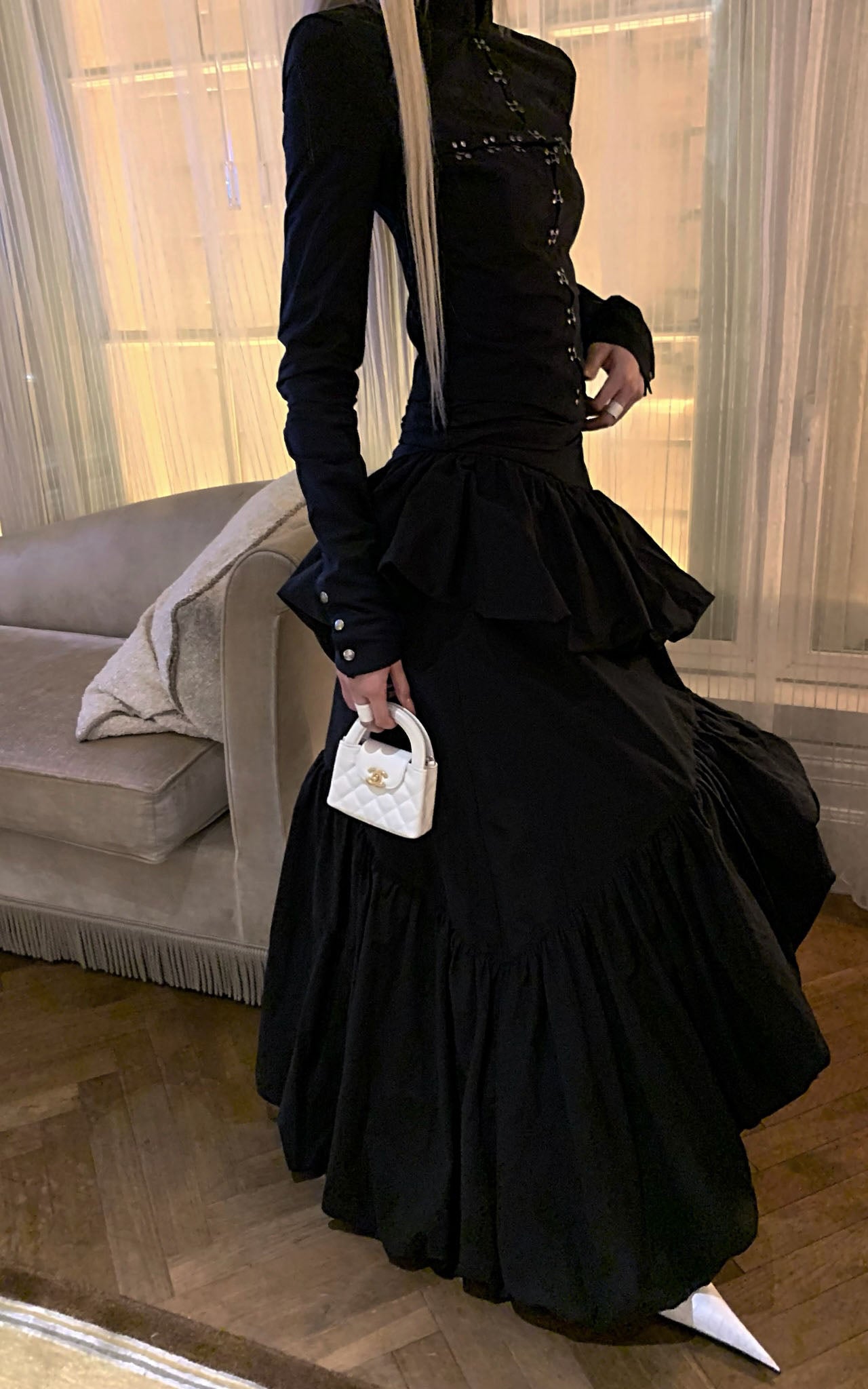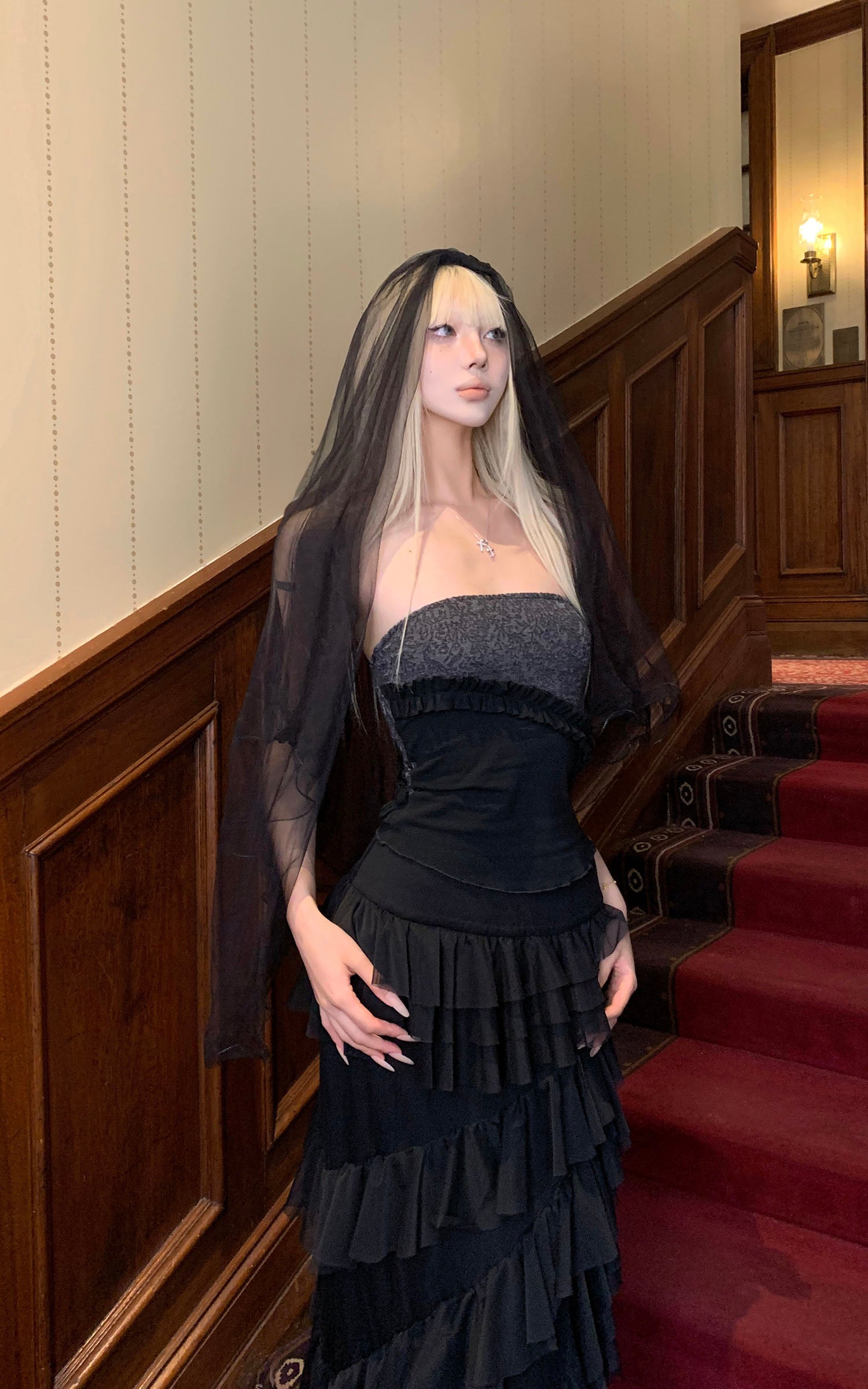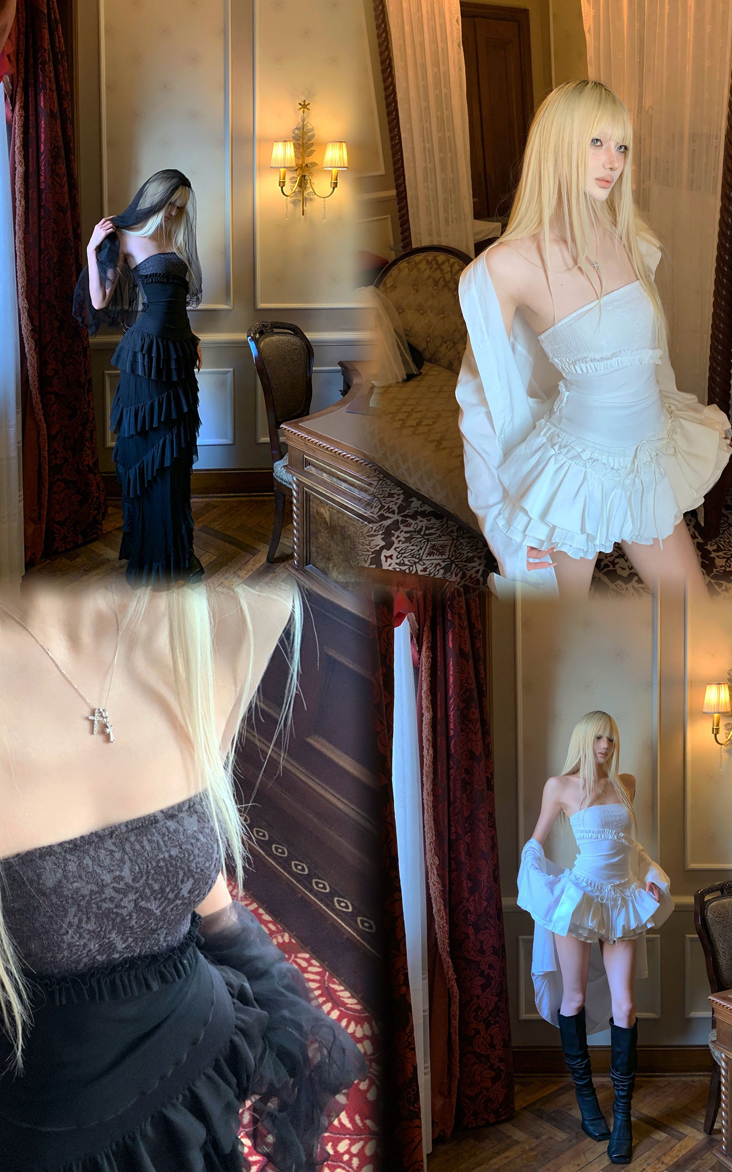 Rase le sol クロス刺繍とレースの裾が特徴のゴシックドレス