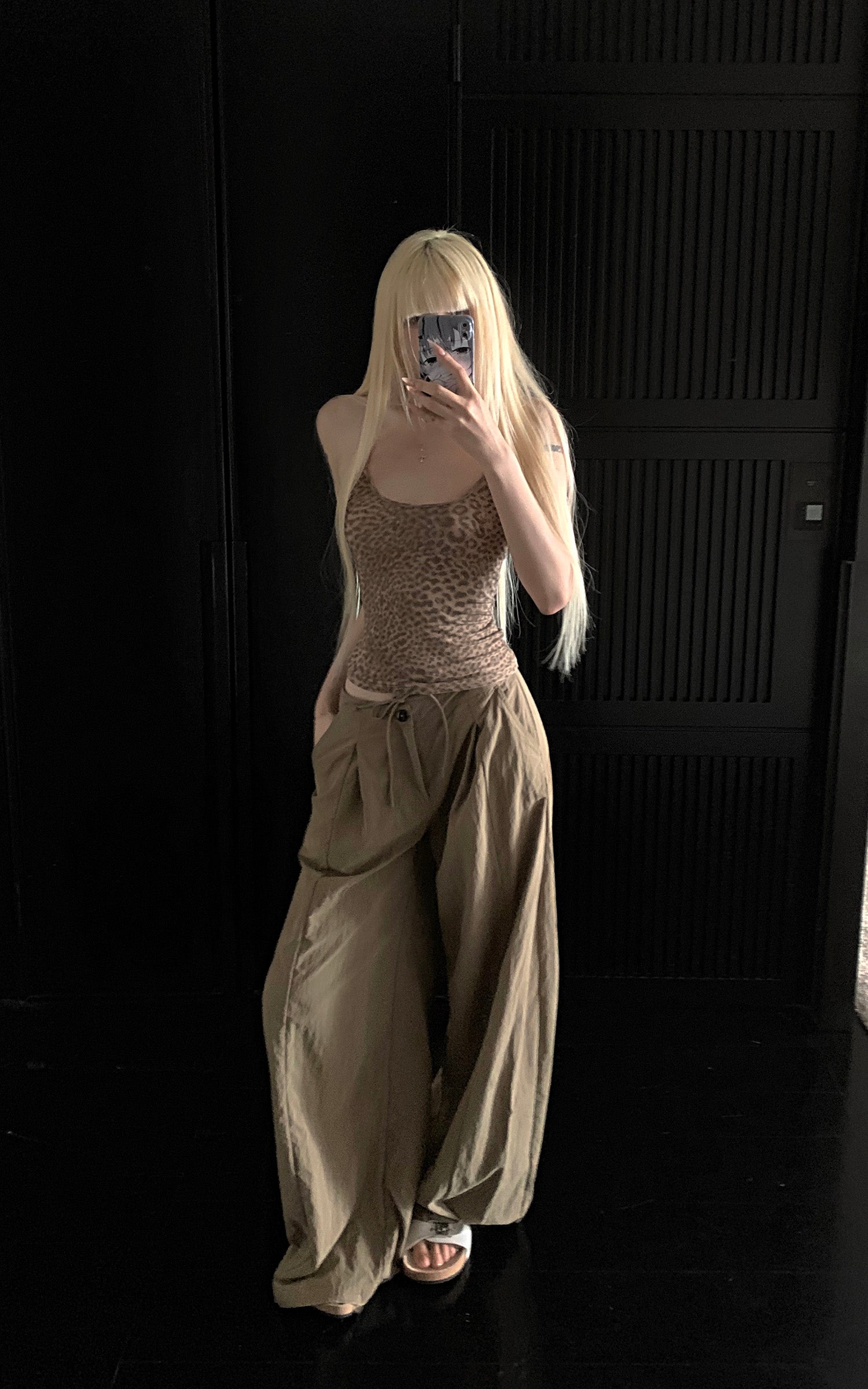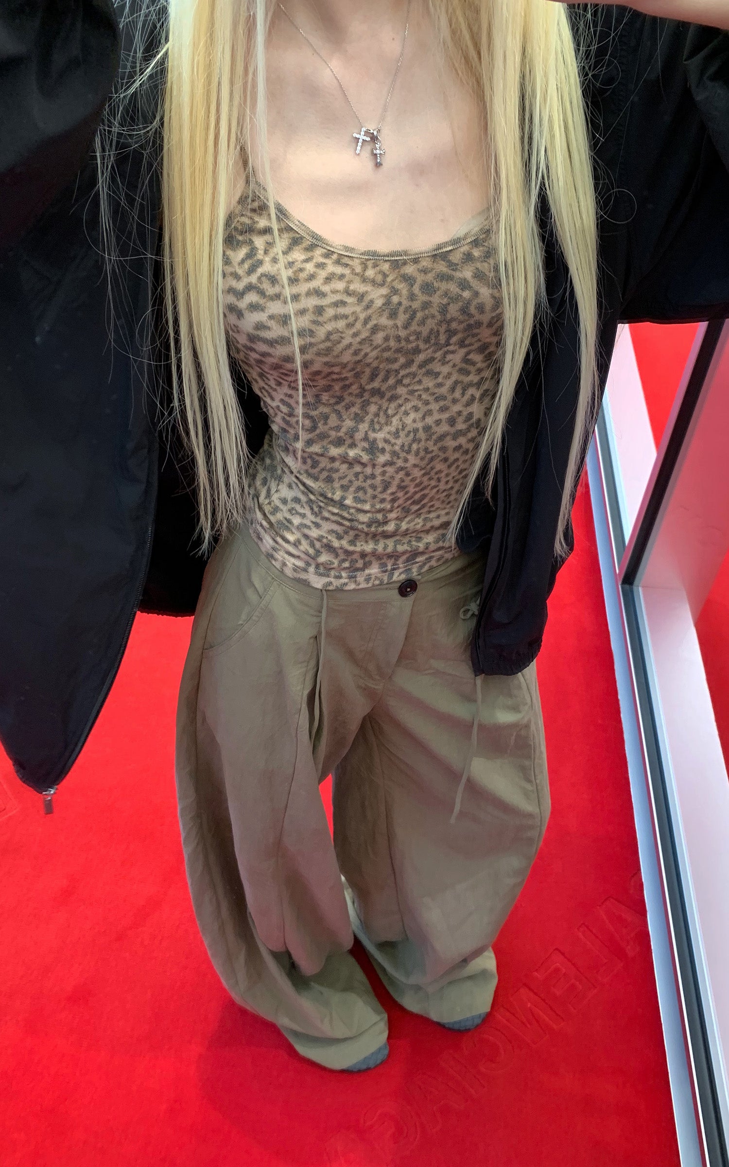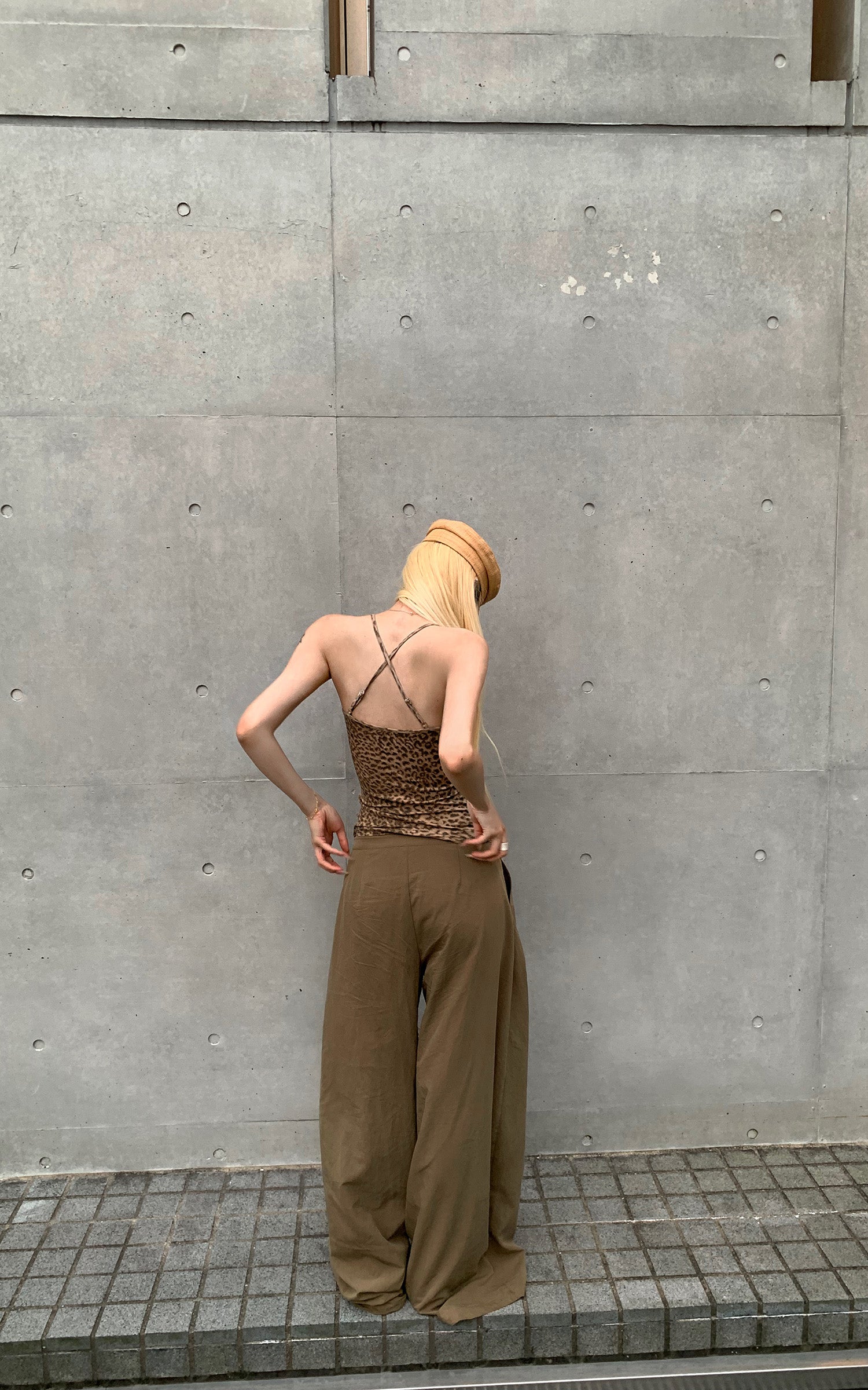 Rase le sol レオパード柄クロスストラップスリムキャミトップ