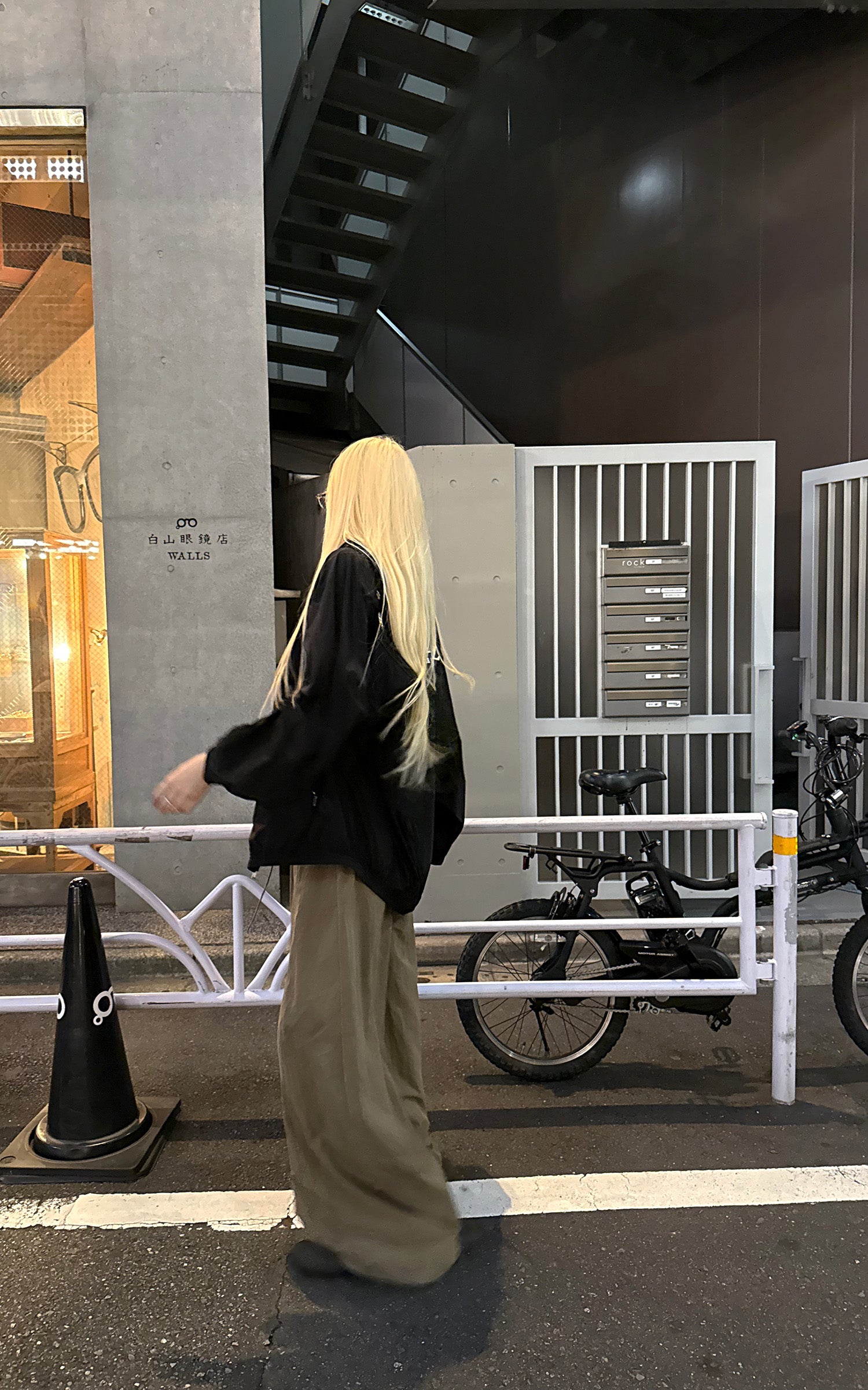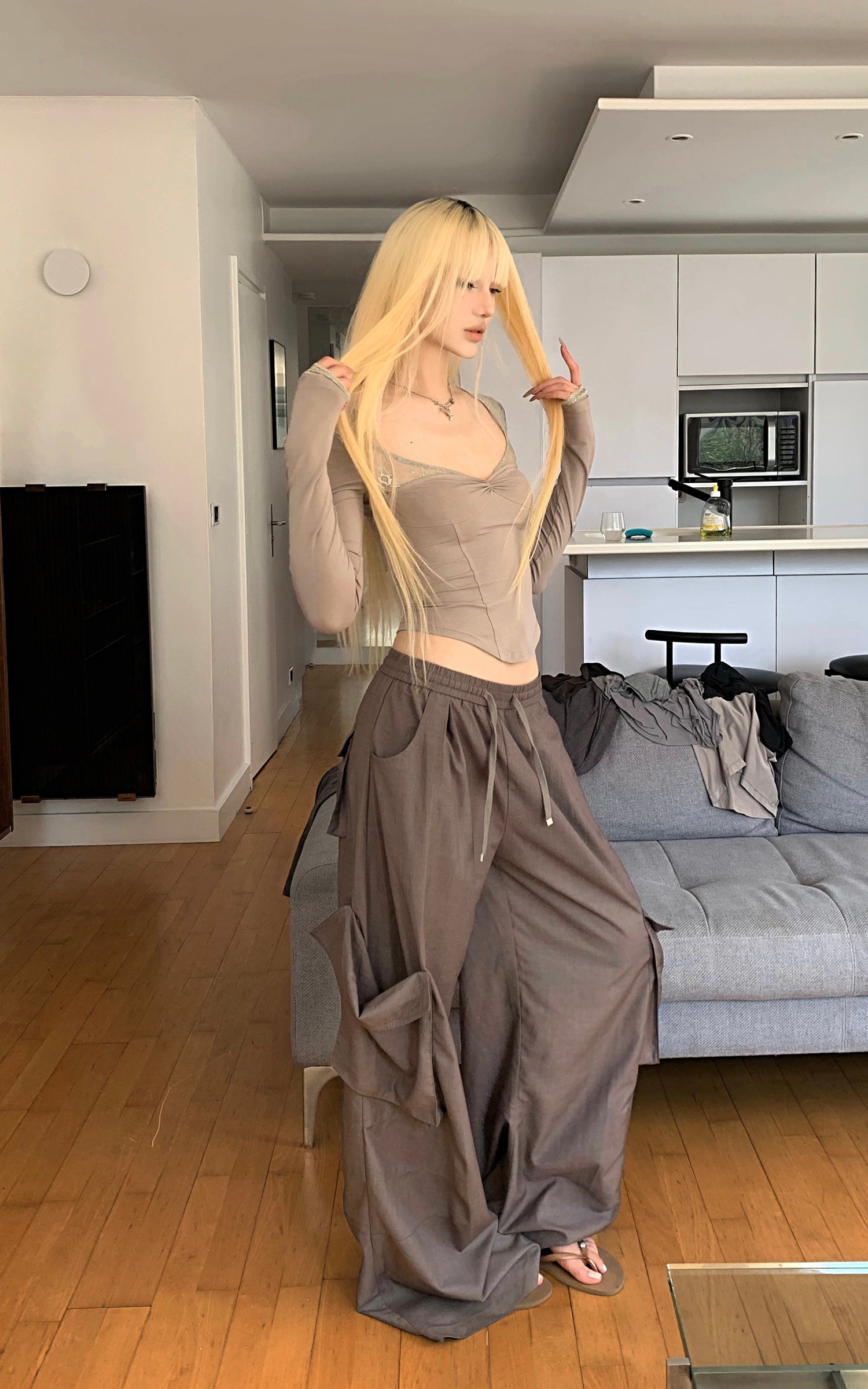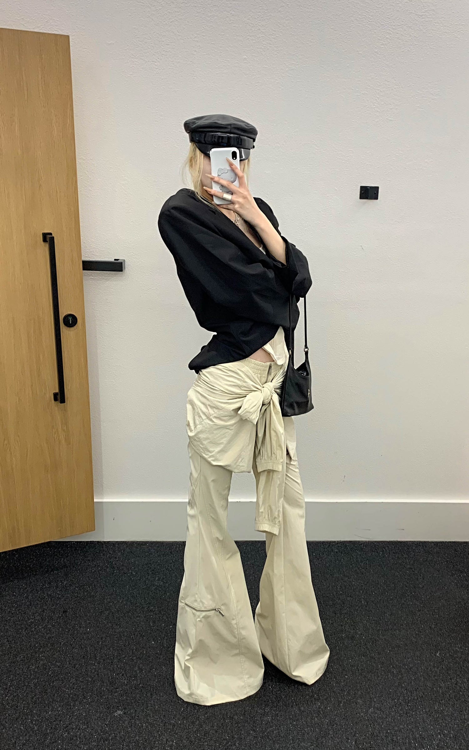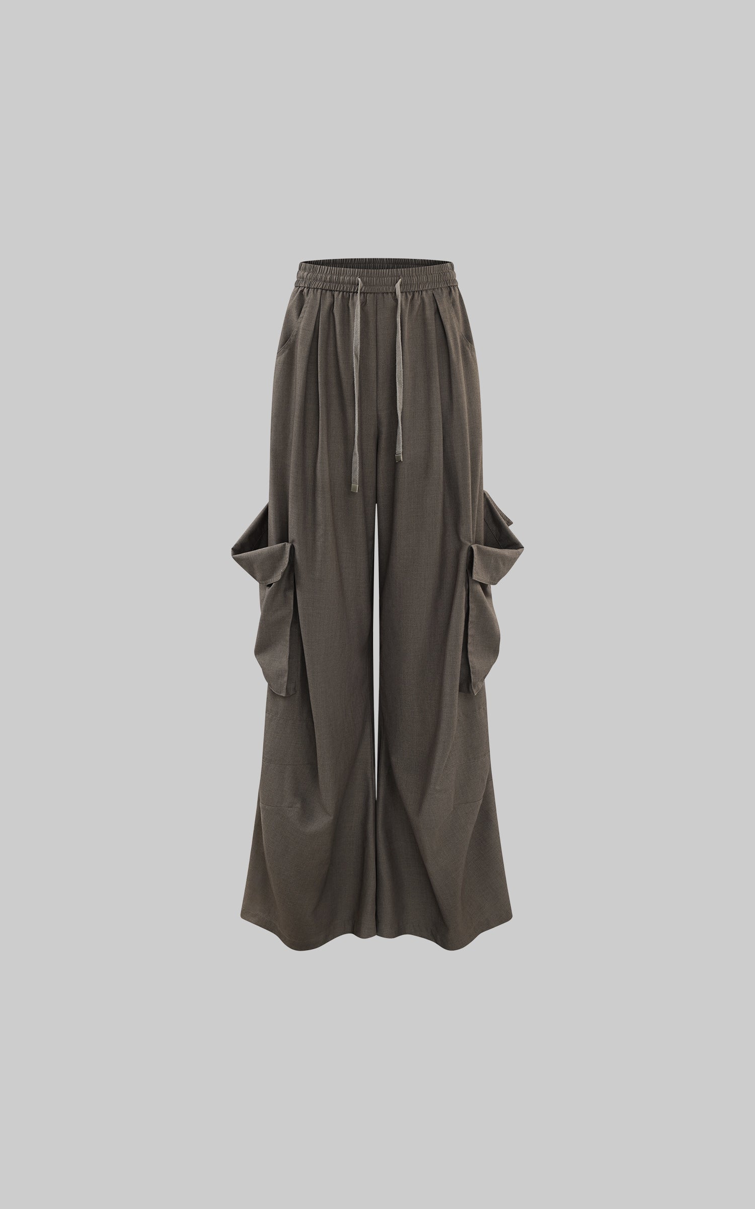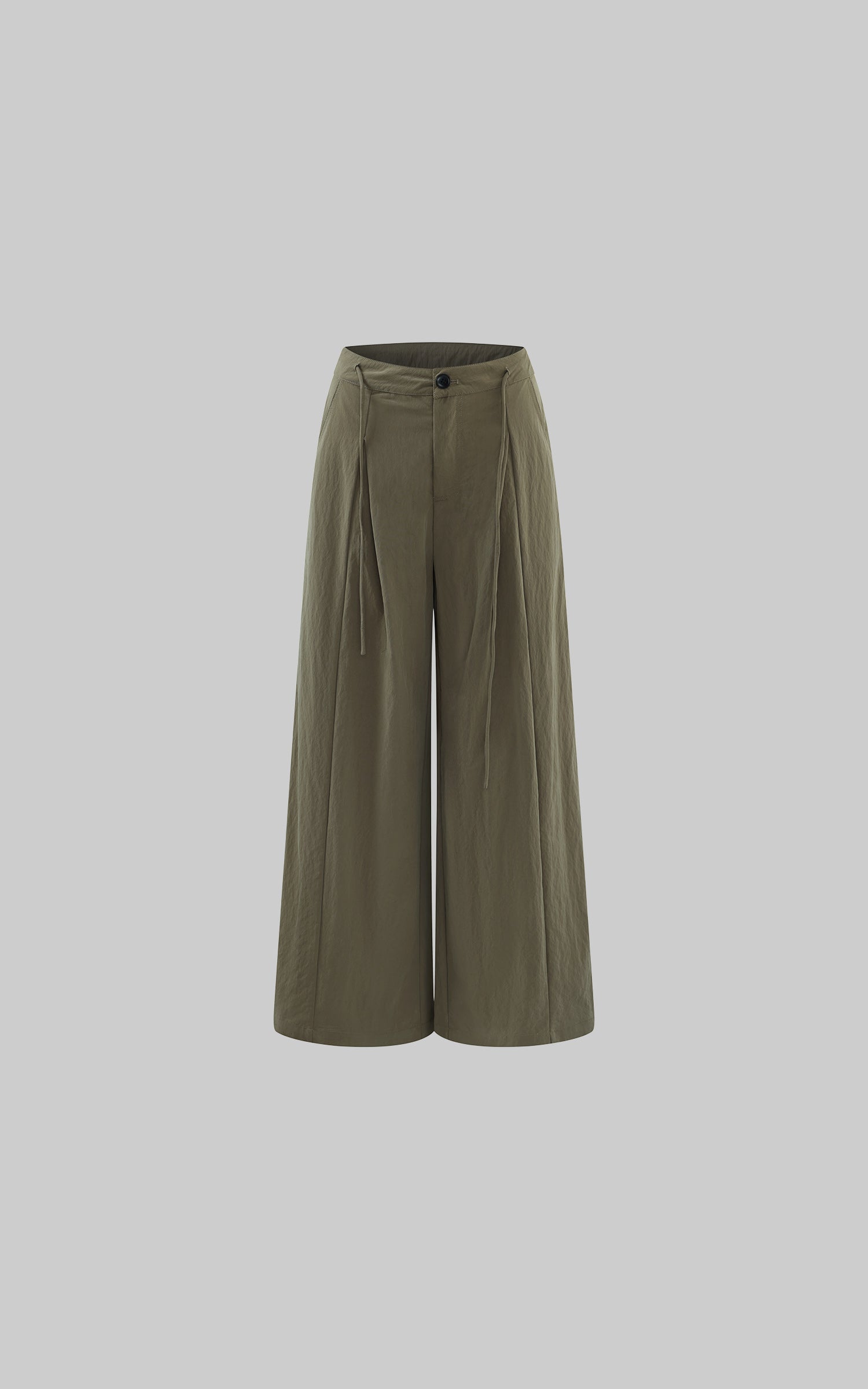 Rase le sol ドローストリング付きワイドレッグハイウエストフルイドパンツ
