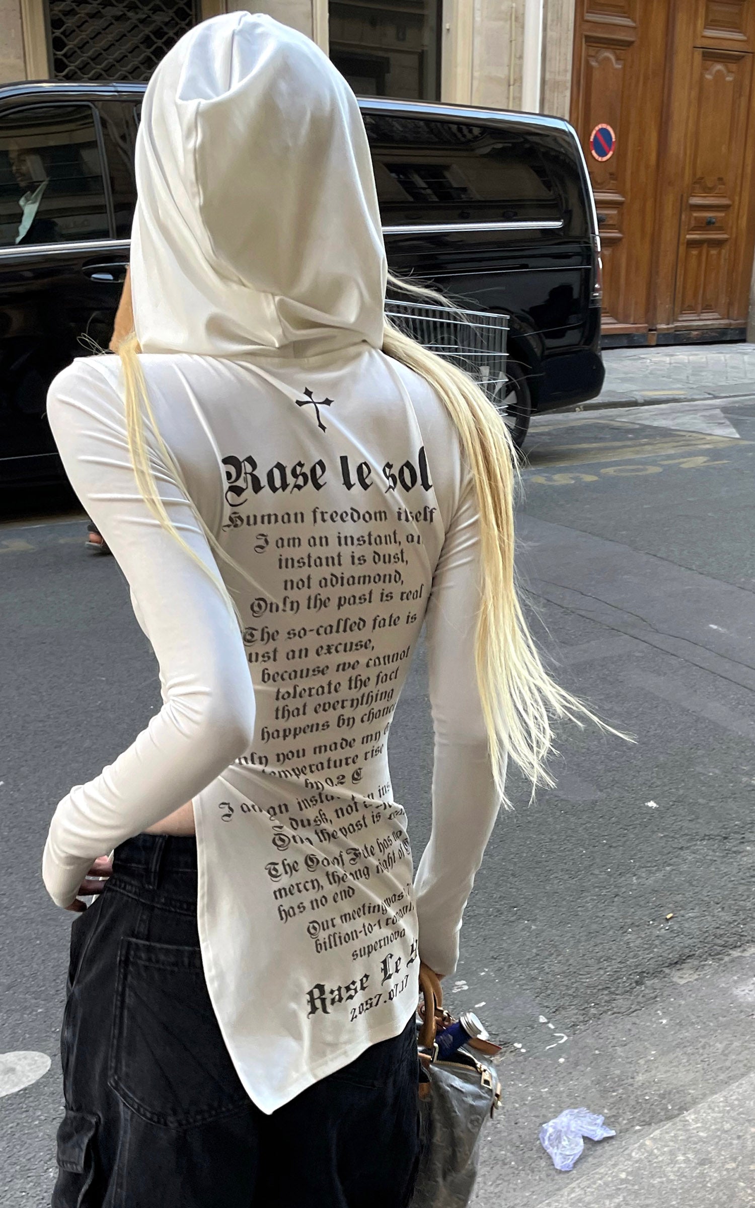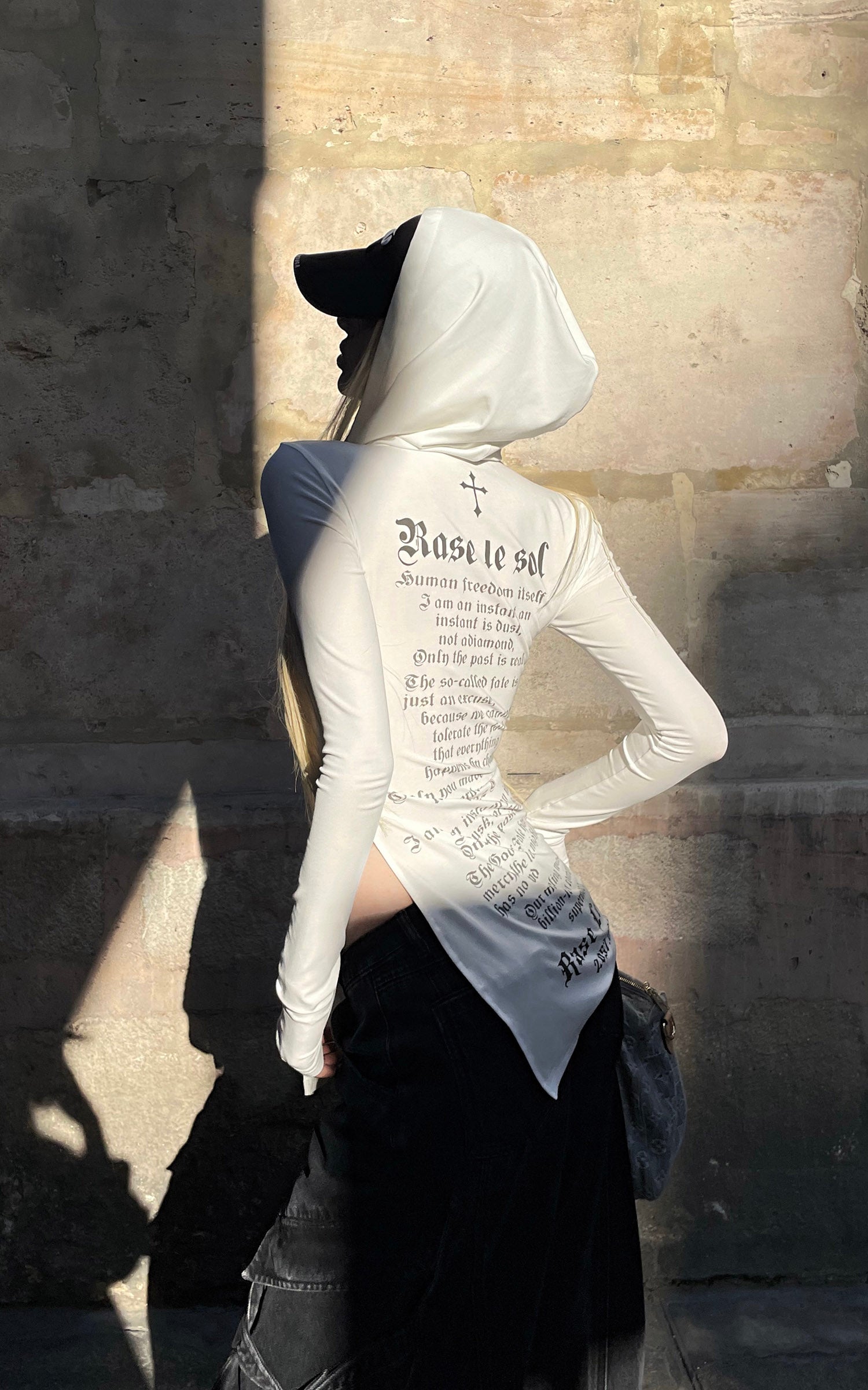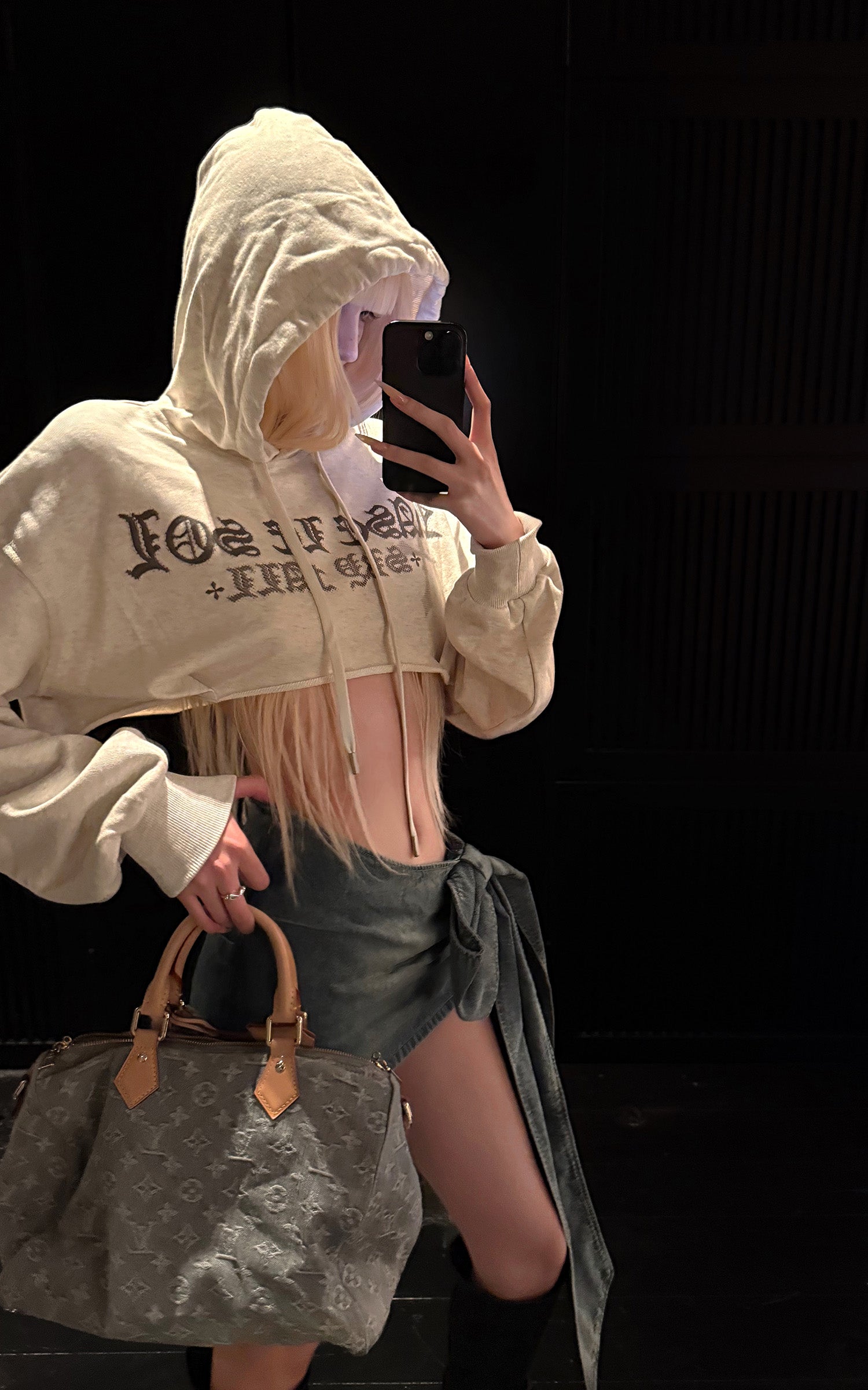 Rase le sol ゴシック刺繍入りクロップドフーディー(ラフエッジ仕上げ)