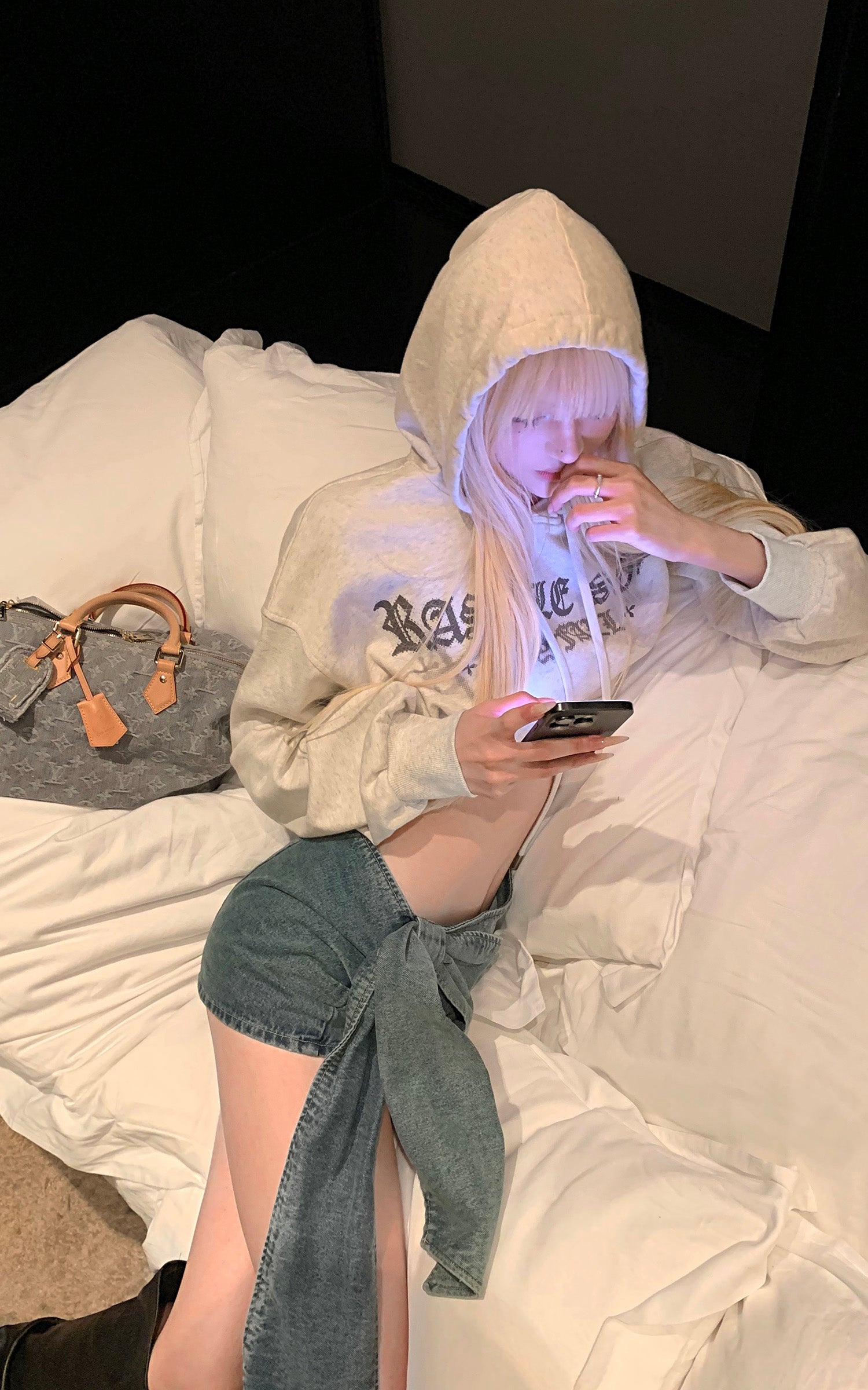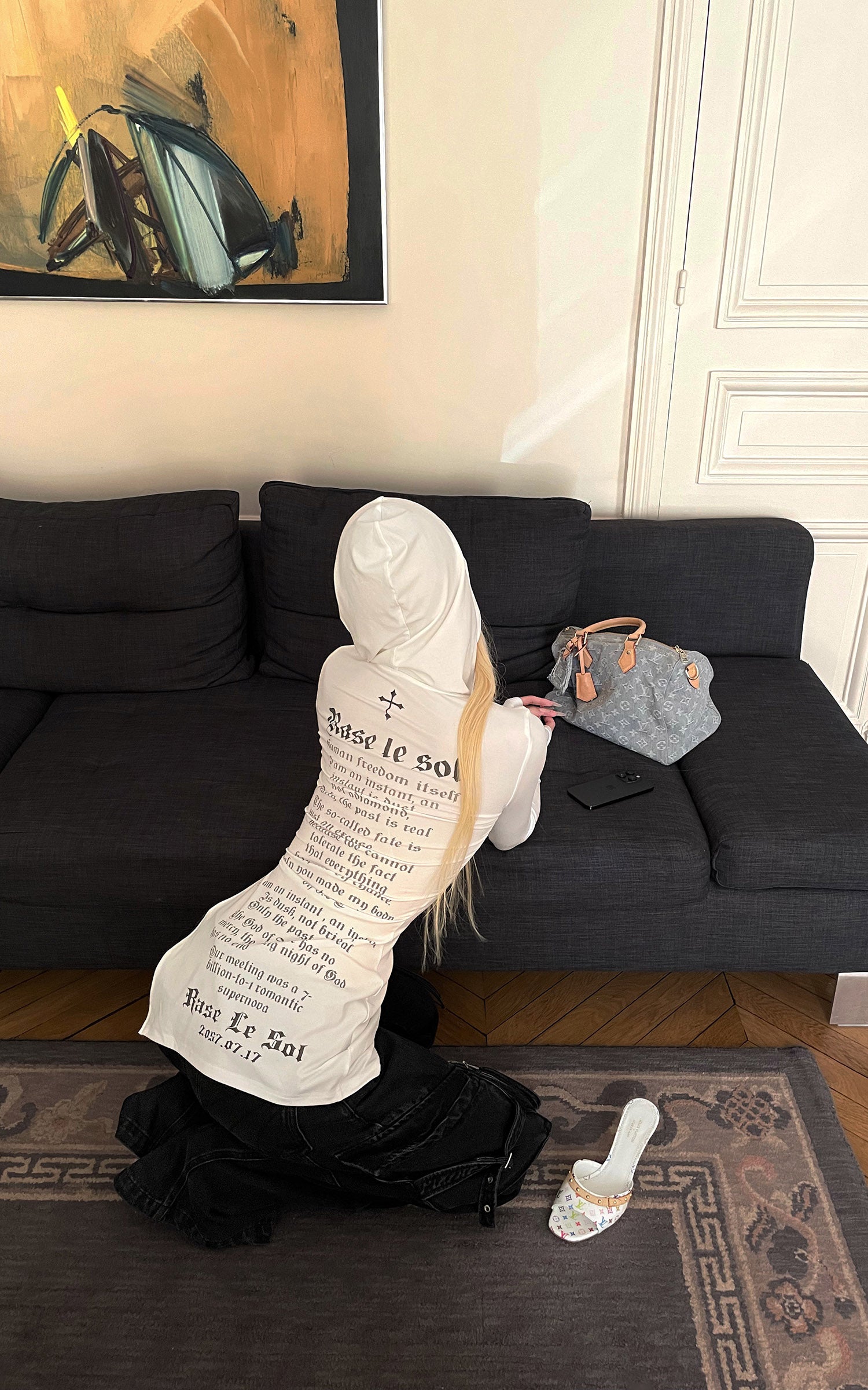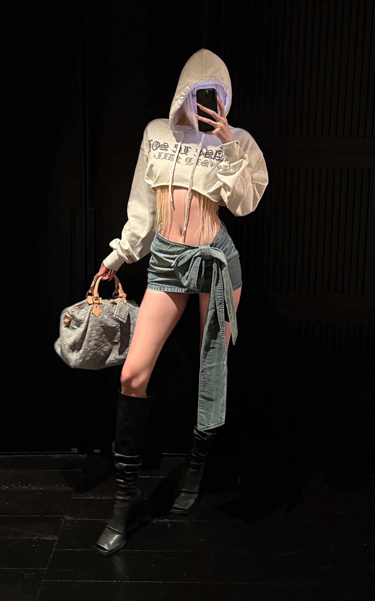 Rase le sol ゴシック刺繍入りクロップドフーディー(ラフエッジ仕上げ)