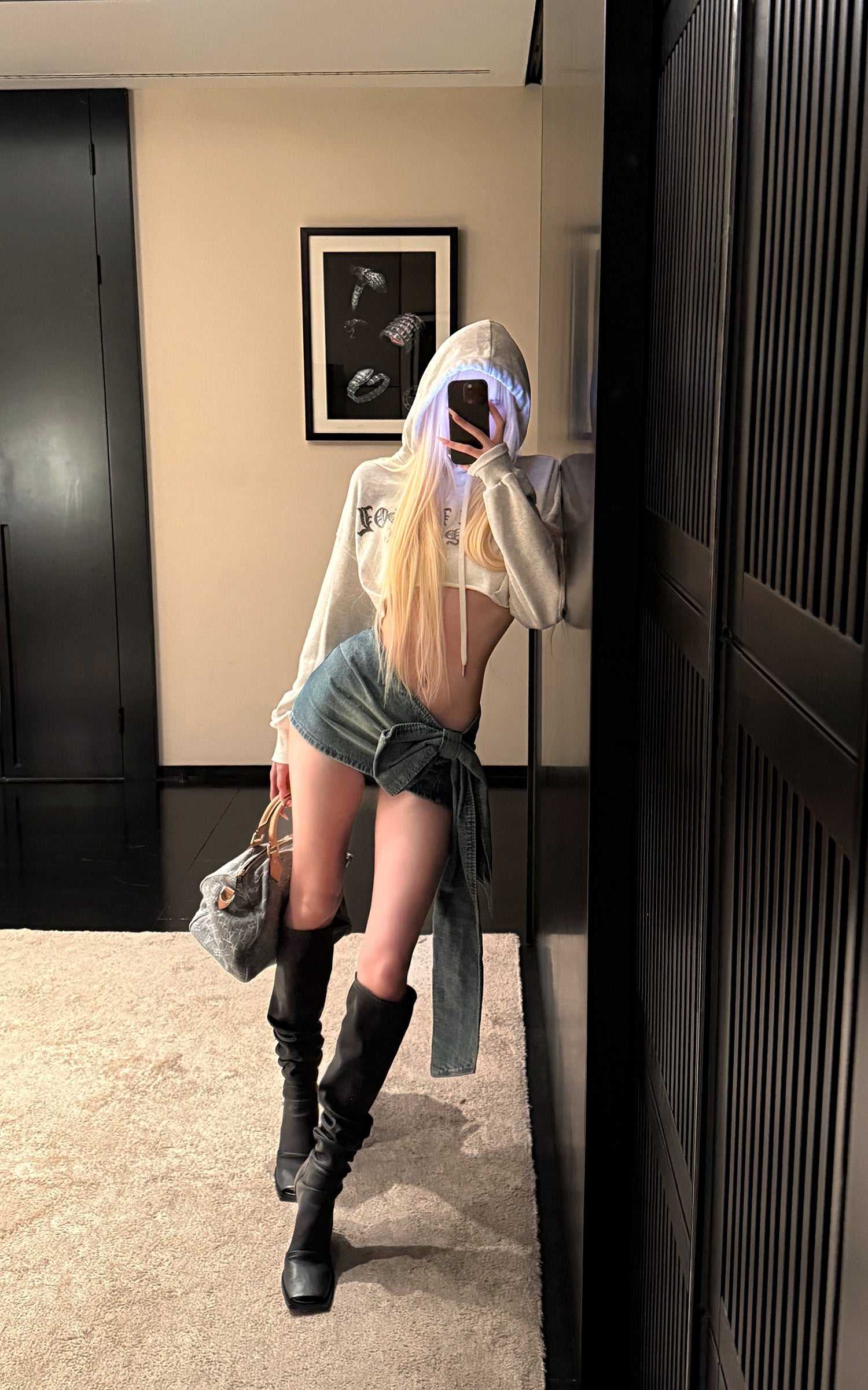 Rase le sol アシンメトリータイフロントデニムミニスカート