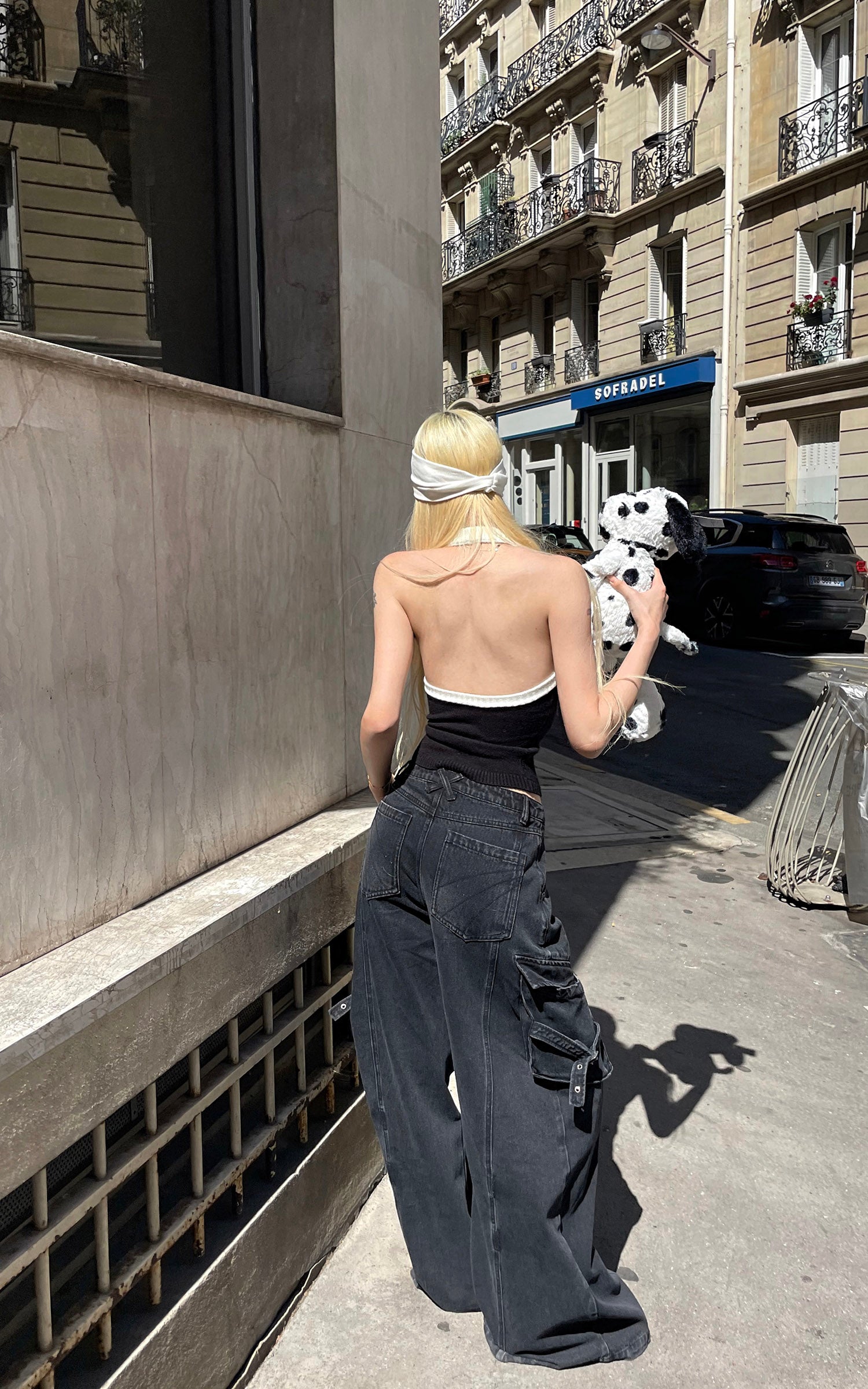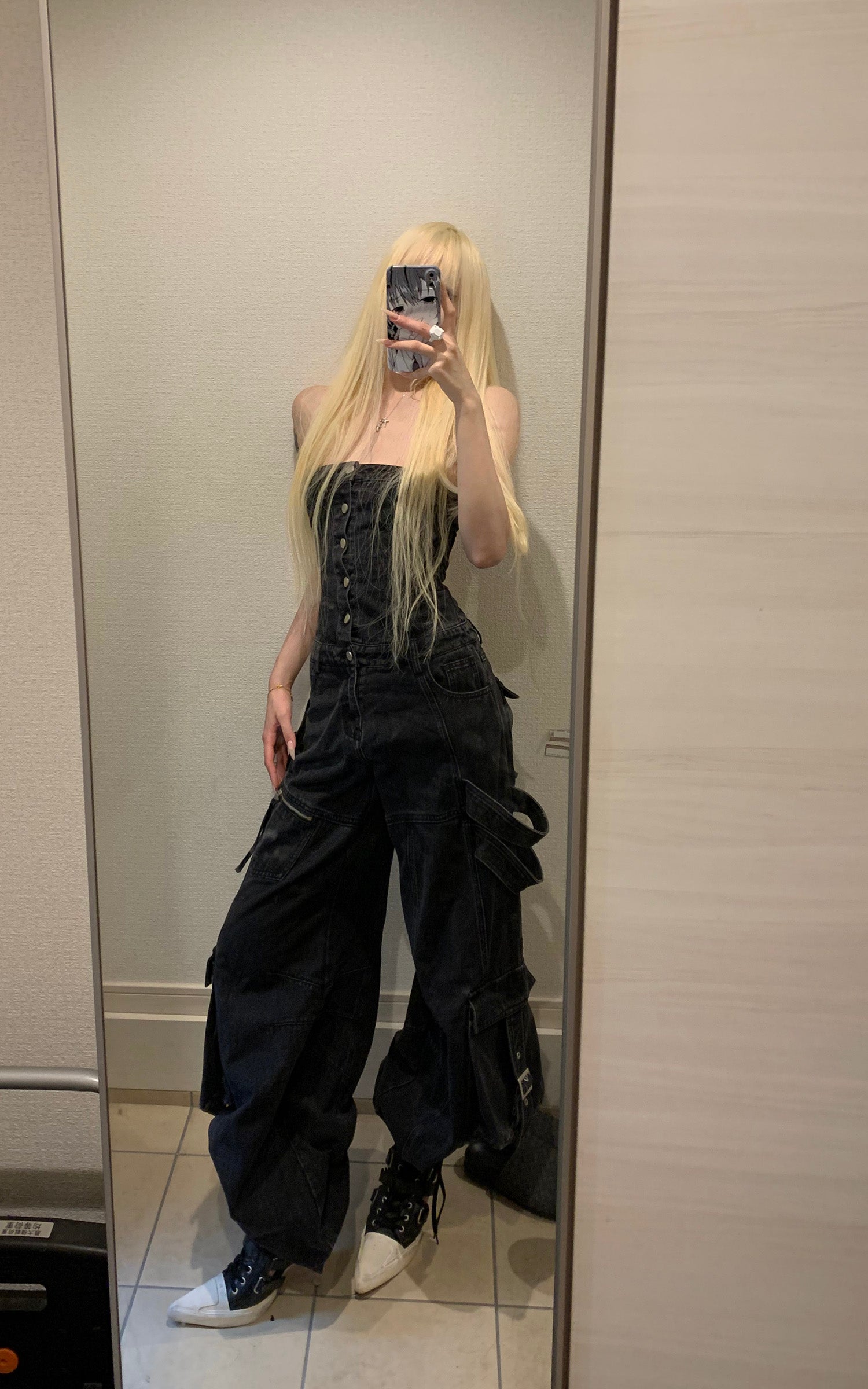 Rase le sol ブラック構造カーゴジャンプスーツ
