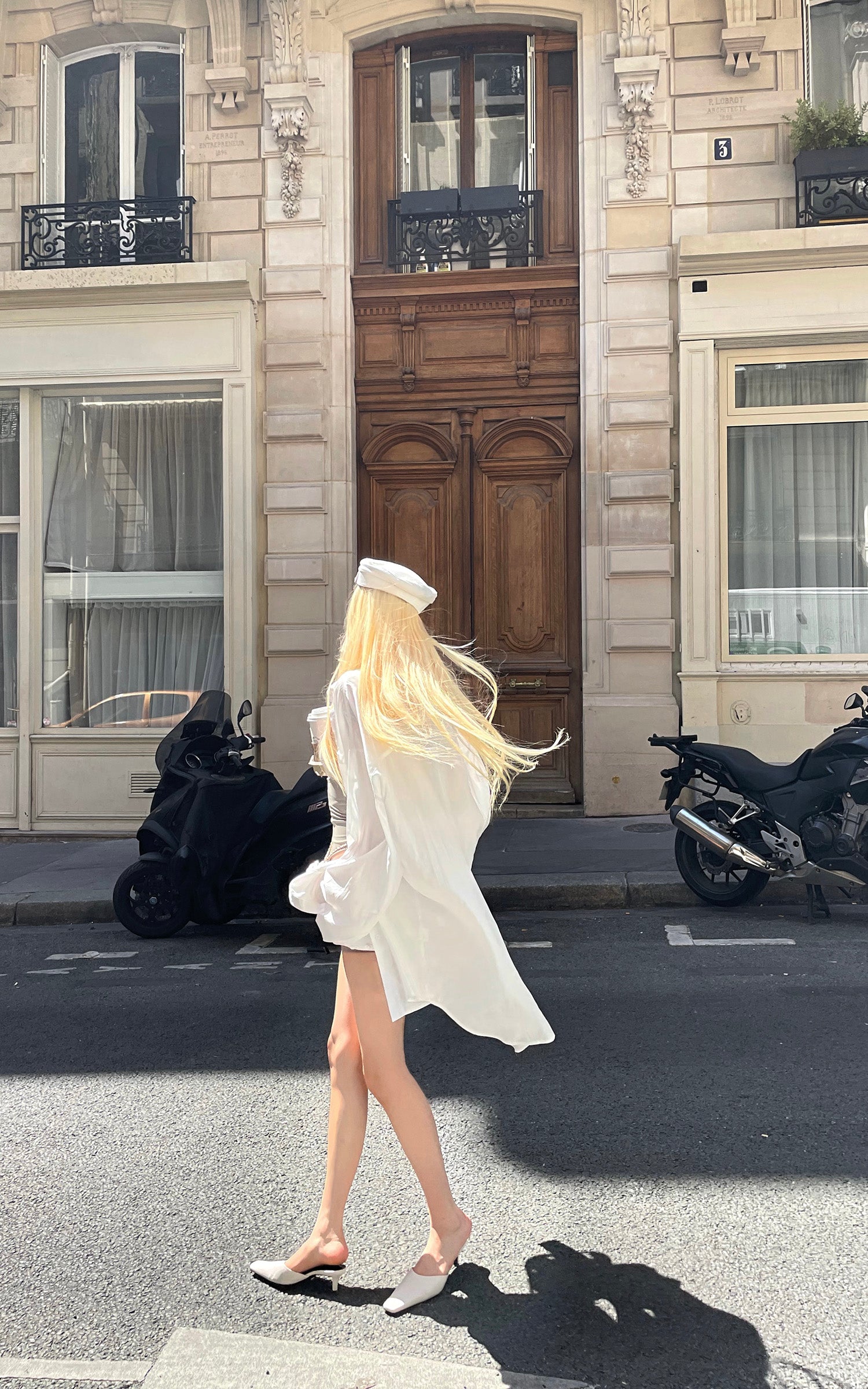 Rase le sol ドロップショルダー&ロングカフス付きオーバーサイズ刺繍シャツ