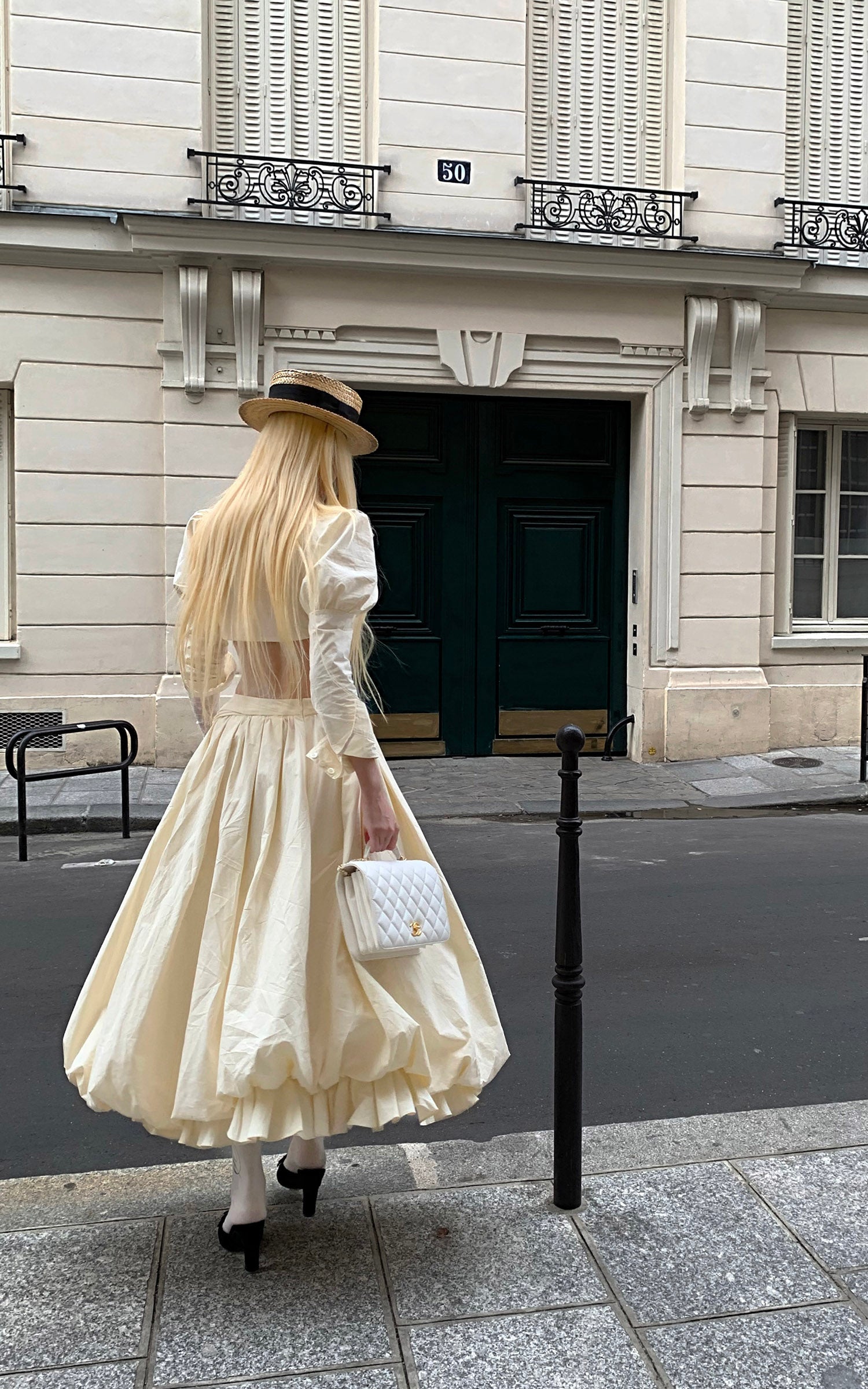 Rase le sol パフスリーブとウエスト絞りのチェックコルセットドレス