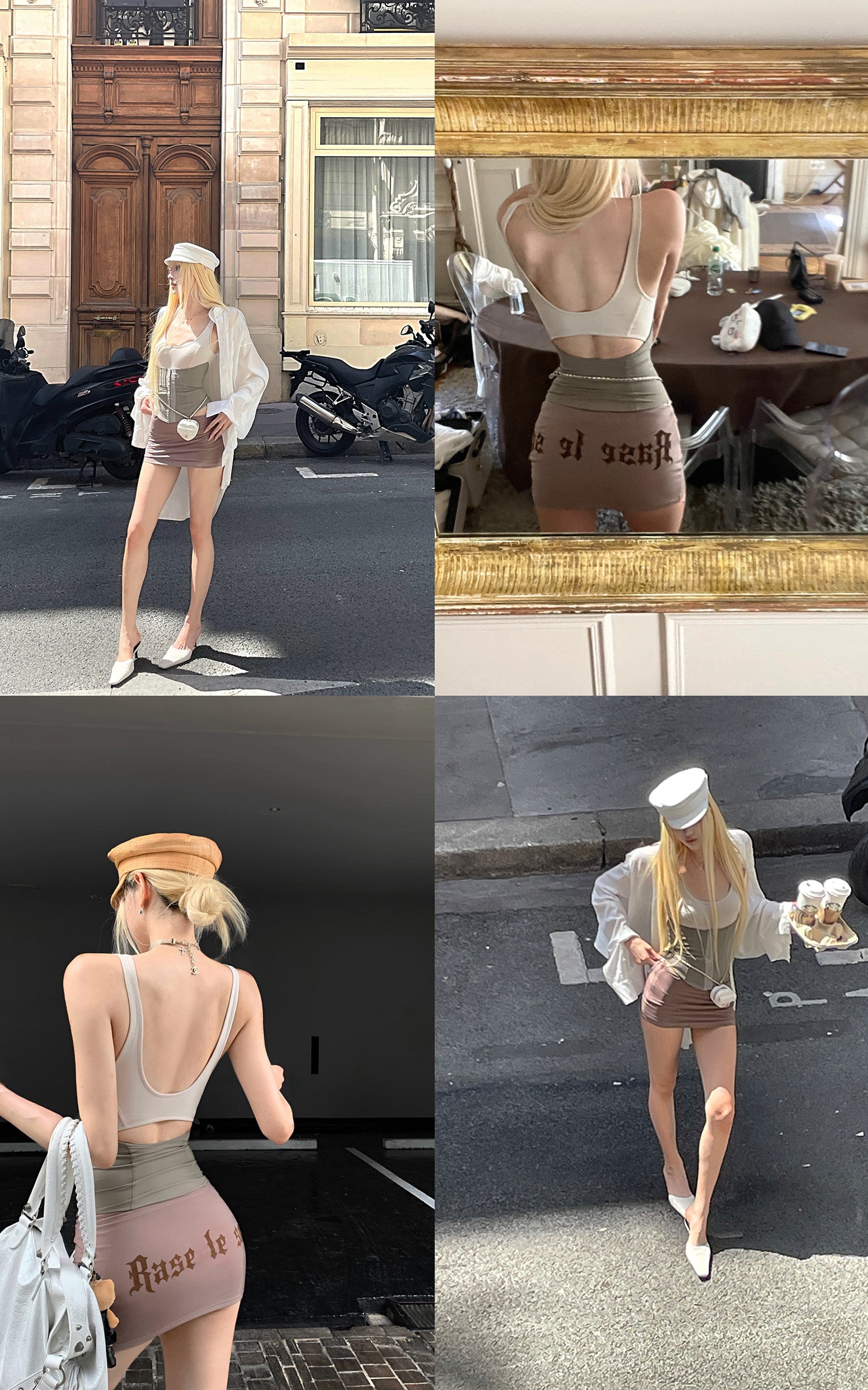 Rase le sol ロゴプリント入りマットストレッチローライズミニスカート