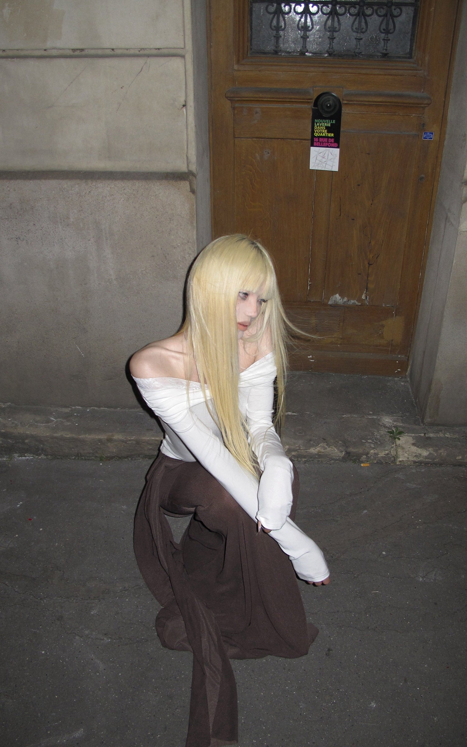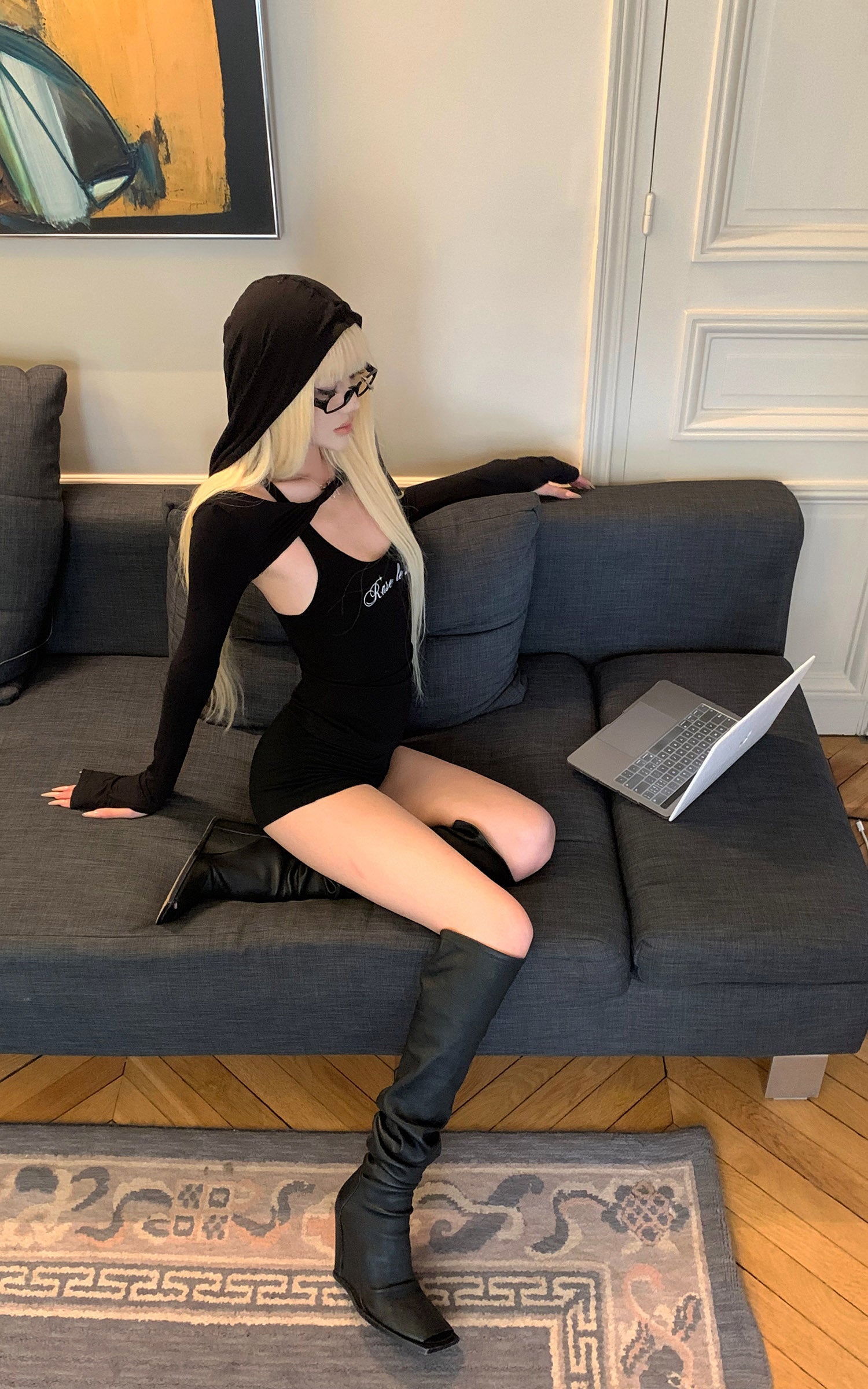 Rase le sol カットアウトネックライン カーブヘム 長袖トップス