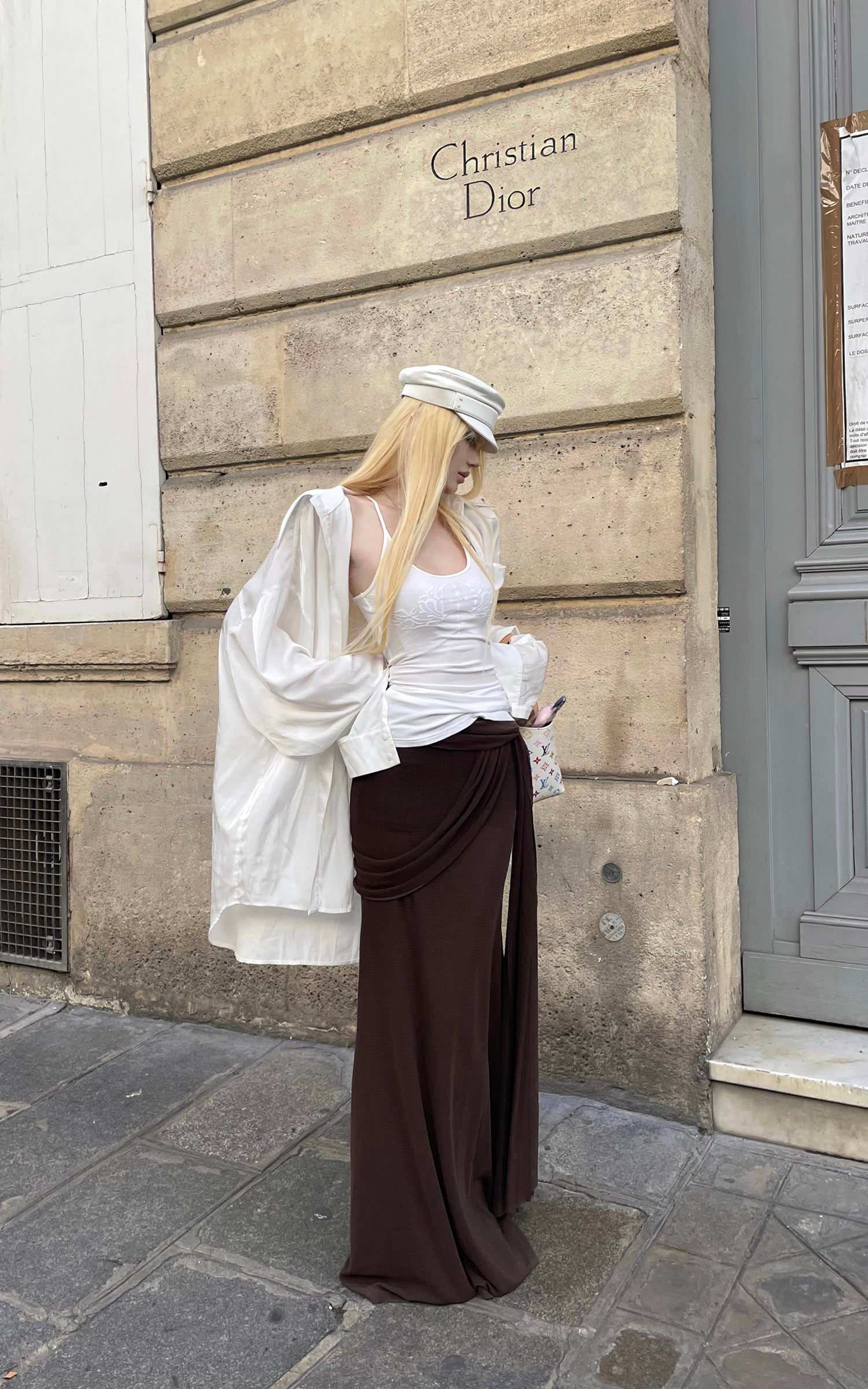 Rase le sol ラップディテール付きドレープニットマキシスカート
