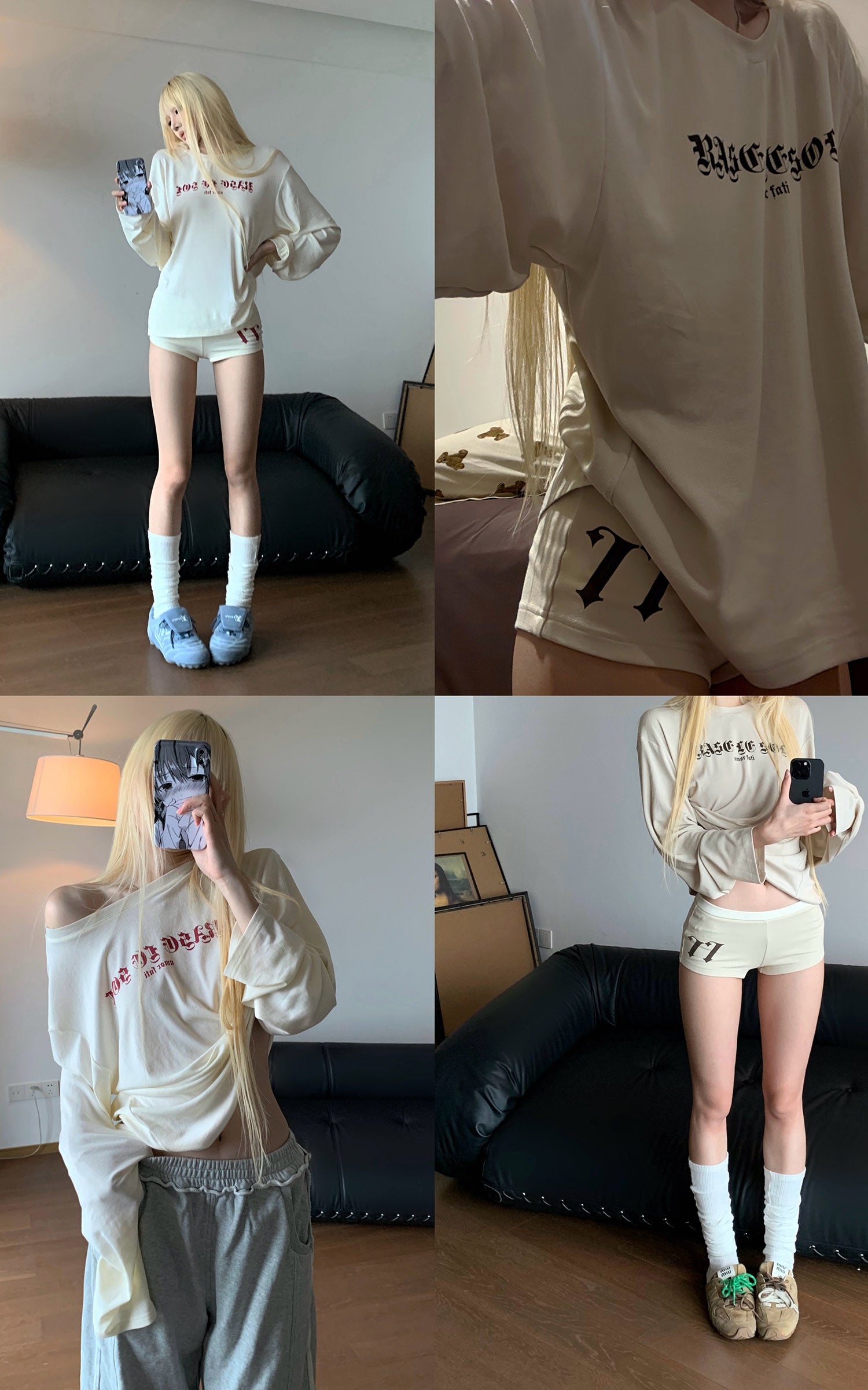 Rase le sol モックネックグラフィックTシャツ&フィットショーツセット