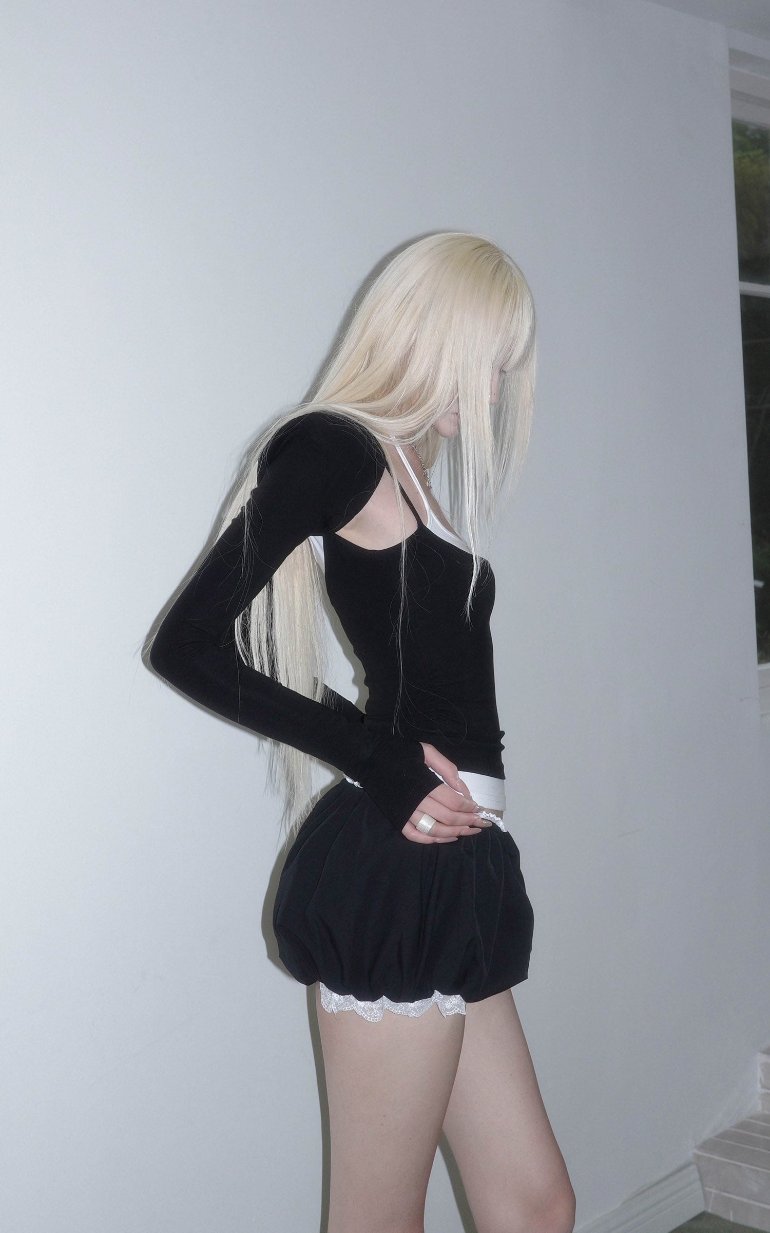 Rase le sol リボンディテールのストラップレストップとバブルスカートショーツセット