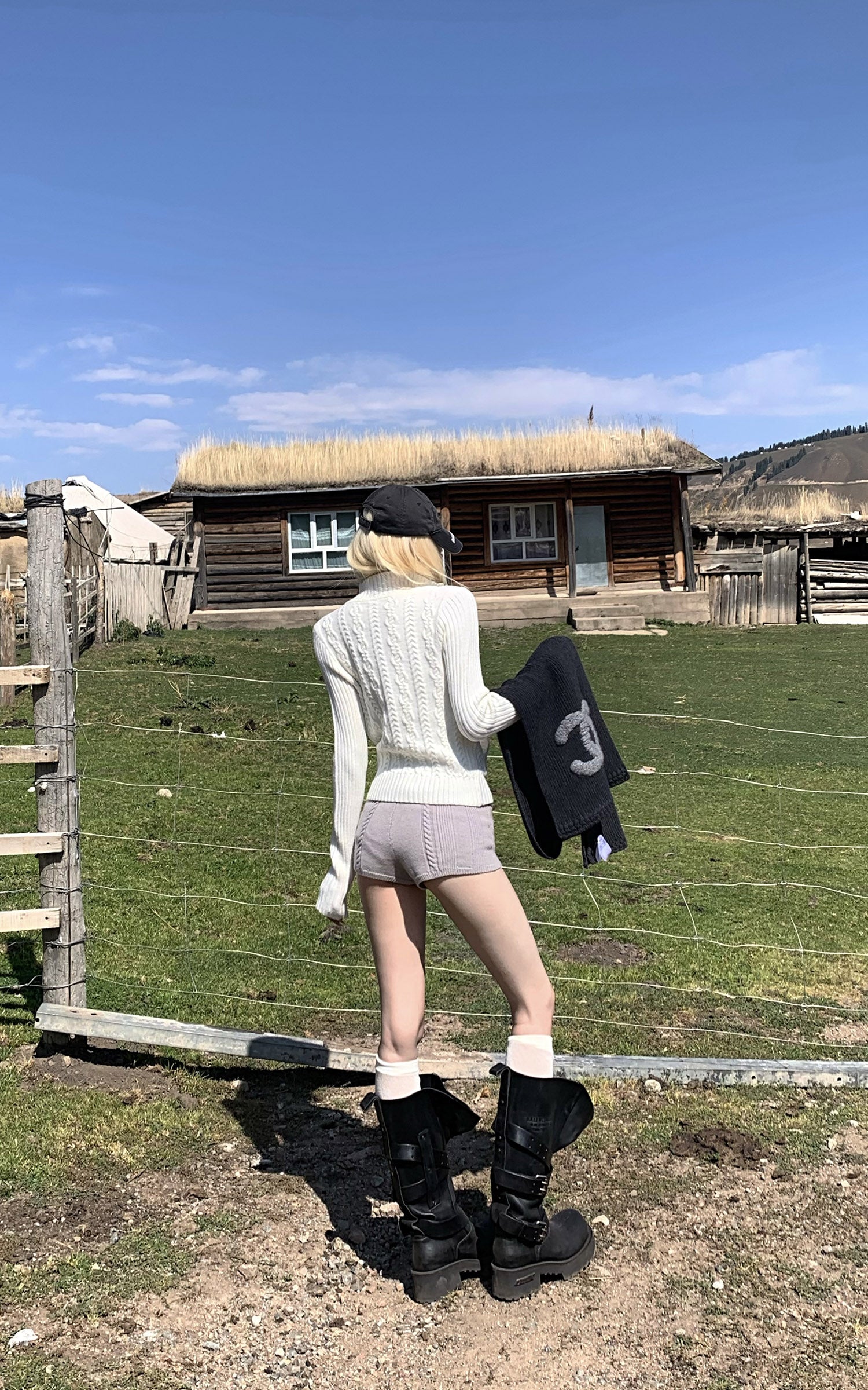 Rase le sol ケーブル編みハイウエストニットショーツ