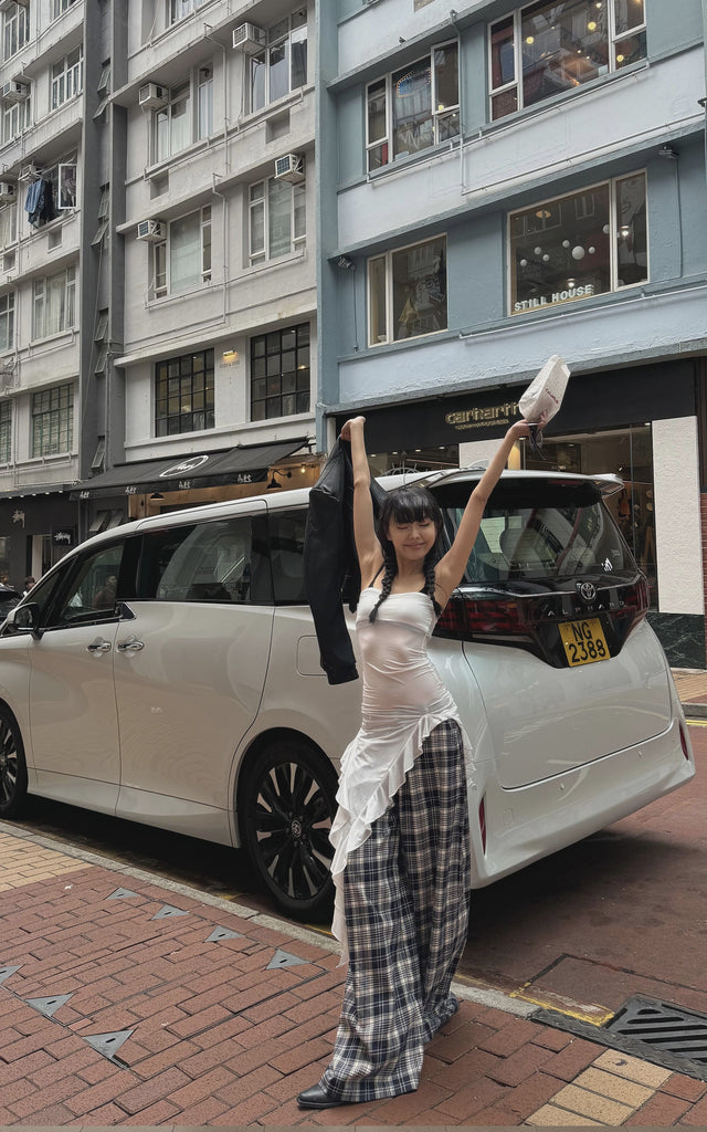 撮影中にモデルが着用していた特定のアイテムとサイズについては、 service@pinkparks.com